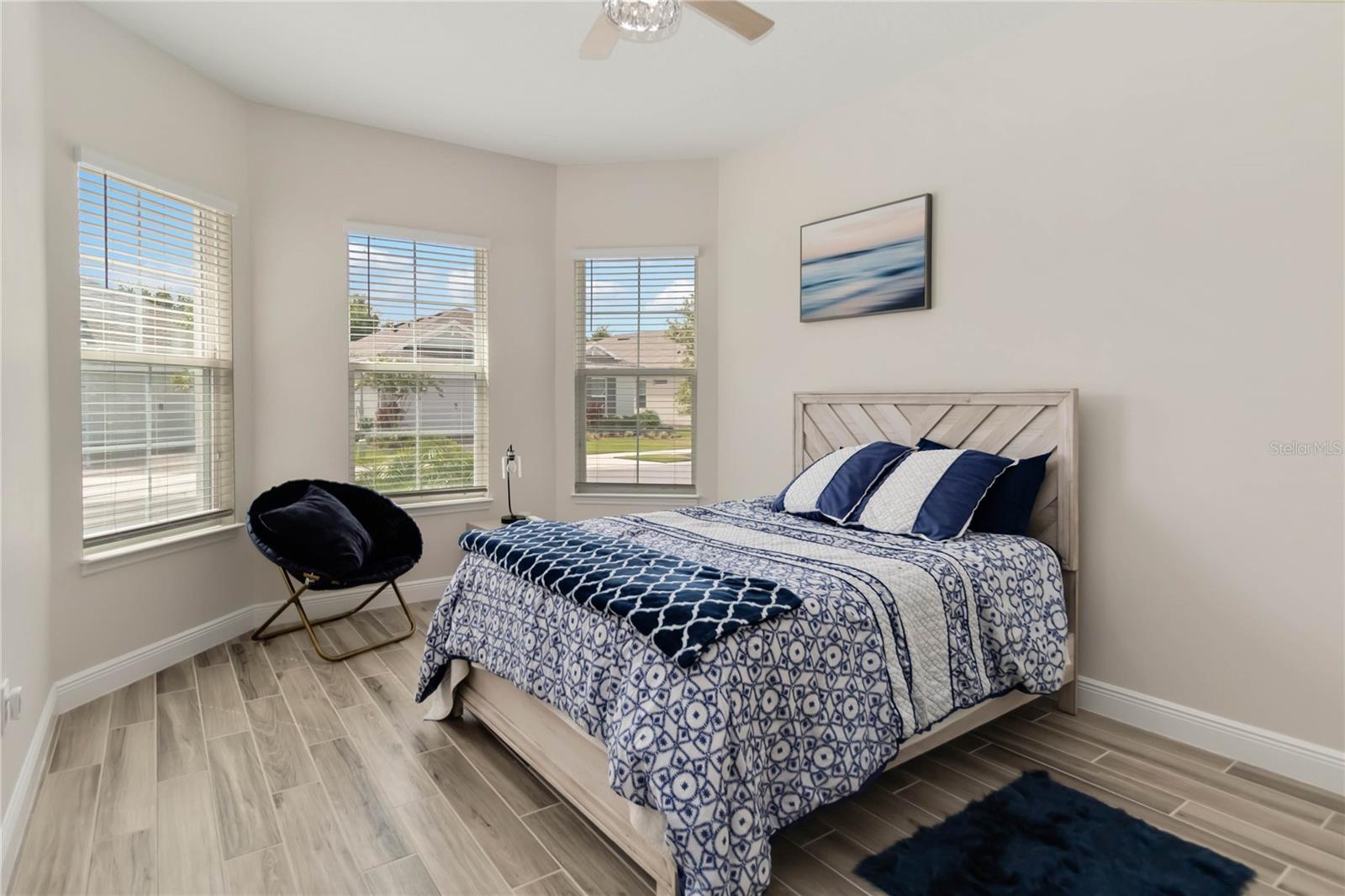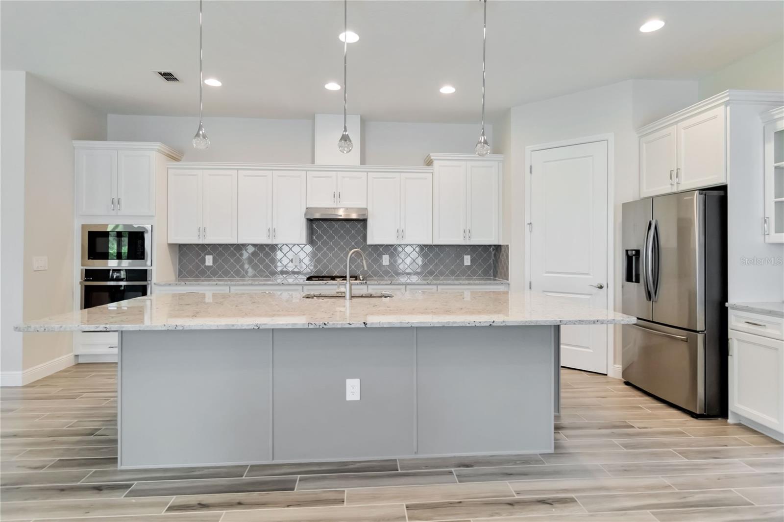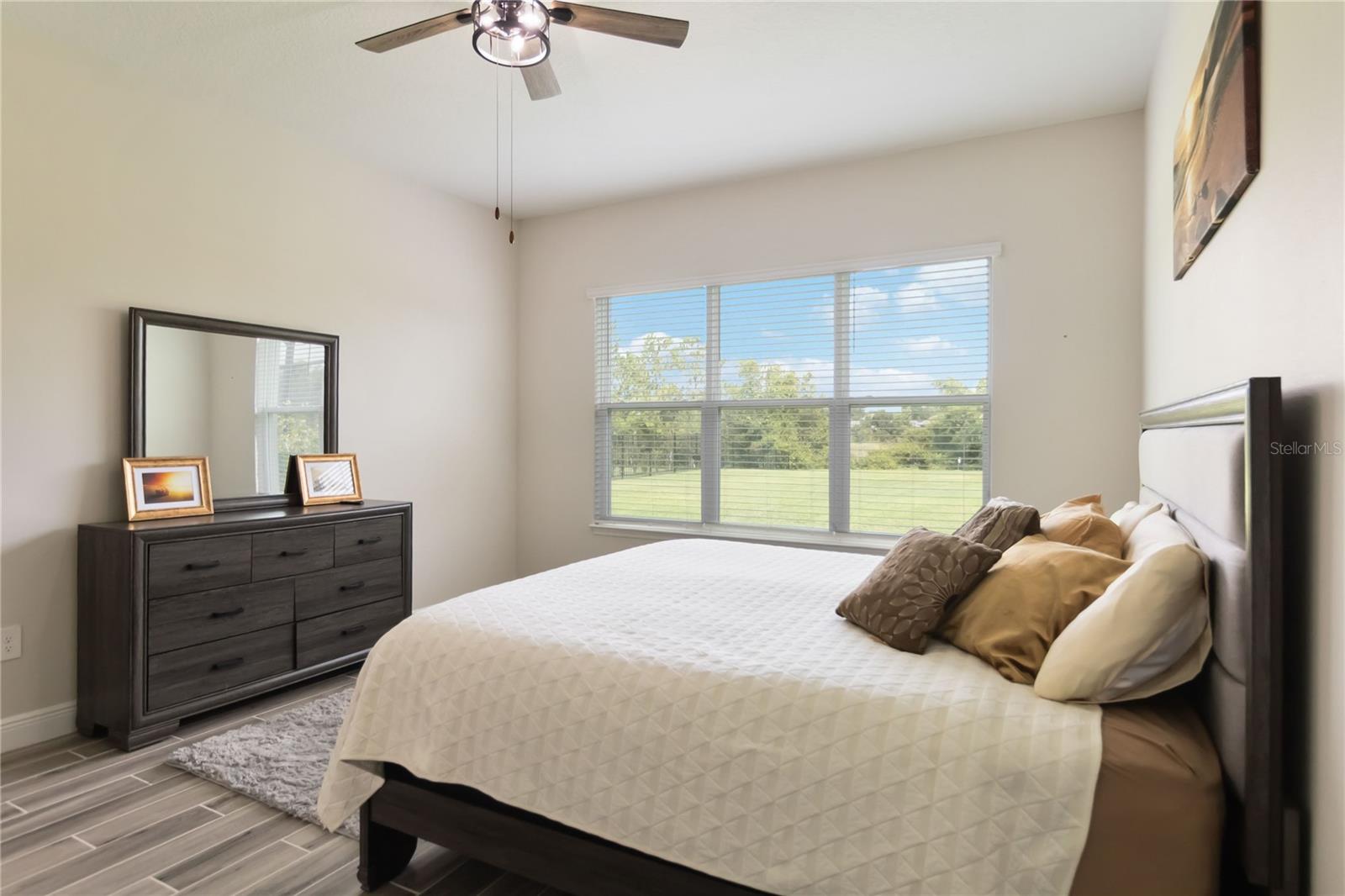 Make sure you view the 3D Walkthrough and video walkthrough! This spacious 3-bedroom home checks all the right boxes. With over 2,300 sq ft, it offers two ensuite bedrooms, 2.5 bathrooms, and gorgeous tile plank flooring throughout (yes, no carpet!). The kitchen feels fresh with granite countertops, white cabinetry, a tiled backsplash, and a generously sized pantry. You'll love the oversized laundry room with extra storage, and the primary suite has room to spread out, plus dual vanities in the bath. Out back, a large screened lanai with multiple ceiling fans overlooks peaceful green space—no rear neighbors, just you and the breeze. The Four Seasons in Orlando is the PREMIER 55+ active adult community, and situated in a convenient location; with direct access to all major roads & the turnpike, as well as grocery stores, medical facilities, shopping and restaurants; not to mention minutes away from Disney World Parks & Resorts, Universal Studios and Epic Universe. Piece of mind = 24 Hour Guard Gates, so you can feel comfortable not being at your home for weeks or months at a time. Countless amenities await you in the state of the art clubhouse; including an area for arts & crafts, yoga, aqua aerobics and private parties. Enjoy not only one, but two resort style & zero entry pools, as well as an 18-hole golf course. 24 HOUR GUARD GATED COMMUNITY | HOA INCLUDES LANDSCAPING, IRRIGATION WATER, ROOF MAINTENANCE & EXTERIOR PAINTING. Seller motivated, bring all reasonable offers!