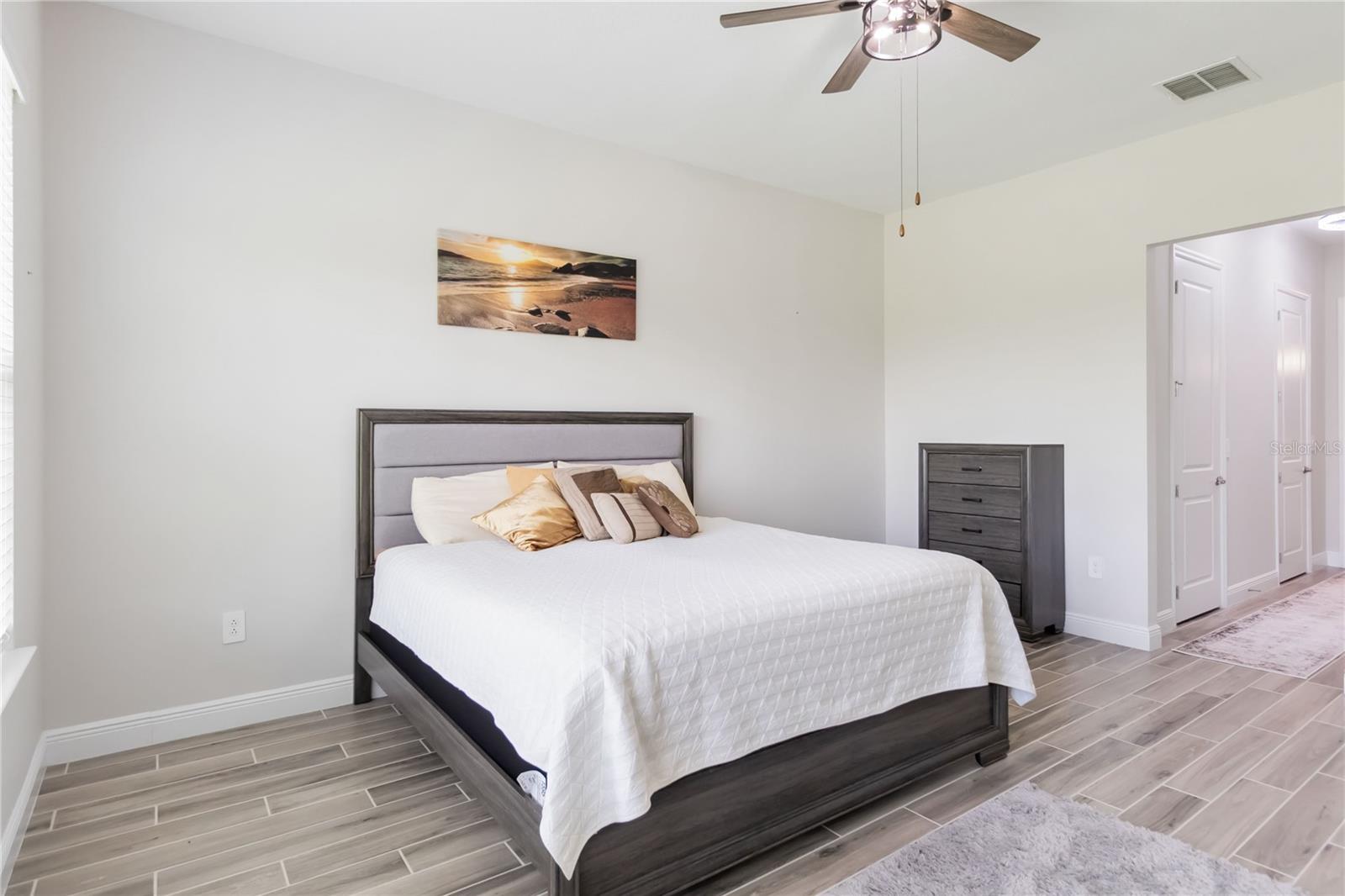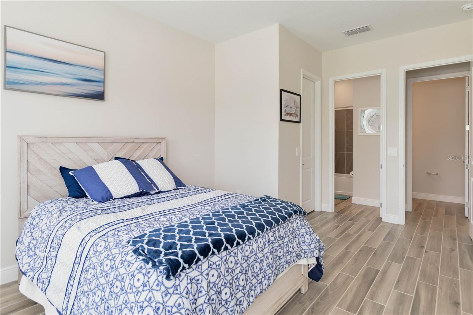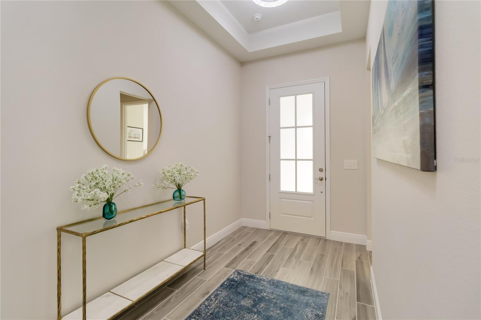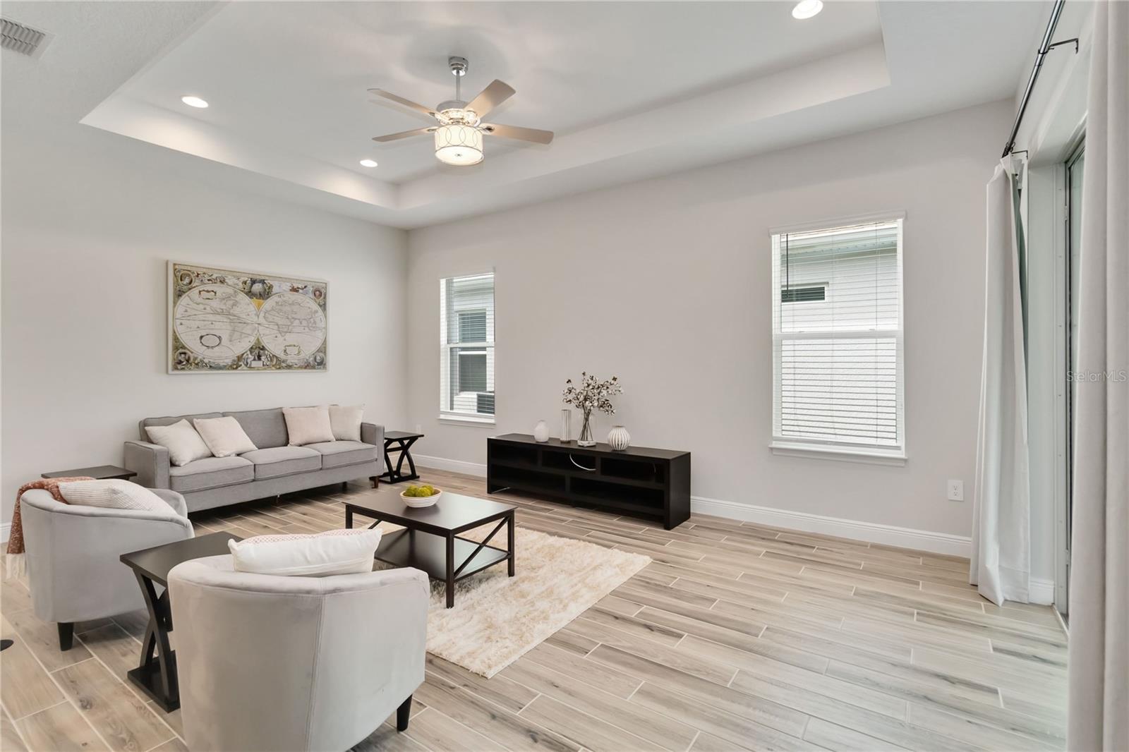 Make sure you view the 3D Walkthrough and video walkthrough! This spacious 3-bedroom home checks all the right boxes. With over 2,300 sq ft, it offers two ensuite bedrooms, 2.5 bathrooms, and gorgeous tile plank flooring throughout (yes, no carpet!). The kitchen feels fresh with granite countertops, white cabinetry, a tiled backsplash, and a generously sized pantry. You'll love the oversized laundry room with extra storage, and the primary suite has room to spread out, plus dual vanities in the bath. Out back, a large screened lanai with multiple ceiling fans overlooks peaceful green space—no rear neighbors, just you and the breeze. The Four Seasons in Orlando is the PREMIER 55+ active adult community, and situated in a convenient location; with direct access to all major roads & the turnpike, as well as grocery stores, medical facilities, shopping and restaurants; not to mention minutes away from Disney World Parks & Resorts, Universal Studios and Epic Universe. Piece of mind = 24 Hour Guard Gates, so you can feel comfortable not being at your home for weeks or months at a time. Countless amenities await you in the state of the art clubhouse; including an area for arts & crafts, yoga, aqua aerobics and private parties. Enjoy not only one, but two resort style & zero entry pools, as well as an 18-hole golf course. 24 HOUR GUARD GATED COMMUNITY | HOA INCLUDES LANDSCAPING, IRRIGATION WATER, ROOF MAINTENANCE & EXTERIOR PAINTING. Seller motivated, bring all reasonable offers!