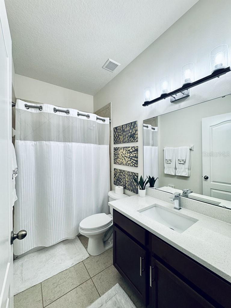 Welcome home! Step into this beautiful 1 story (3bd/2bth 1,600sqft) single family home within a gated community. This home stands out with curb appeal and thought out details. The spacious open floor plan connects the kitchen, dining room and family room creating a great setting for entertaining. The 3 tier oversized sliding glass door invites the outside in with a screen in patio and upgraded flooring. The kitchen has been upgraded with quartz countertops, updated stainless steel appliances, stone backsplash, and a commercial grade stainless steel sink. It also includes 42 inch cabinets and a wall in pantry. Enjoy the upgraded laminate flooring in all bedrooms while enjoying tile throughout the common areas. The laundry room has been updated and includes a new front loading washer/dryer. Each bathroom has been upgraded with quartz countertops and modern finishes. This home has an upgraded yard space with an oversized paver patio (perfect for entertaining), hardscaping and paver walkway. Enjoy a garden tub or large shower in the en-suite of your spacious primary bedroom (with 2 walk in closets) when it’s time to unwind. This home has been well maintained. Located just minutes from major highways (417, FL turnpike, 528) Boxi Park, Lake Nona Medical Center, Orlando International Airport, VA Hospital and various shopping and dining options. This home offers convenience and community. Enjoy the perks of an intimate neighborhood within a gated community, community pool, cabana area, and play area. Zoned for East Lake Elementary, Narcoosee Middle School, Tohopekaliga High School. Don’t miss this amazing home. Schedule your showing today!