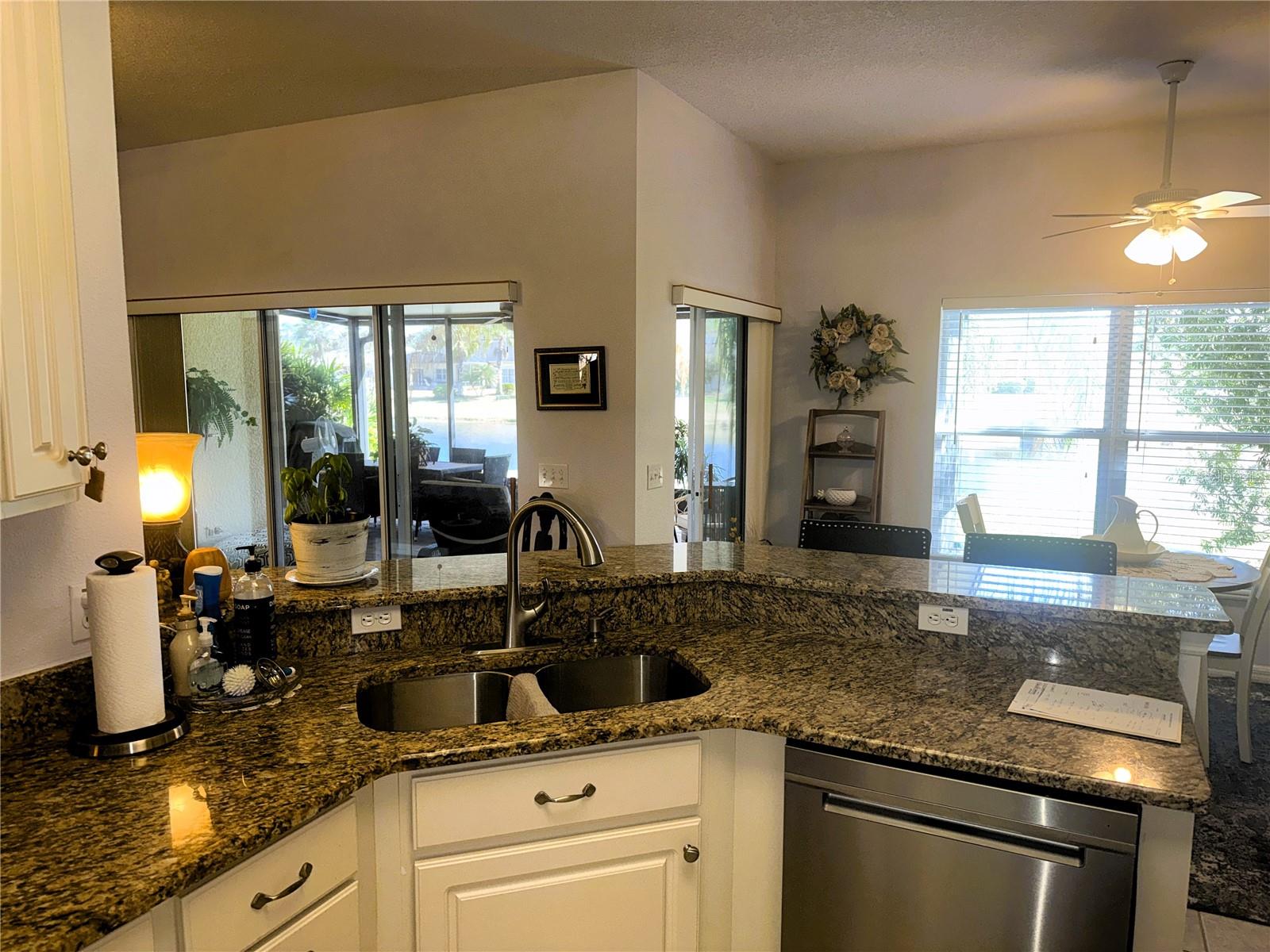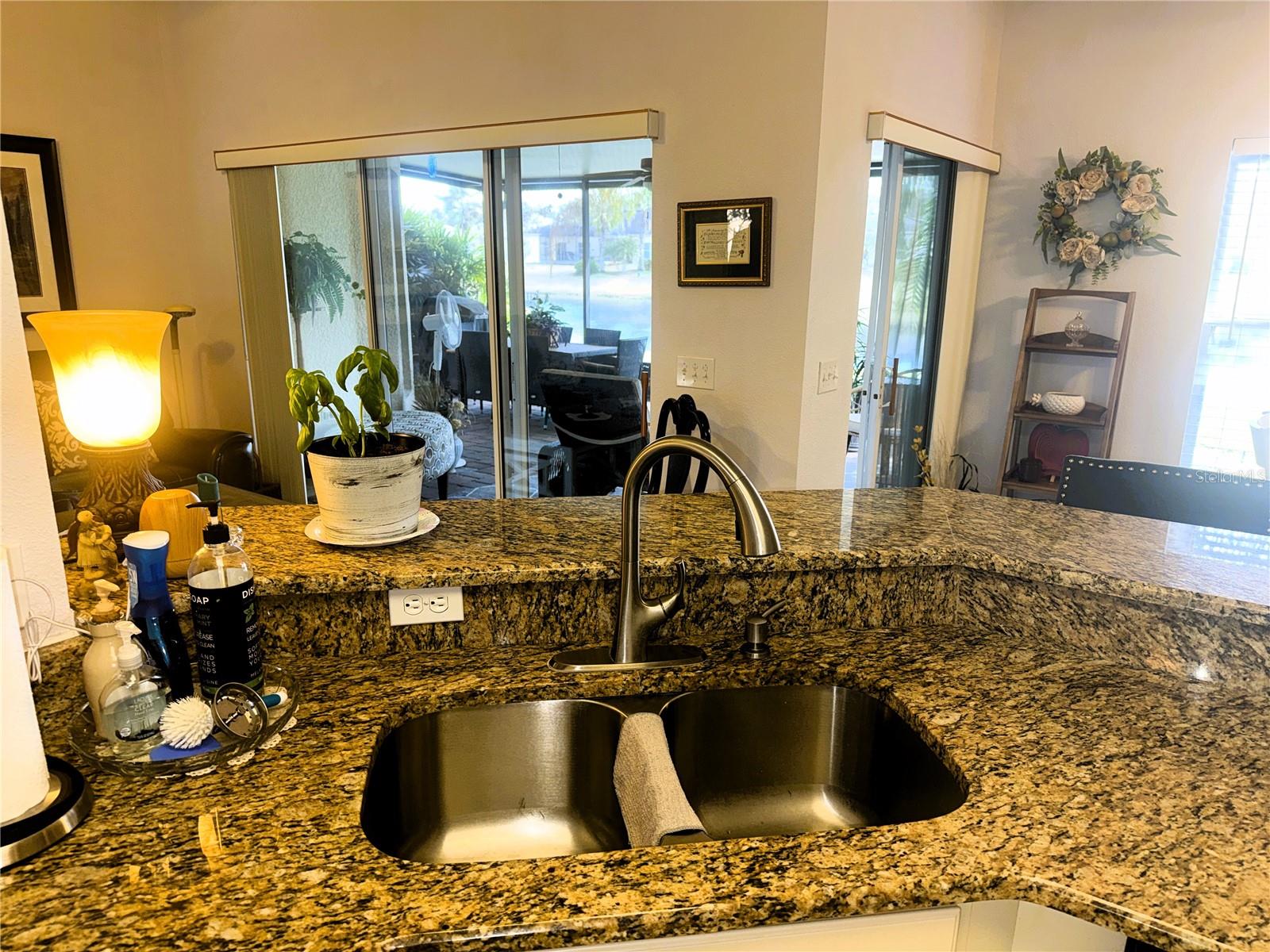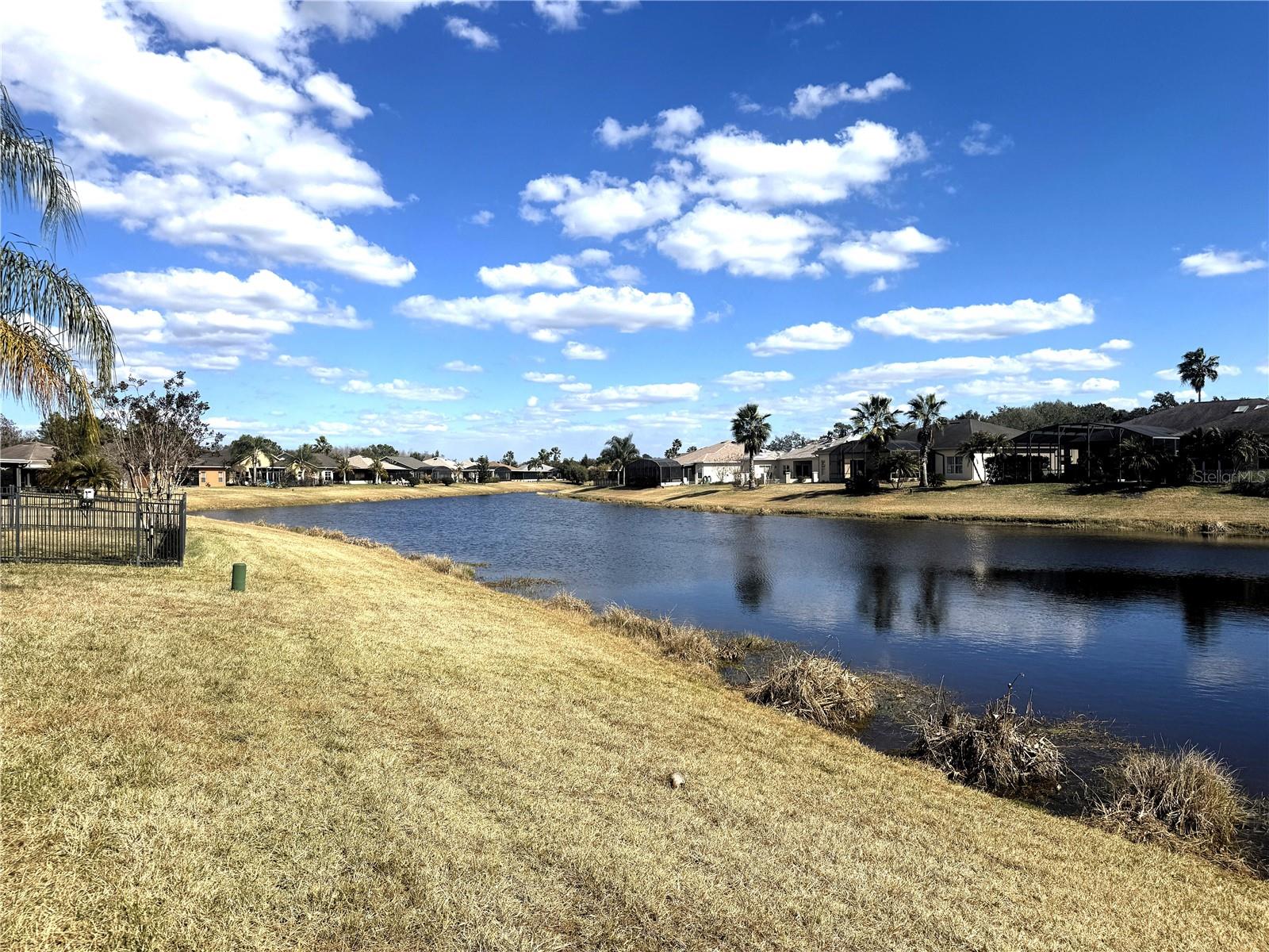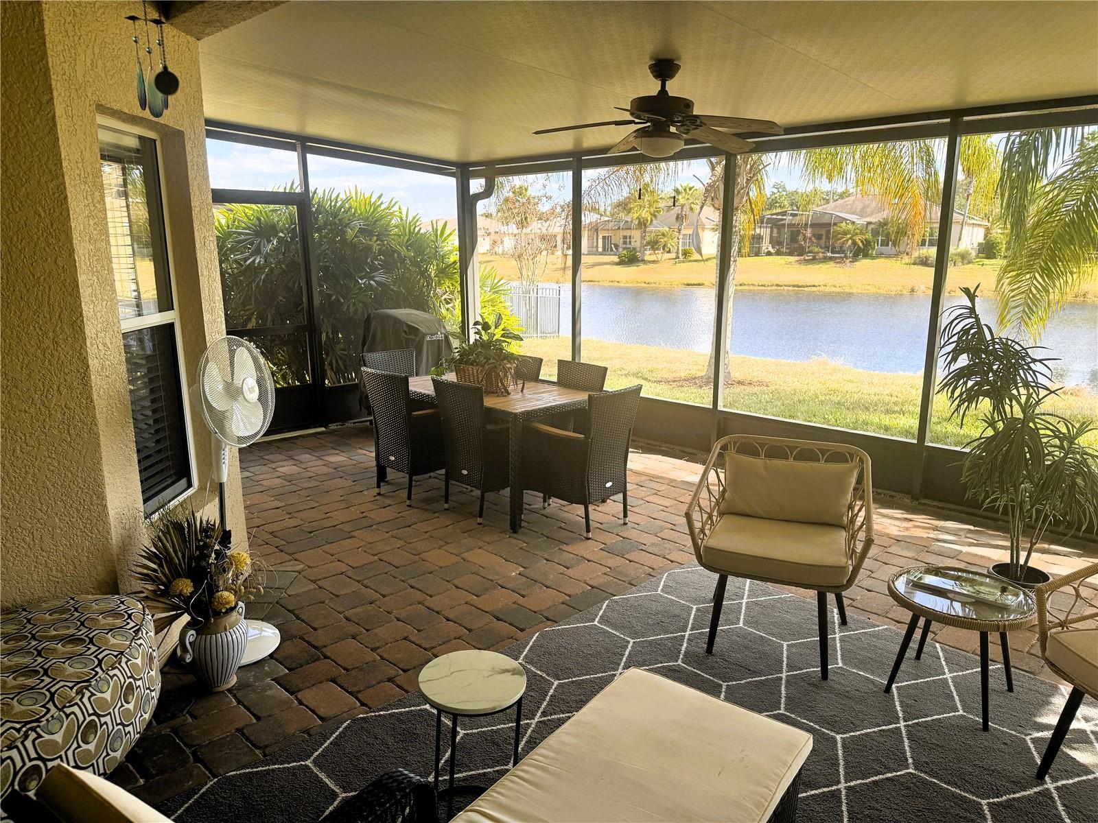 ****WATERFRONT**** Allegro Model 2 bedrooms 2 baths PLUS Den/flex room just under 1500 square feet. 2 car garage. Beautiful views from your covered Lanai. Facing northwest get morning sun and afternoon shade, enjoy sounds and views of waterfront living. An Updated Allegro Model Home with an Amazing Waterview! Upgrades Galore. New Granite Countertops, a new Deep Sink, Newer Kitchen Appliances, newer washer and dryer and modern fixtures. This home has a recently painted exterior and freshly painted interior trim. New Sliding doors installed in 2021, in 2016 a new roof was installed. The finishes in this home are exquisite and include wood trimmed mirrors and custom touches throughout. From the moment you step onto the Covered Porch you are greeted with a lovely front door with etched leaded glass door and enter into a foyer with a spacious Den at the front of the home and a generous Great Room open to the Kitchen and Dining Room. This split floor plan home has the Owners suite on one side of the residence and the guest bedroom on the other. The kitchen is modern and welcoming with granite counters and newer Stainless Steel Appliances and a wrap around bar top perfect for casual dining, open to the dining room and great room. Enter the Covered, Extended and Screened Lanai from either the dining room or the great room. Open the grand lanai doors and let the breezes flow through this home. Stunning Water Views and inviting vistas await you from this home. The primary Suite is nicely planned with lots of room for a king bed and a full suite of furnishings. The walk-in closet is large, and this suite also includes a linen closet. The primary bath has a large walk shower surrounded by glass. Bedroom 2 has a walk-in closet with ceiling fan. This Allegro model has Lots of room for all your needs. The landscape is tropical and lovely. This home offers 1,467 Sq. Ft. of living space under air Plus the Extended Lanai. The garage has 2 overhead storage racks plus a utility sink, perfect for clean up after a game of golf or an afternoon in the garden. Put this home on your list today, it will not last. Solivita is an Award Winning 55 Plus Active Community in Central Florida with 2 Championship PGA Golf Courses, 14 pools, 2 State of the Art Amenity Centers complete with the latest equipment, trainers and a full schedule of classes. Relax in one of the hot tubs, play pickleball, tennis, horseshoes, softball or bocce ball on any of our courts, meet friends, make friends and enjoy the good life that Solivita Offers. We are completely gated and guarded 24/7, near schools, houses of worship, shopping and fun. Solivita is a 4,300 acre safe community with ponds, lakes, gardens, conservation Do not miss this opportunity to own and live in Paradise. Give us a call and set up a private showing