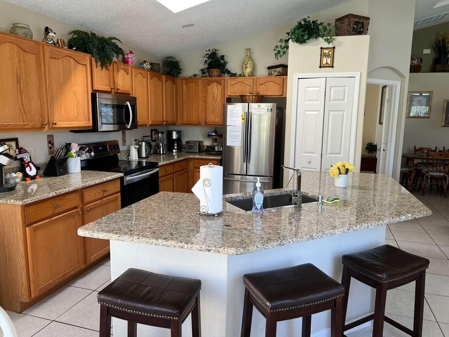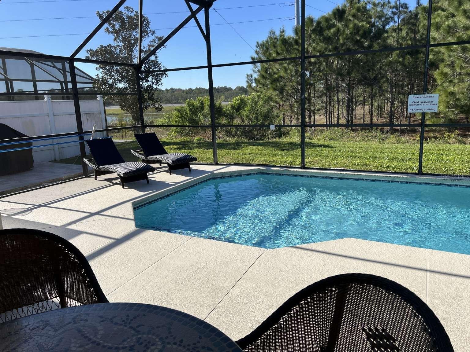 LOCATION, UPGRADED, FURNISHED!! NO HOA, with No Rental Restrictions, offers a playground, tennis court, and basketball court. The community is conveniently close to all major theme parks, shopping centers and a surplus of restaurants. Very low maintenance costs, a brand-new roof, newer Hot Water Heater-2022, Cost-Efficient gas HVAC, Gas Water Heater and pool heater, and new stainless-steel appliances, granite countertops in kitchen and bathrooms. The pool was resurfacing in 2021, great space to enjoy your morning coffee or unwind after a long day . This very spaces house has great layout! Enjoy the fully enclosed and screened private inground pool with the beautiful forest view. This home is perfect for those seeking a new primary residence, or an investment property / for short term rentals. You'll love this home and this community! Don't miss this opportunity, make this dream home yours!
