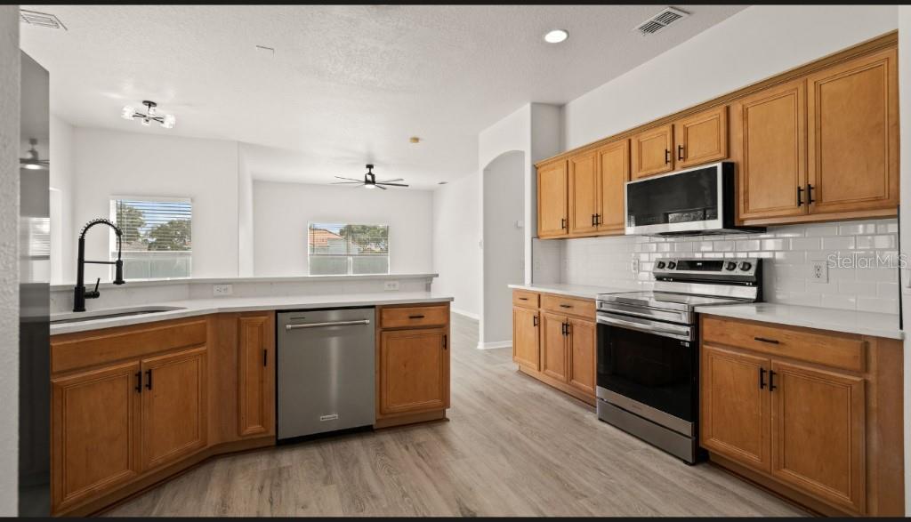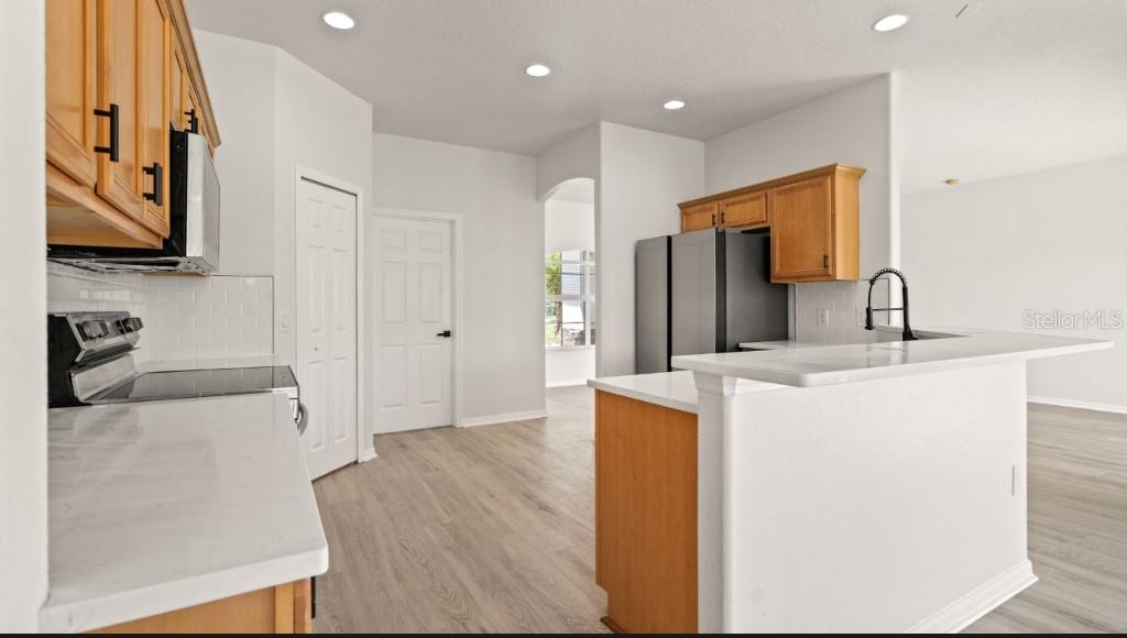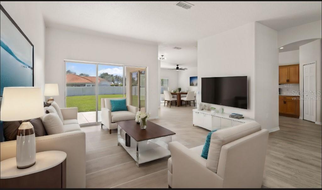One or more photo(s) has been virtually staged. One or more photo(s) was virtually staged. Beautiful 4/2/2 Split floor plan freshly updated master bathroom, new laminate flooring throughout, and new quartz countertops in kitchen and bathrooms.. Not in a Flood zone! Enjoy the OPEN PATIO overlooking more than a 1/4 acre Lot with plenty of room to turn it into a Pool Home! Best of all you enjoy the benefits of living in a Natural Reserve - Resort Style Community. BELLALAGO offers 24hr Gated Security, 3 Pools, 2 fitness centers, Daily Fitness Classes and Social Activities, a Sunset Pool Grille and so much more. Shopping and restaurants at your fingertips and private access to Lake Toho through state of the art boat lift and ramp