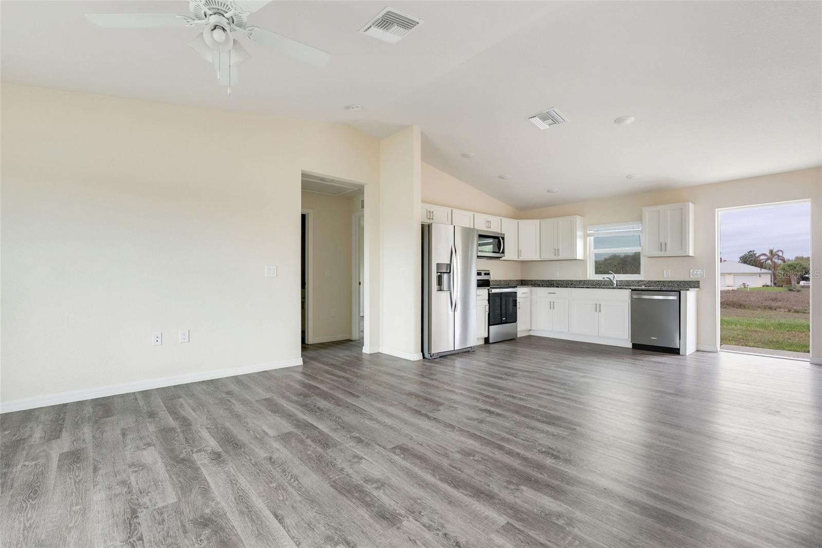 Welcome to this beautifully maintained 3 bedroom 2 bathroom residence offering comfort, style and effortless Florida living. From the moment you enter, you are greeted by a bright open layout enhanced by durable vinyl flooring throughout, creating a seamless and modern feel in every room. The spacious living and dining areas flow naturally into a well appointed kitchen with ample cabinetry and workspace, ideal for both everyday living and entertaining. The primary suite provides a peaceful retreat with generous closet space and a private bath, while the additional bedrooms are versatile and perfect for family, guests or a home office. Large windows invite in natural light and create an airy atmosphere while offering pleasant community views. A one car garage provides added convenience and useful storage space. Located within a well kept community, this home offers a low maintenance lifestyle while still feeling private and inviting. Whether you are looking for a primary residence or a seasonal escape, this property delivers a perfect balance of comfort, functionality and Florida charm.