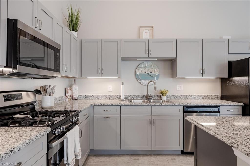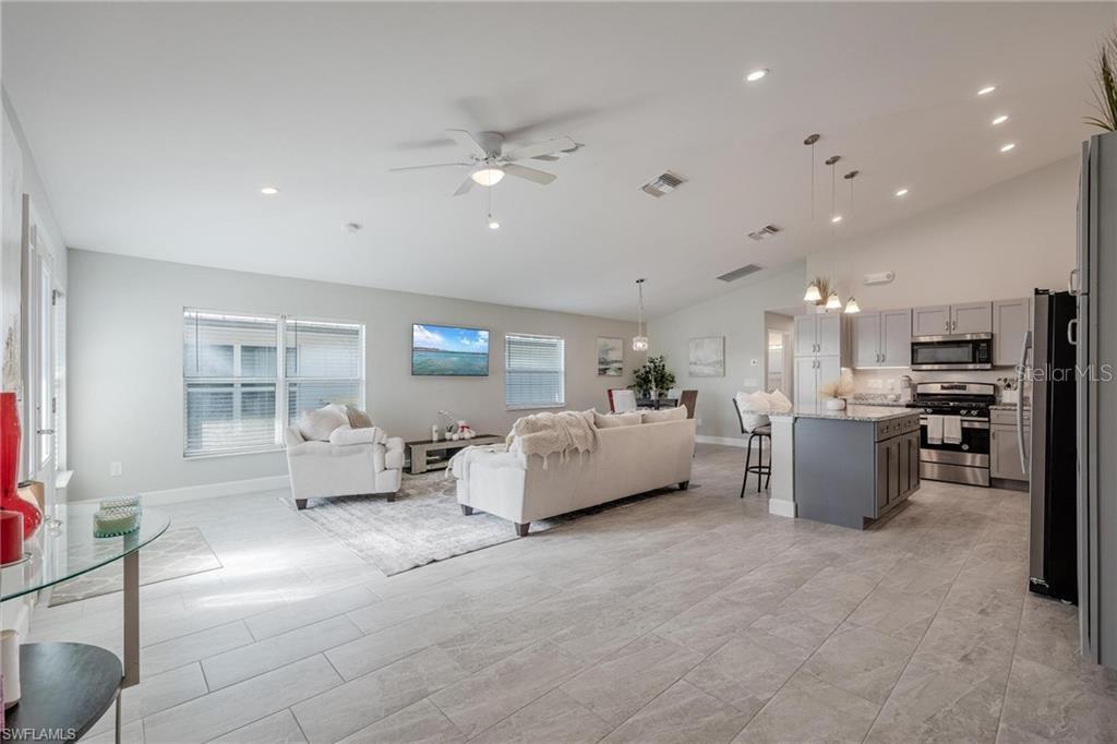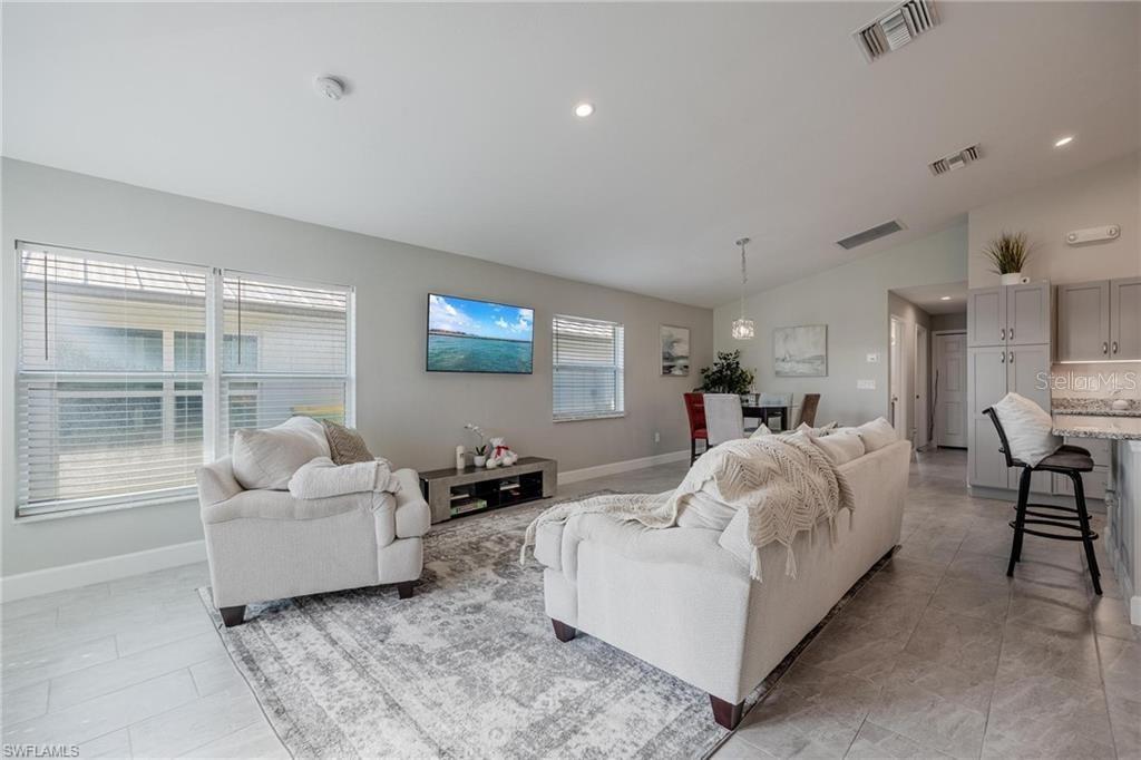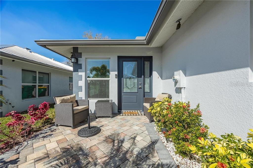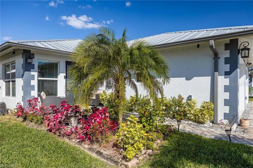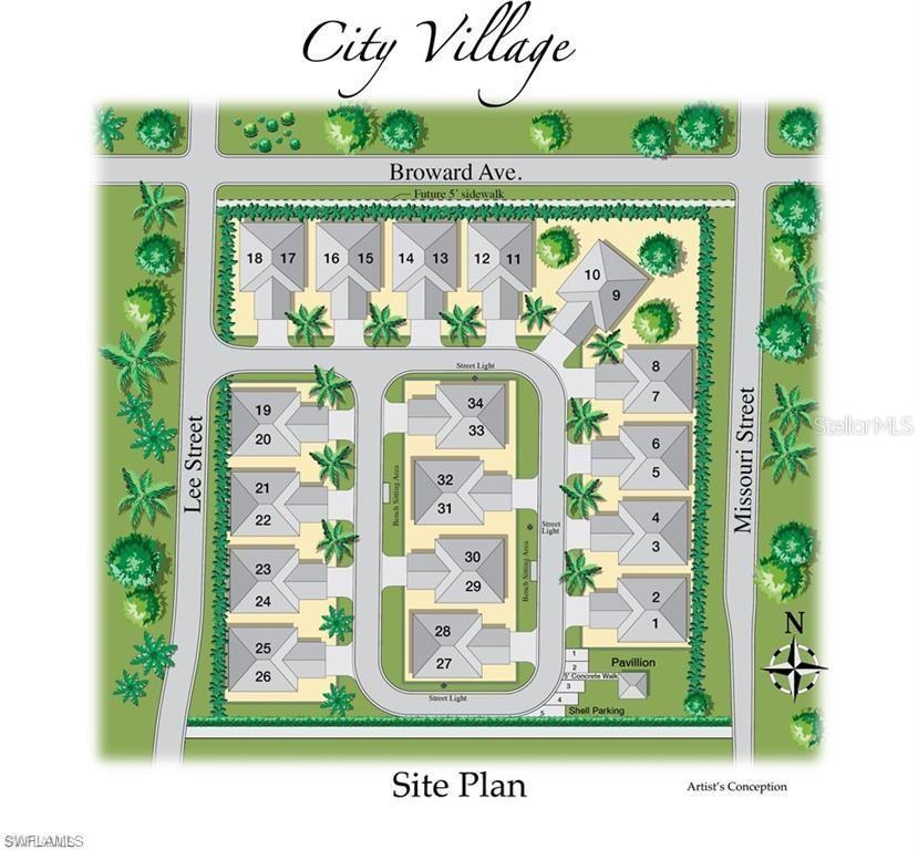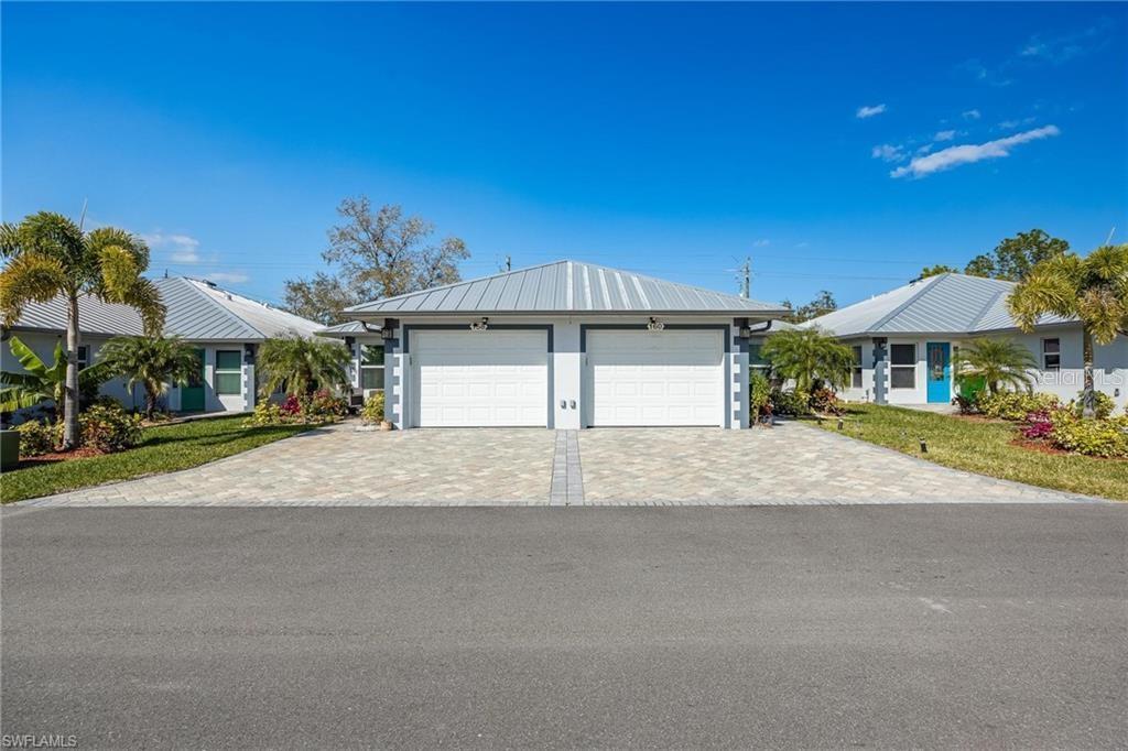 AN EXCELLENT STARTER/RETIREMENT HOME, RENTAL INVESTMENT OR CONVENIENT PLACE FOR A PARENT(S) OR EMPLOYEE. Come see this former Model Home! It's not only gorgeous & well taken care of it is concrete block construction & a seamless galvalume metal roof. This villa is energy efficient with solar roof exhaust fan & skylight. The stove, insta-hot water tank & dryer are all natural gas. It also comes with led lighting inside & low voltage accent lighting outside. Storm ready with hurricane impact windows & doors, fiberoptics, underground utilities & each room wired for TV. This home features a spacious open floor plan with cathedral ceiling & island kitchen. There are 2 bedrooms & 2 fully tiled bathrooms plus a laundry/utility closet with gas stack washer & dryer. Your breath will be taken away by the spectacular kitchen with upgraded gray tone cabinets, granite counter tops, island with bar seating, and stainless steel appliances. City Village allows you to relax & enjoy life without the worry of outside lawn or building maintenance—enjoy a “no hassle” lifestyle. City Village is a small community of 18 total homes for a total of 36 villas with easy access to SR 80, shopping and dining.