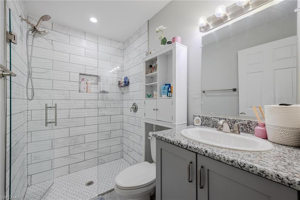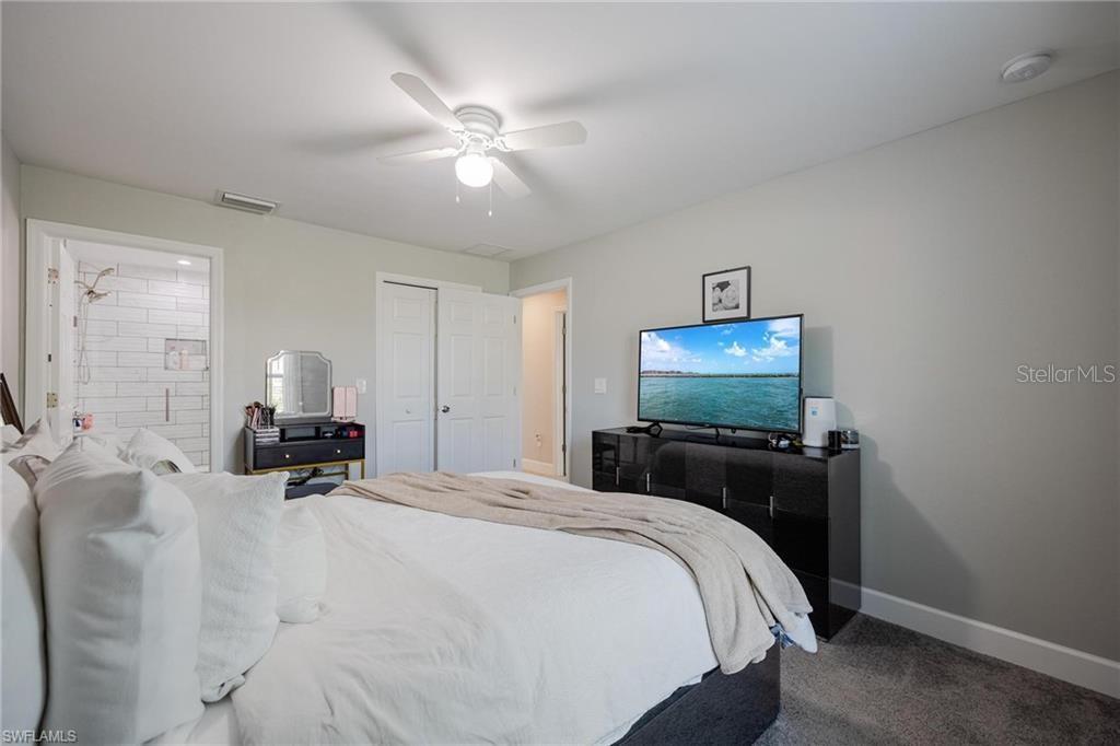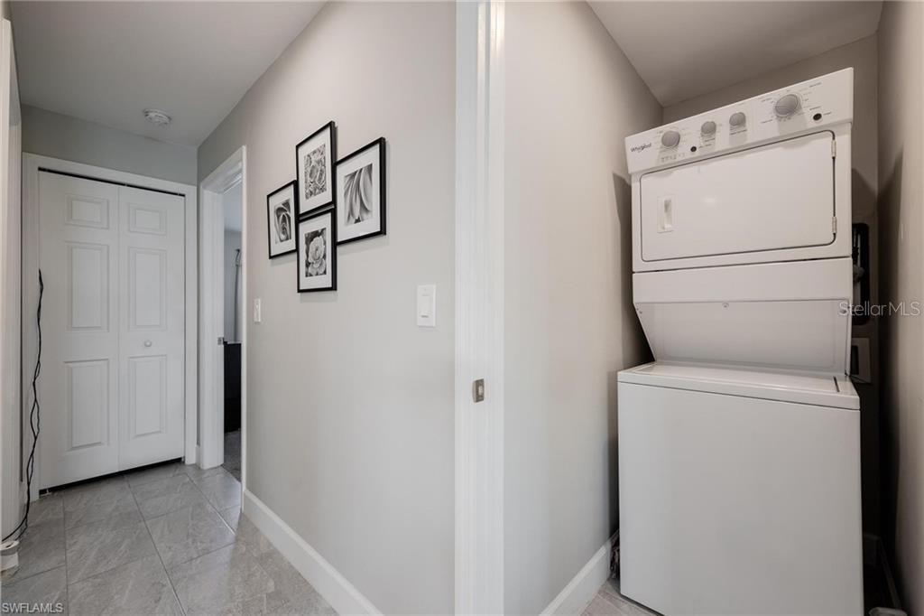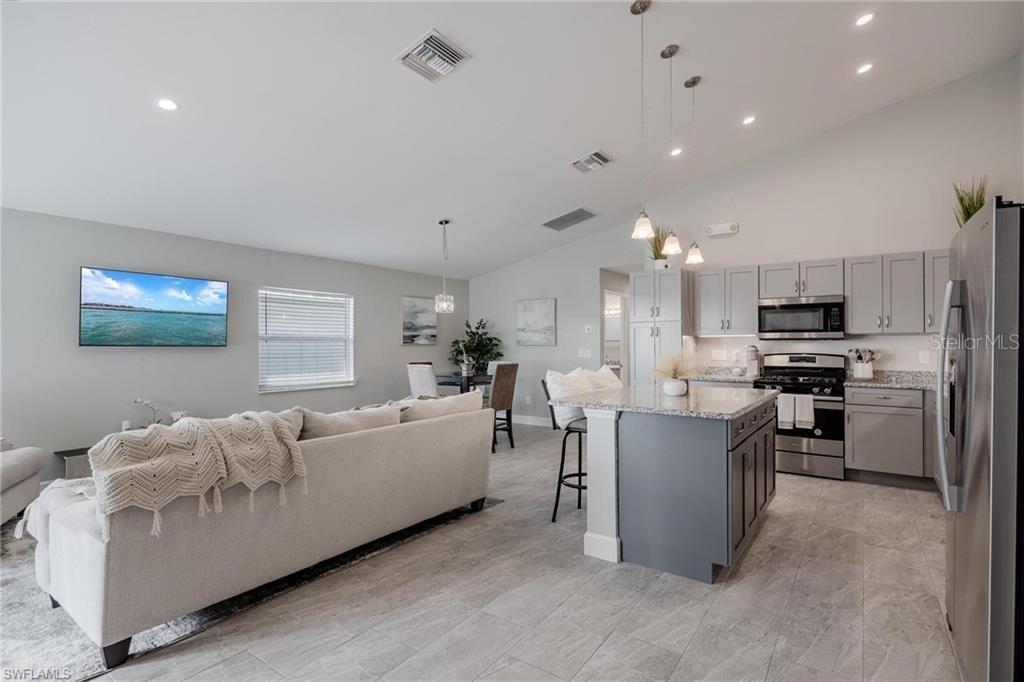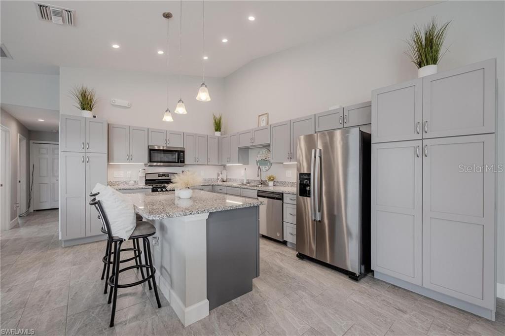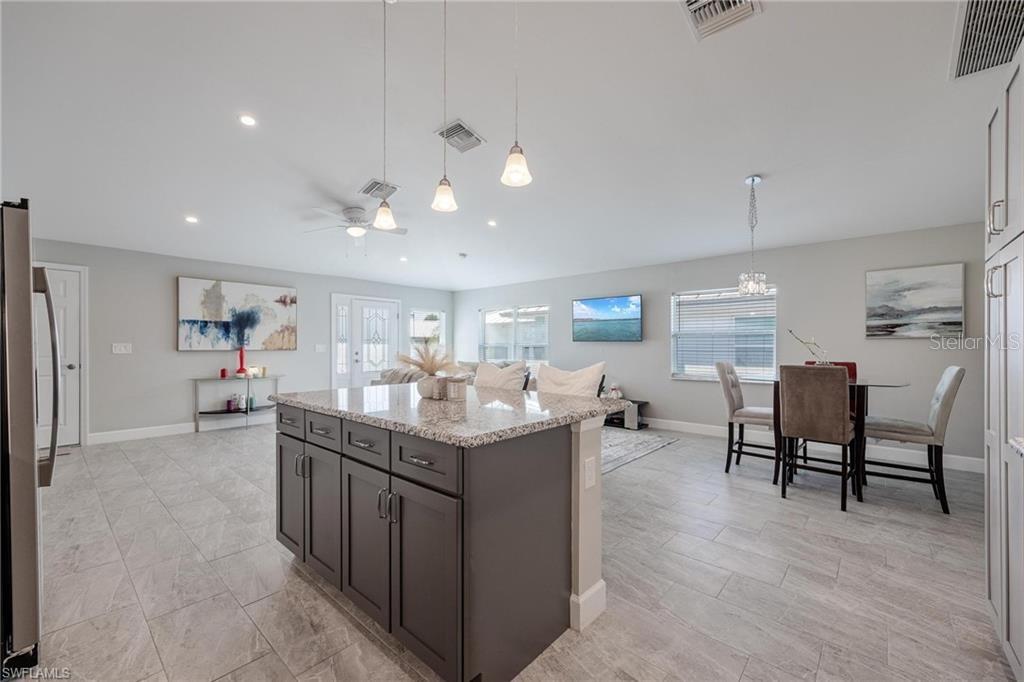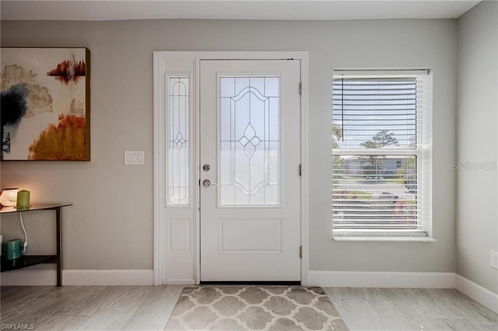 AN EXCELLENT STARTER/RETIREMENT HOME, RENTAL INVESTMENT OR CONVENIENT PLACE FOR A PARENT(S) OR EMPLOYEE. Come see this former Model Home! It's not only gorgeous & well taken care of it is concrete block construction & a seamless galvalume metal roof. This villa is energy efficient with solar roof exhaust fan & skylight. The stove, insta-hot water tank & dryer are all natural gas. It also comes with led lighting inside & low voltage accent lighting outside. Storm ready with hurricane impact windows & doors, fiberoptics, underground utilities & each room wired for TV. This home features a spacious open floor plan with cathedral ceiling & island kitchen. There are 2 bedrooms & 2 fully tiled bathrooms plus a laundry/utility closet with gas stack washer & dryer. Your breath will be taken away by the spectacular kitchen with upgraded gray tone cabinets, granite counter tops, island with bar seating, and stainless steel appliances. City Village allows you to relax & enjoy life without the worry of outside lawn or building maintenance—enjoy a “no hassle” lifestyle. City Village is a small community of 18 total homes for a total of 36 villas with easy access to SR 80, shopping and dining.