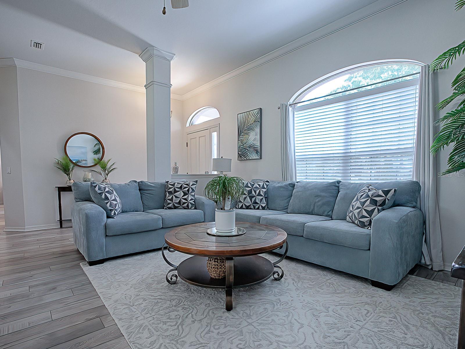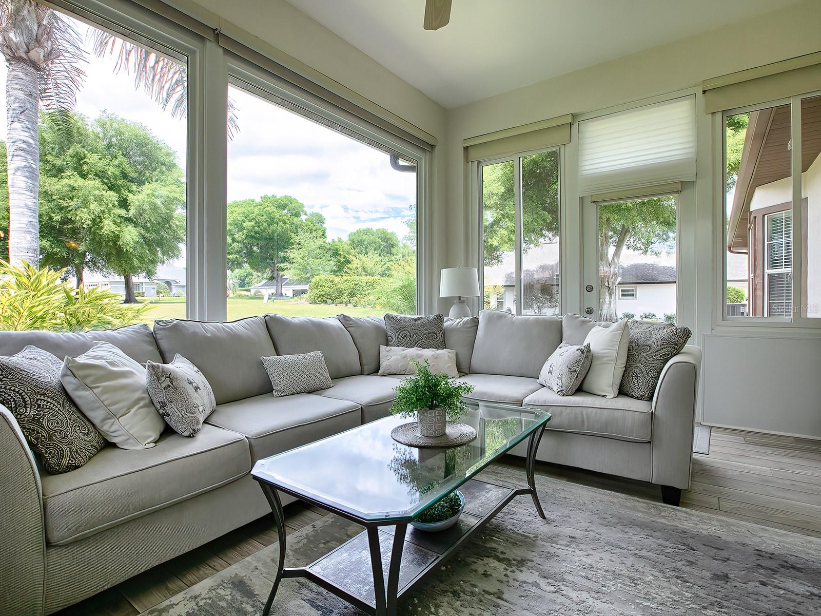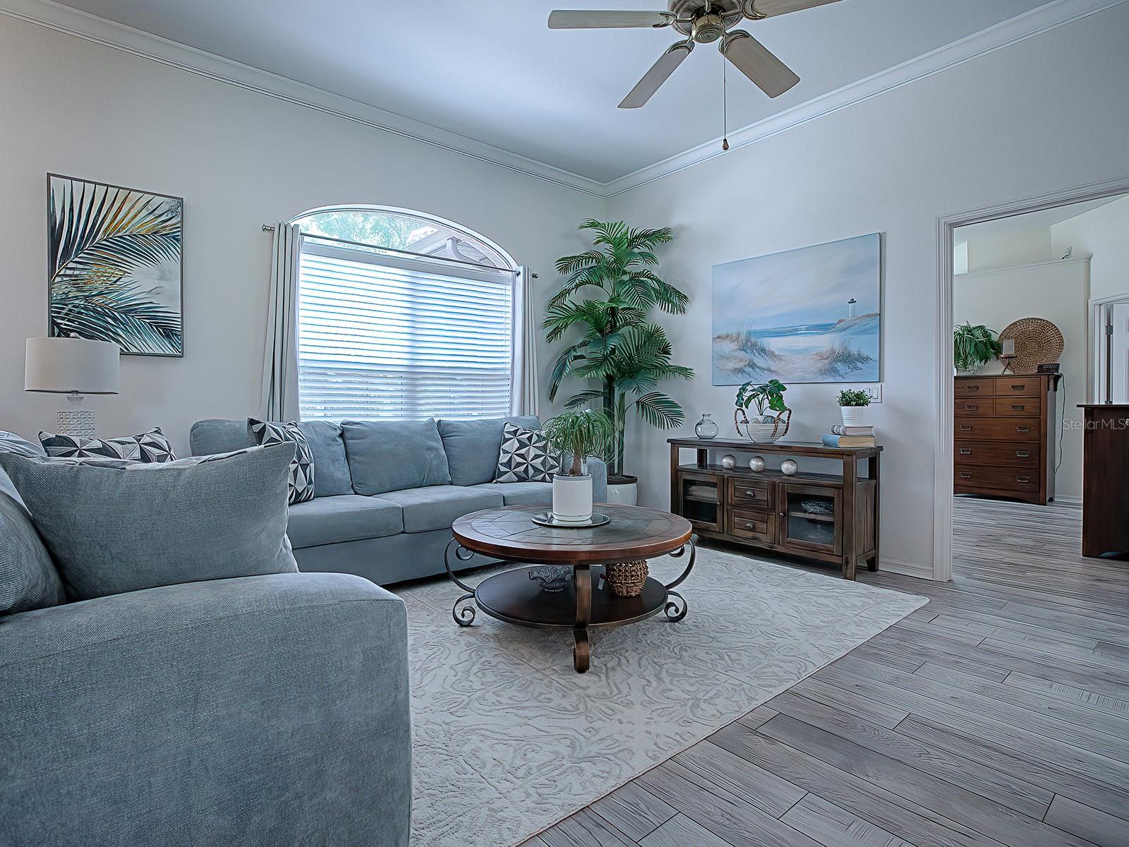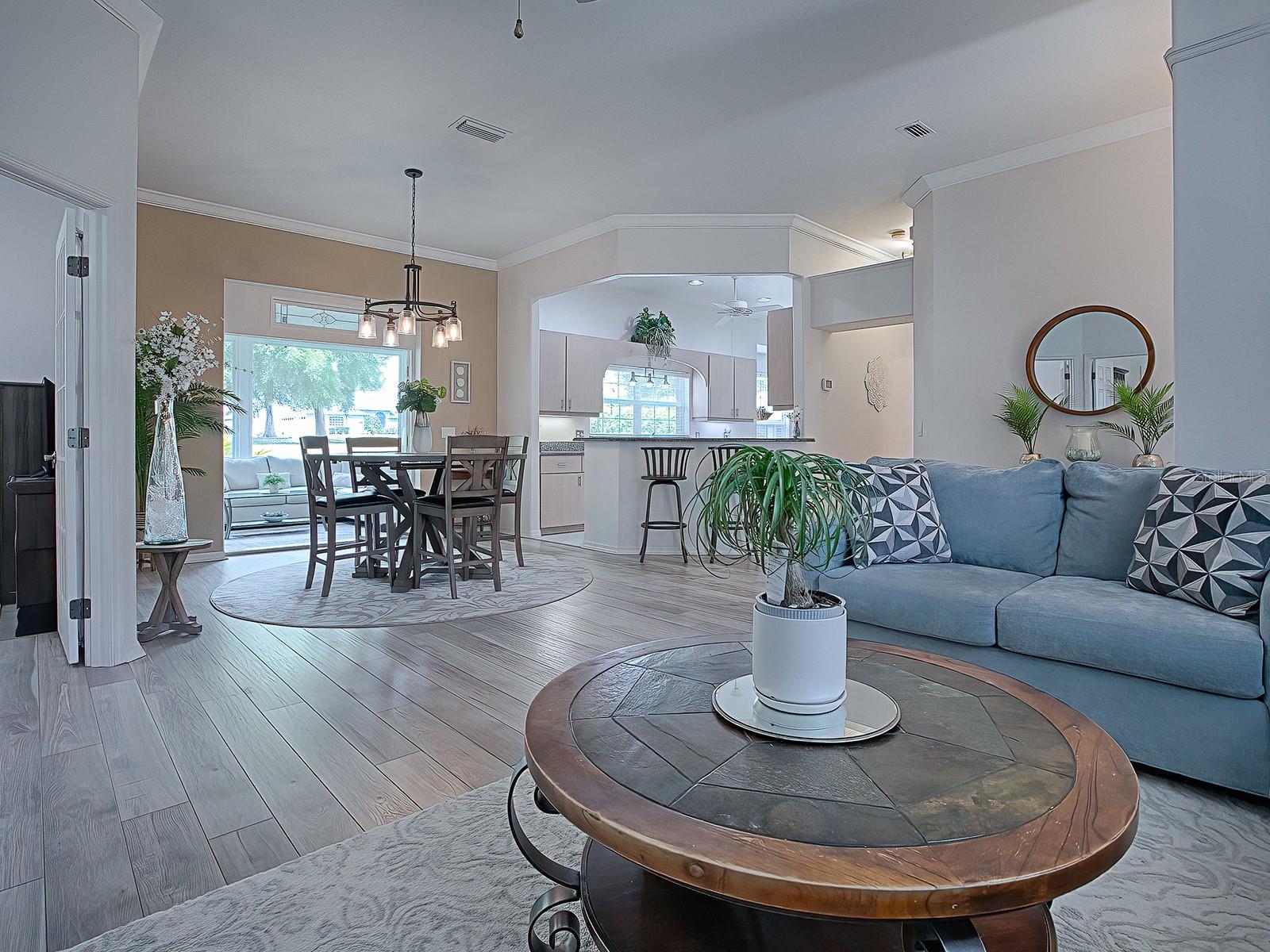 MOTIVATED SELLER- Take a virtual tour and envision yourself in this move-in ready home nestled within the coveted all age Harbor Hills Community. In a beautiful neighborhood, this recently updated residence boasts a contemporary charm, offering a seamless blend of comfort and style. As you step through the foyer, you're greeted by an abundance of natural light accentuating the spaciousness of the home, thanks to the high 10' ceilings and recessed lighting throughout. The open living and dining areas are tastefully adorned with crown molding, creating an inviting atmosphere for both relaxation and entertainment. The kitchen is a chef's delight, featuring newer stainless-steel appliances, including a double convection oven, complemented with granite countertops. The guest bath has been beautifully remodeled with JettaStone shower and counters, adding a touch of luxury to everyday living. With tile and laminate flooring throughout, cleaning is a breeze, and there's no worry of carpet maintenance. The inside laundry room is equipped with office space, built-in cabinets, and granite countertops, offering both convenience and functionality. This home has been meticulously maintained, with updates including a new water heater and HVAC in 2017, dishwasher in 2018, and a complete replumbing in 2016. The exterior boasts a TILE roof, new landscaping, freshly repainted trim, and updated irrigation, ensuring the property's curb appeal is as impressive as its interior. Enjoy moments of relaxation in the Jacuzzi tub, savor your morning coffee in the breakfast nook with bay windows overlooking the golf course, or unwind in the Florida room that leads to the expansive backyard with no rear neighbors, offering privacy and serenity. Residents of Harbor Hills have access to the Harris Chain of Lakes, providing abundant opportunities for boating and fishing. The central Florida location offers easy access to both coasts, Ocala, Tampa, The Villages' dining and entertainment, and major theme parks and convenient to shopping and medical providers. Additional features include ample storage space with double pantries and extra-deep closets, a transferable home warranty, and prepaid pest control and landscape fertilizing through May 2025. The oversized lot provides the option to add a pool, enhancing your outdoor living experience. Don't miss out on the chance to experience the gated community lifestyle and all the amenities it has, including championship golf, tennis and pickle ball. Schedule your private appointment today and make this your dream home!
