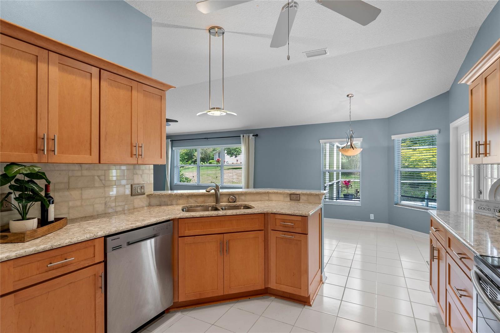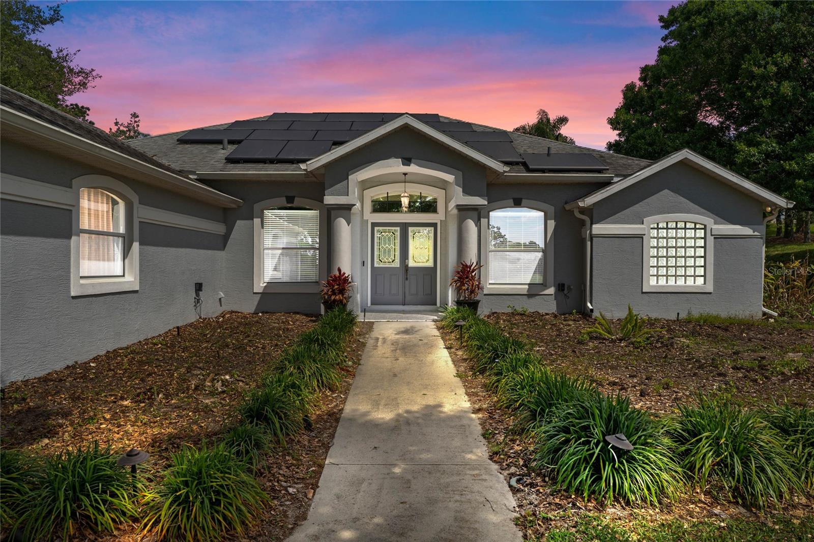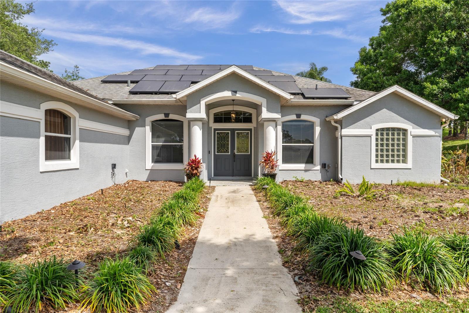 WELCOME HOME to this three bedroom, two bath POOL HOME in the beautiful GOLF community of Harbor Hills. Love SOLAR? This home has it! This move in ready POOL home offers a great floor plan. As you enter the front door you see the formal dining and formal living room. To the right you will see French doors leading to what can be a great office space with views of the front lawn. On the right side of the home, you will be impressed with the large primary bedroom. There is room for your king- sized furniture and extra space for a sitting area. Sliding doors lead to the pool and lanai area. There is his and her walk- in closets and a large bathroom with soaking tub and shower. You will love the quartz counters, cabinets and updated fixtures. From the formal dining room, you enter the kitchen with upgraded quartz counters, back splash, would cabinets, closet pantry and stainless appliances. There is a breakfast area with French doors that lead to the pool, and you can also access the large family room from the kitchen. There are two bedrooms and a guest bathroom on this side of the home. There is a laundry room with a new Samsung washer and dryer, sink and cabinets. The oversized two car garage has a floored attic. Roof (2017) Water Heater (2017) Solar Panels for Pool (2017) AC (2018) Landscape lighting (2018) Leaf Guard gutter system (2019) Solar System House (2023) Upgraded Irrigation (2023). Enjoy your days relaxing in your solar heated pool and enjoying a cook-out on your screened lanai, the perfect sanctuary for relaxing after a long day. Harbor Hills is a gated multigenerational community located about 15 minutes from The Villages where you will have access to a variety of restaurants, shopping and entertainment. Call for your personal tour today!