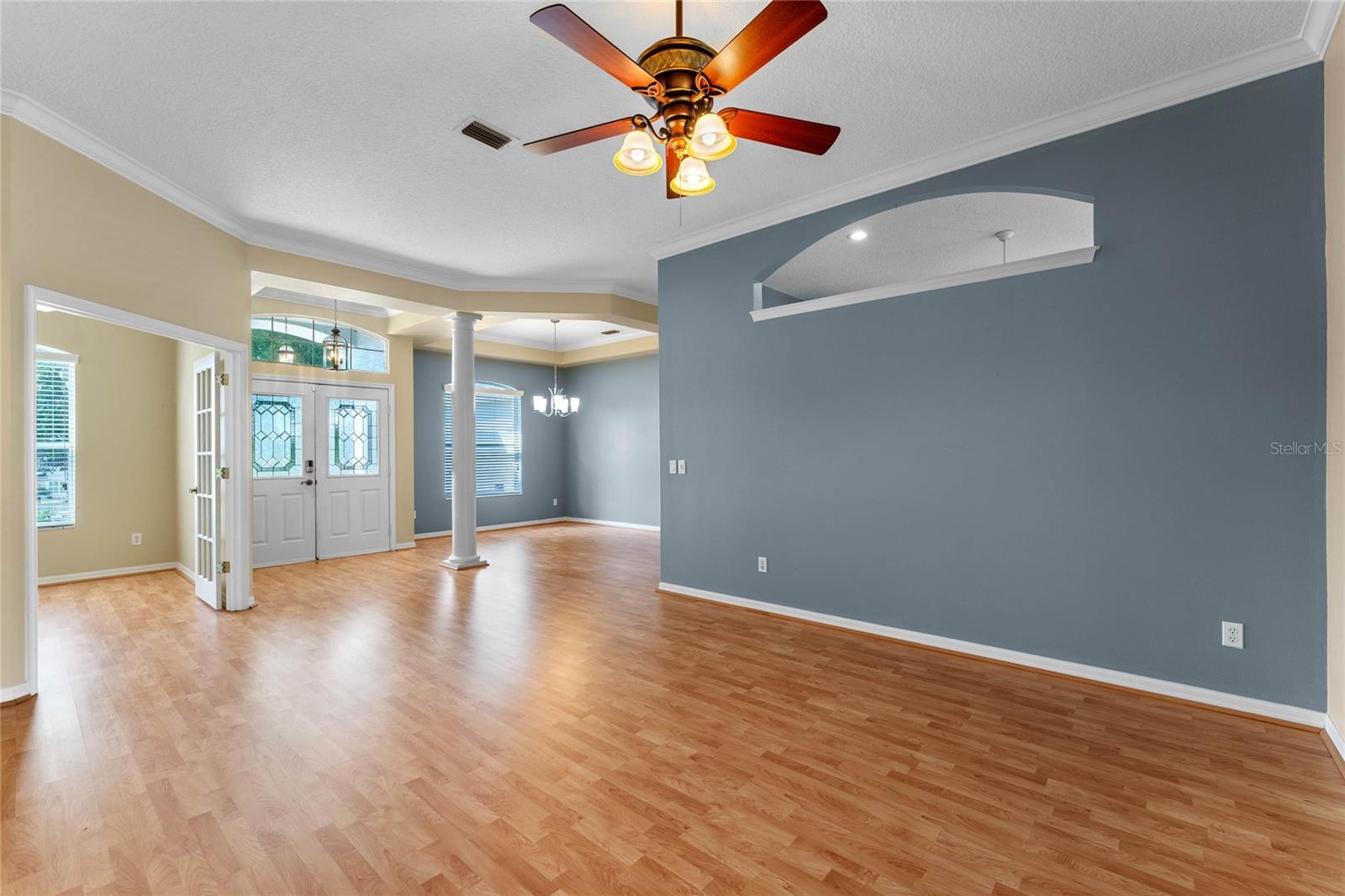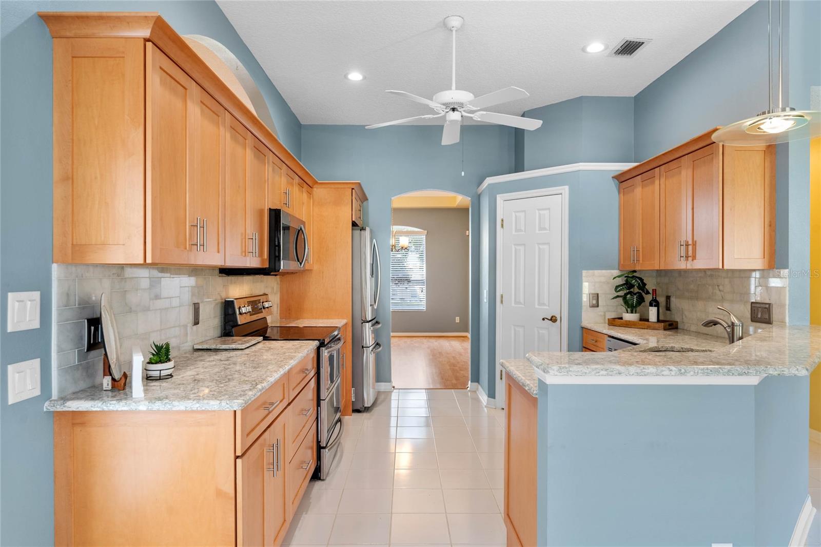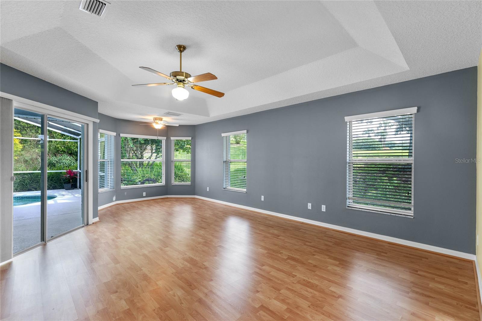 WELCOME HOME to this three bedroom, two bath POOL HOME in the beautiful GOLF community of Harbor Hills. Love SOLAR? This home has it! This move in ready POOL home offers a great floor plan. As you enter the front door you see the formal dining and formal living room. To the right you will see French doors leading to what can be a great office space with views of the front lawn. On the right side of the home, you will be impressed with the large primary bedroom. There is room for your king- sized furniture and extra space for a sitting area. Sliding doors lead to the pool and lanai area. There is his and her walk- in closets and a large bathroom with soaking tub and shower. You will love the quartz counters, cabinets and updated fixtures. From the formal dining room, you enter the kitchen with upgraded quartz counters, back splash, would cabinets, closet pantry and stainless appliances. There is a breakfast area with French doors that lead to the pool, and you can also access the large family room from the kitchen. There are two bedrooms and a guest bathroom on this side of the home. There is a laundry room with a new Samsung washer and dryer, sink and cabinets. The oversized two car garage has a floored attic. Roof (2017) Water Heater (2017) Solar Panels for Pool (2017) AC (2018) Landscape lighting (2018) Leaf Guard gutter system (2019) Solar System House (2023) Upgraded Irrigation (2023). Enjoy your days relaxing in your solar heated pool and enjoying a cook-out on your screened lanai, the perfect sanctuary for relaxing after a long day. Harbor Hills is a gated multigenerational community located about 15 minutes from The Villages where you will have access to a variety of restaurants, shopping and entertainment. Call for your personal tour today!