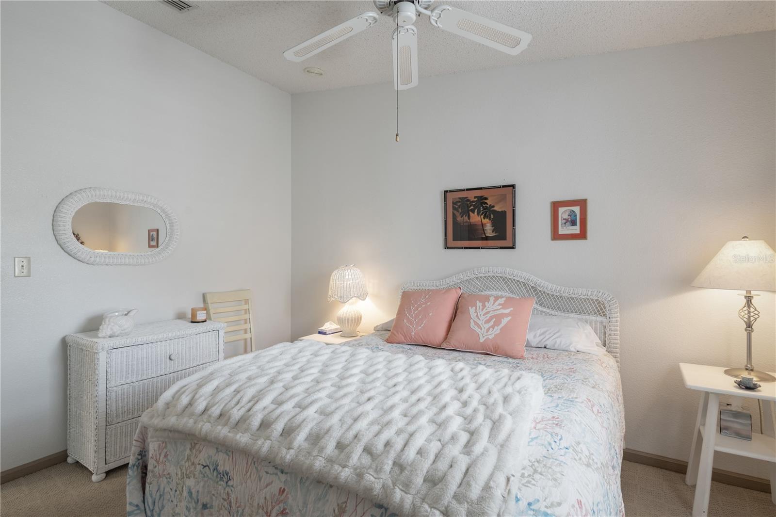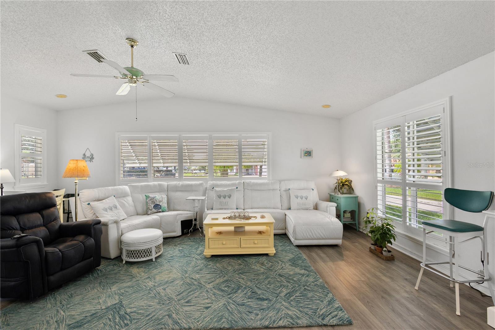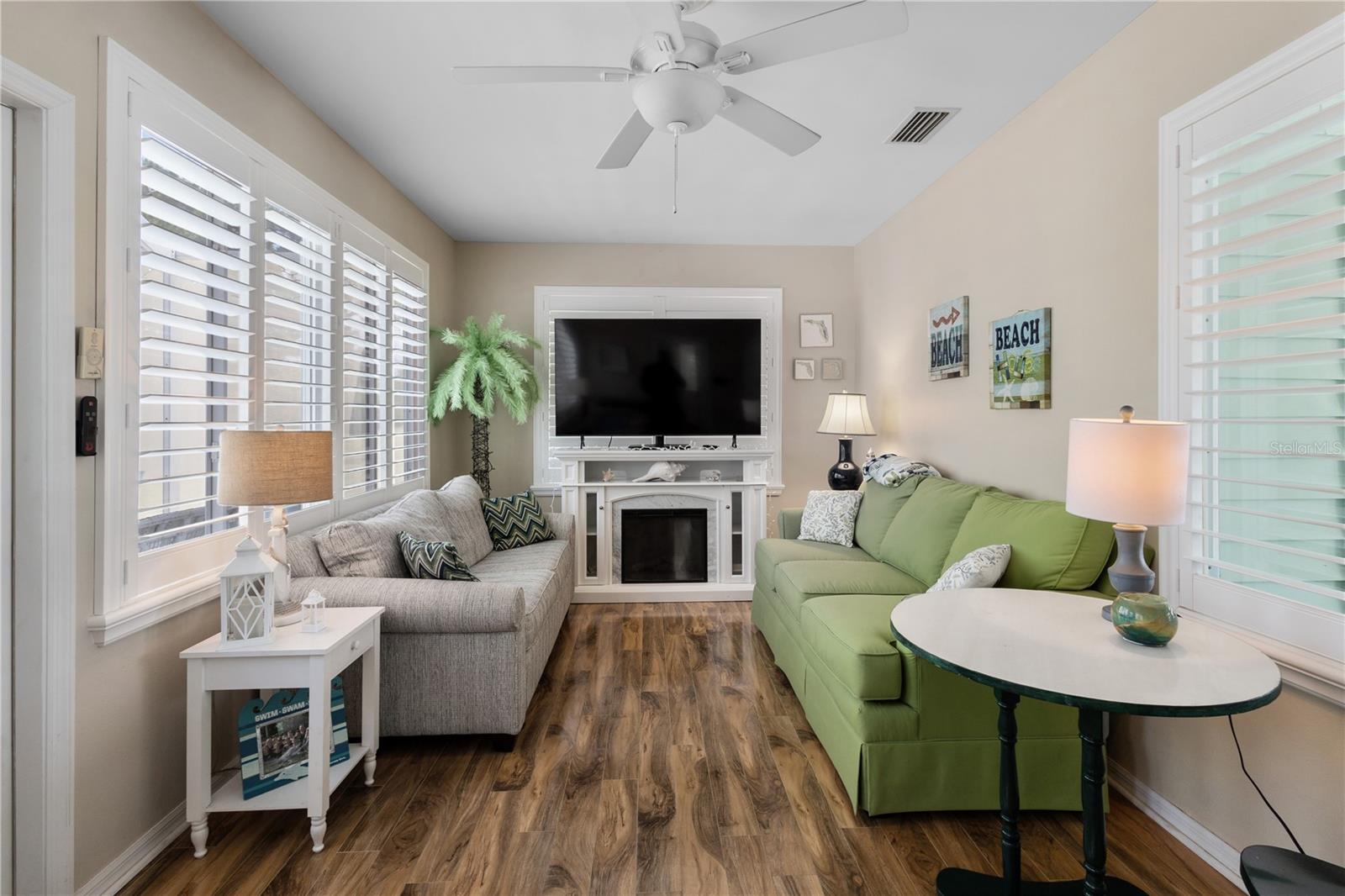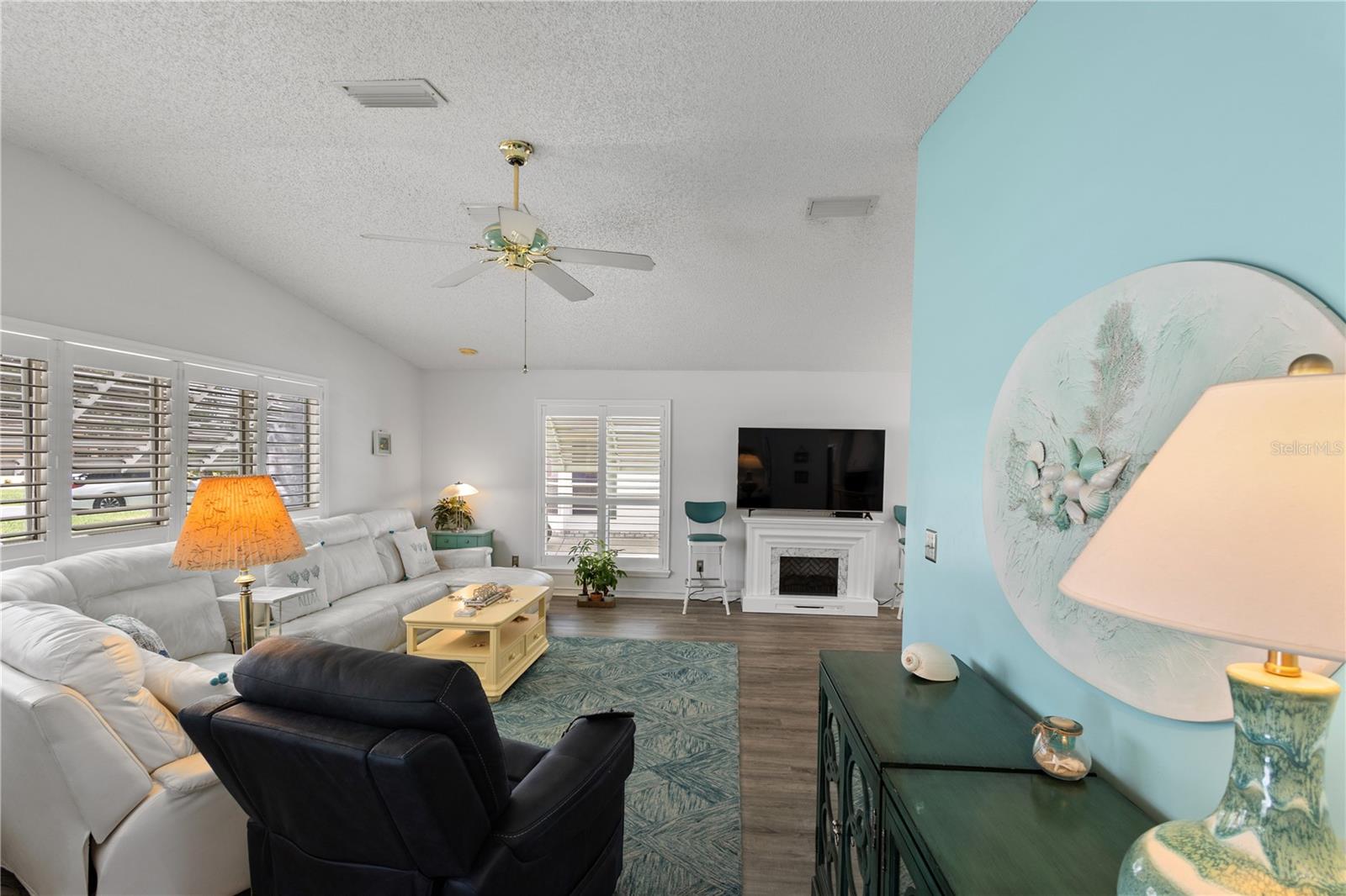 ~Best location in town~ NO BOND! Roof 2022. Welcome to best of coastal-style living in this pristine cottage 2/2 home! Just minutes to Spanish Springs and nestled in the highly desired Village of El Cortez on a cul-de-sac, this adorable home is the hub of entertaining with a large, central carport beckoning neighbors to join you for morning coffee. The large lanai overlooks a private backyard with mature trees. Your private backyard oasis has NO NEIGHBORS BEHIND YOU. The kitchen offers QUARTZ COUNTERTOPS, an eat-in breakfast bar, pantry and an INSIDE LAUNDRY room, Plantation shutters, Skylights, BEAUTIFUL front door. The bedrooms are spacious with the primary bedroom offering a large closet, new extended vanity space with walk in shower. Located in the world's largest 55+ community, The Villages, and conveniently located minutes to the popular SPANISH SPRINGS TOWN SAUARE with newer restaurants (Coastal del Mar, Bella Vita) and entertainment, including the new Blondie's outside bar. You don't want to miss your opportunity to own your slice of heaven! Chula Vista Clubhouse, pool and mail station and the Multi-Modal Path is just steps away for your morning walk. Spanish Springs Town Square is less than 1 mile away for all your Shopping, Restaurants and Entertainment. This home is truly a magical find, schedule your showing today.