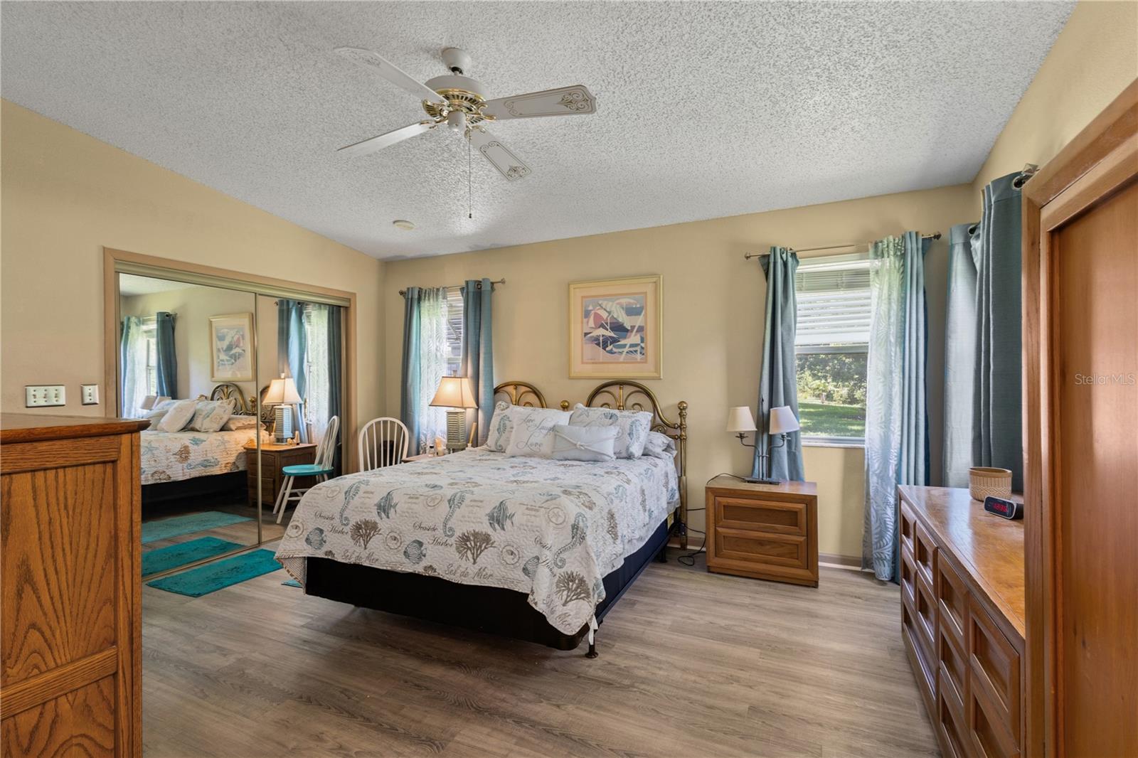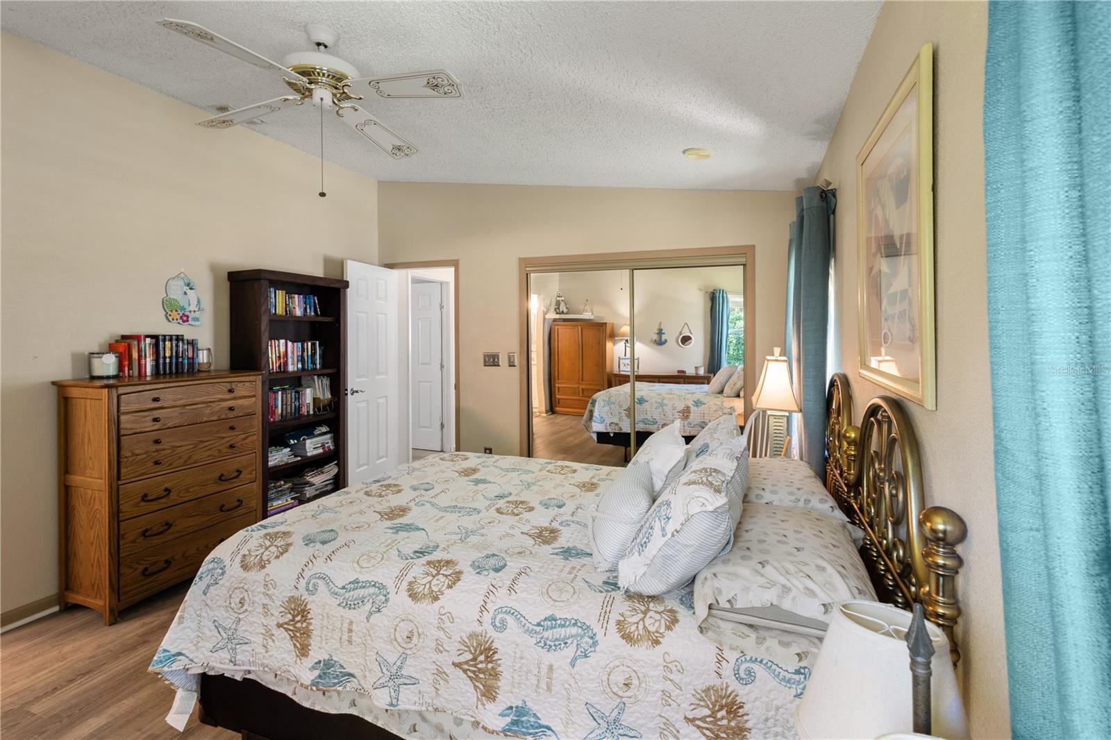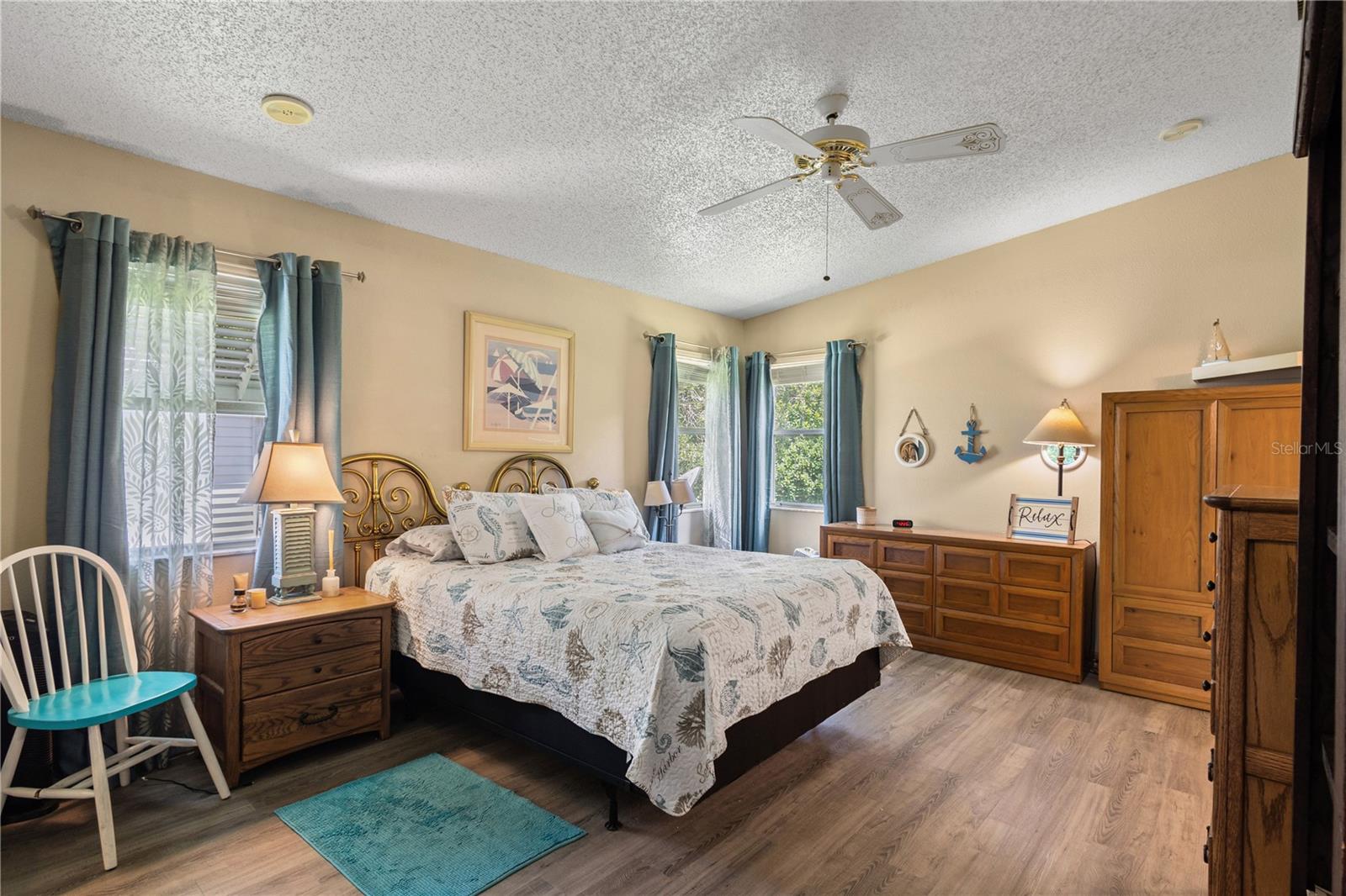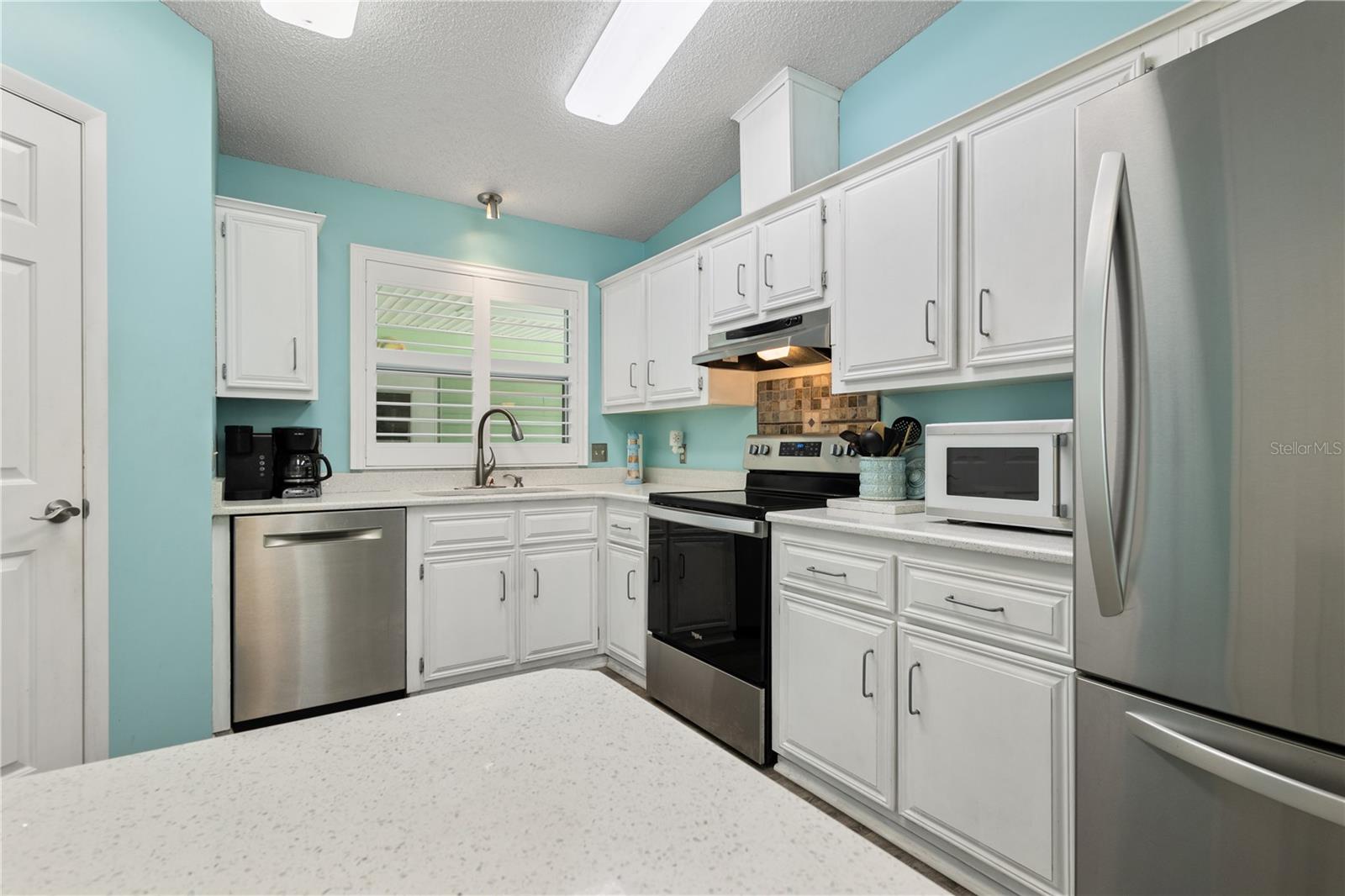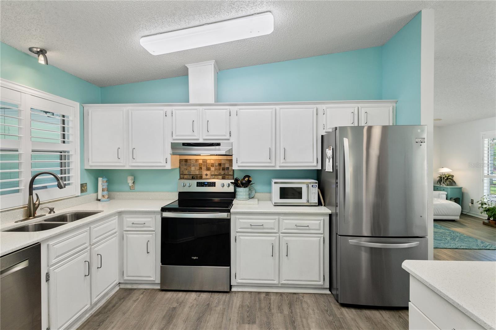 ~Best location in town~ NO BOND! Roof 2022. Welcome to best of coastal-style living in this pristine cottage 2/2 home! Just minutes to Spanish Springs and nestled in the highly desired Village of El Cortez on a cul-de-sac, this adorable home is the hub of entertaining with a large, central carport beckoning neighbors to join you for morning coffee. The large lanai overlooks a private backyard with mature trees. Your private backyard oasis has NO NEIGHBORS BEHIND YOU. The kitchen offers QUARTZ COUNTERTOPS, an eat-in breakfast bar, pantry and an INSIDE LAUNDRY room, Plantation shutters, Skylights, BEAUTIFUL front door. The bedrooms are spacious with the primary bedroom offering a large closet, new extended vanity space with walk in shower. Located in the world's largest 55+ community, The Villages, and conveniently located minutes to the popular SPANISH SPRINGS TOWN SAUARE with newer restaurants (Coastal del Mar, Bella Vita) and entertainment, including the new Blondie's outside bar. You don't want to miss your opportunity to own your slice of heaven! Chula Vista Clubhouse, pool and mail station and the Multi-Modal Path is just steps away for your morning walk. Spanish Springs Town Square is less than 1 mile away for all your Shopping, Restaurants and Entertainment. This home is truly a magical find, schedule your showing today.