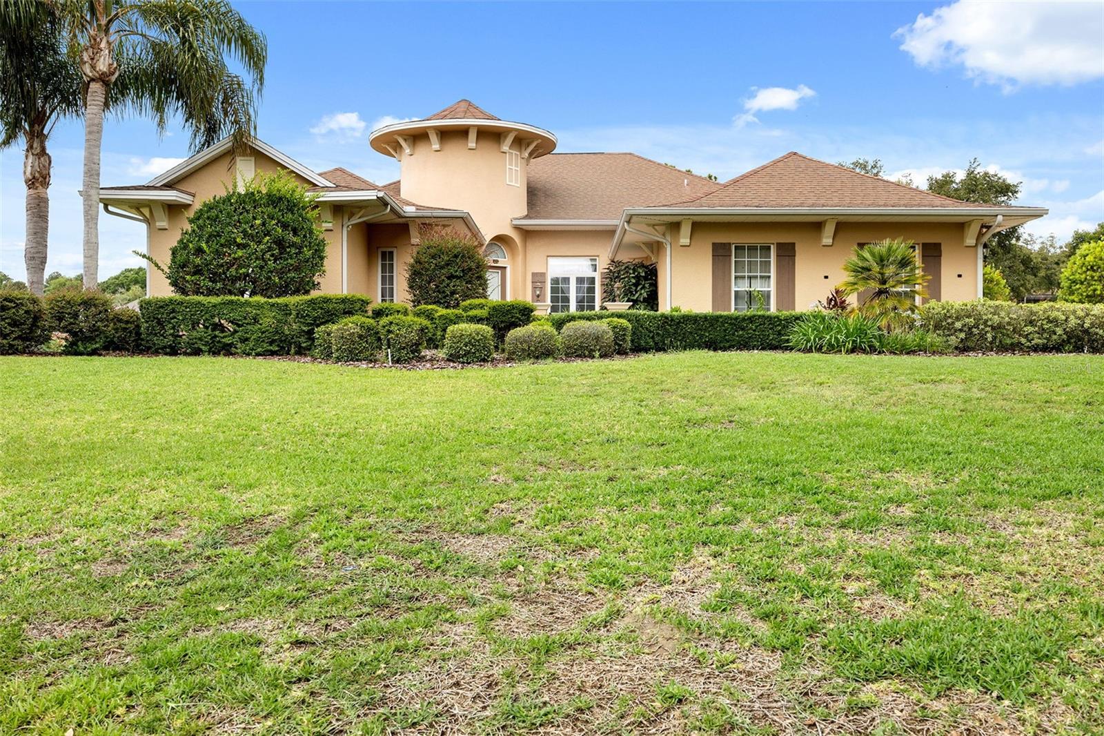 Nestled in the manned gated community of the sought-after Harbor Hills Golf & Tennis Community, you will find this unique and exceptionally maintained home located directly on the golf course. Located near The Villages and all it has to offer. The home features a front office with French doors and an indoor laundry room equipped with a washer and dryer. Off the entrance, there are two bedrooms connected by a Jack and Jill bathroom. At the back of the house, the master bedroom boasts two walk-in closets and a master bathroom with dual vanities, a walk-in shower, and a separate deep garden tub. The kitchen, which includes all appliances, has a cozy eating area perfect for enjoying your morning coffee. With ample counter space, the kitchen is ideal for cooking and entertaining, and it opens seamlessly to both the living room and the bright dining room area. From the tiled, screened-in back lanai, you can relax in the evenings and watch the sunset. With just over half an acre, there's plenty of room to add a pool if desired. Living in this community does not require membership to the Harbor Hills Country Club, yet you still have the option to dine in or carry out from the clubhouse restaurant. Spanning over 800 acres, Harbor Hills features a 72-championship golf course rated 4 stars by Golf Digest (membership is needed for the golf course). For an additional fee, residents can access tennis, pickleball, swimming in a Junior Olympic pool, and a sauna, as well as enjoy the fitness center and other clubhouse amenities. This home offers a perfect blend of luxury, convenience, and recreational opportunities in a stunning golf course setting. All information deemed reliable but must be verified by buyers. All room measurements are approximate and must be also verified by buyers. Floor plans are for illustration only; they are not a substitute for architectural floor plans. Measurements are approximate.”