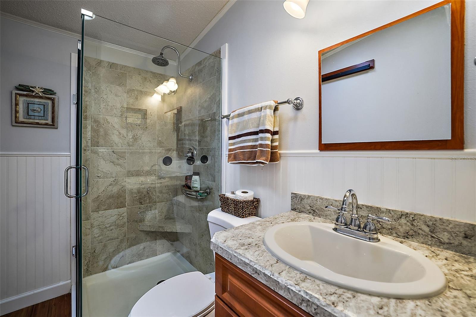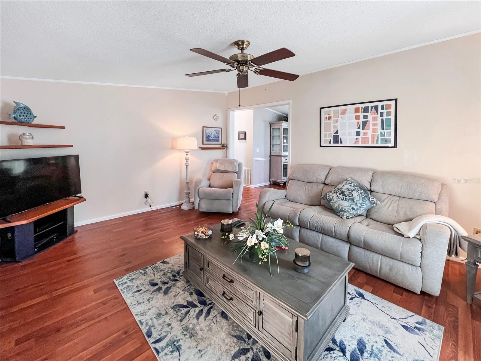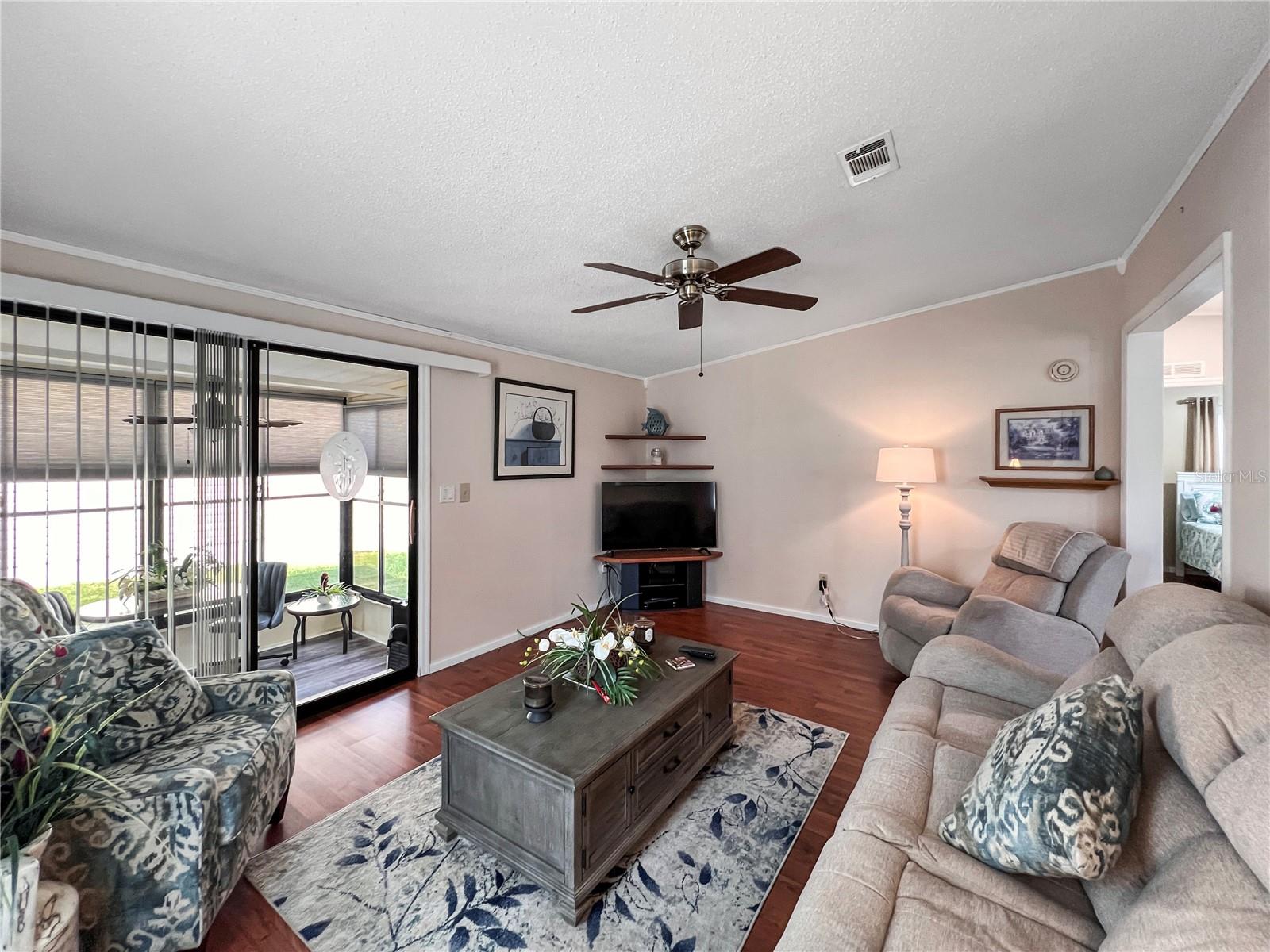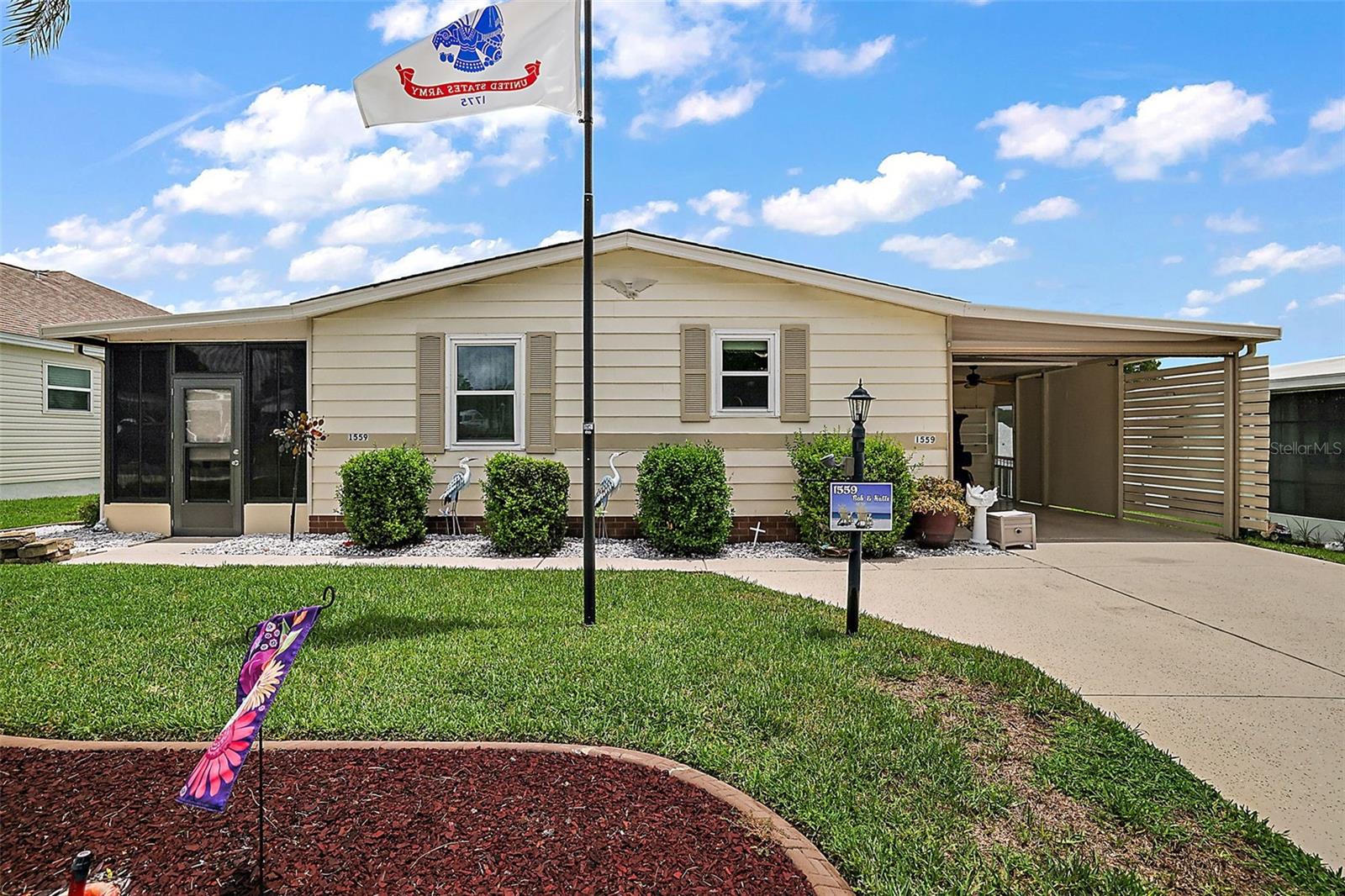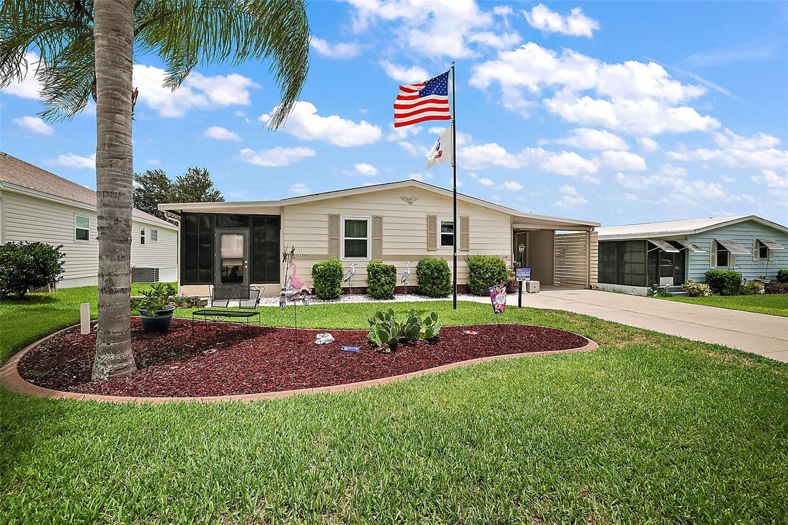 NO BOND! Welcome to your new home in the Village of Orange Blossom Gardens, this beautifully maintained residence offers a host of updates and is TURNKEY. Situated on a spacious lot, the property features an extra-wide driveway and meticulously manicured landscaping. Inside, laminate flooring spans throughout, complementing the newly updated kitchen adorned with fresh white cabinetry, granite countertops, and stainless steel appliances. The bathroom has been tastefully renovated with a walk-in tiled shower featuring frameless glass shower door, laminate flooring, and a stylish barn door linen closet. The master bedroom includes a new half bath for added convenience. A 12'x12' storage room was constructed in 2022 and the Electrical Panel Box updated 2024. Additional updates include a new roof replacement in 2017, HVAC 2021 Hot Water Tank 2022, ensuring peace of mind for years to come. Located just minutes away from the Orange Blossom Gardens Country Club and Golf Course, as well as a variety of shopping, dining, medical facilities, and entertainment options, this home offers the perfect blend of comfort, convenience, and leisure. Don't miss out on the opportunity to experience all that The Villages lifestyle has to offer—schedule your viewing today!