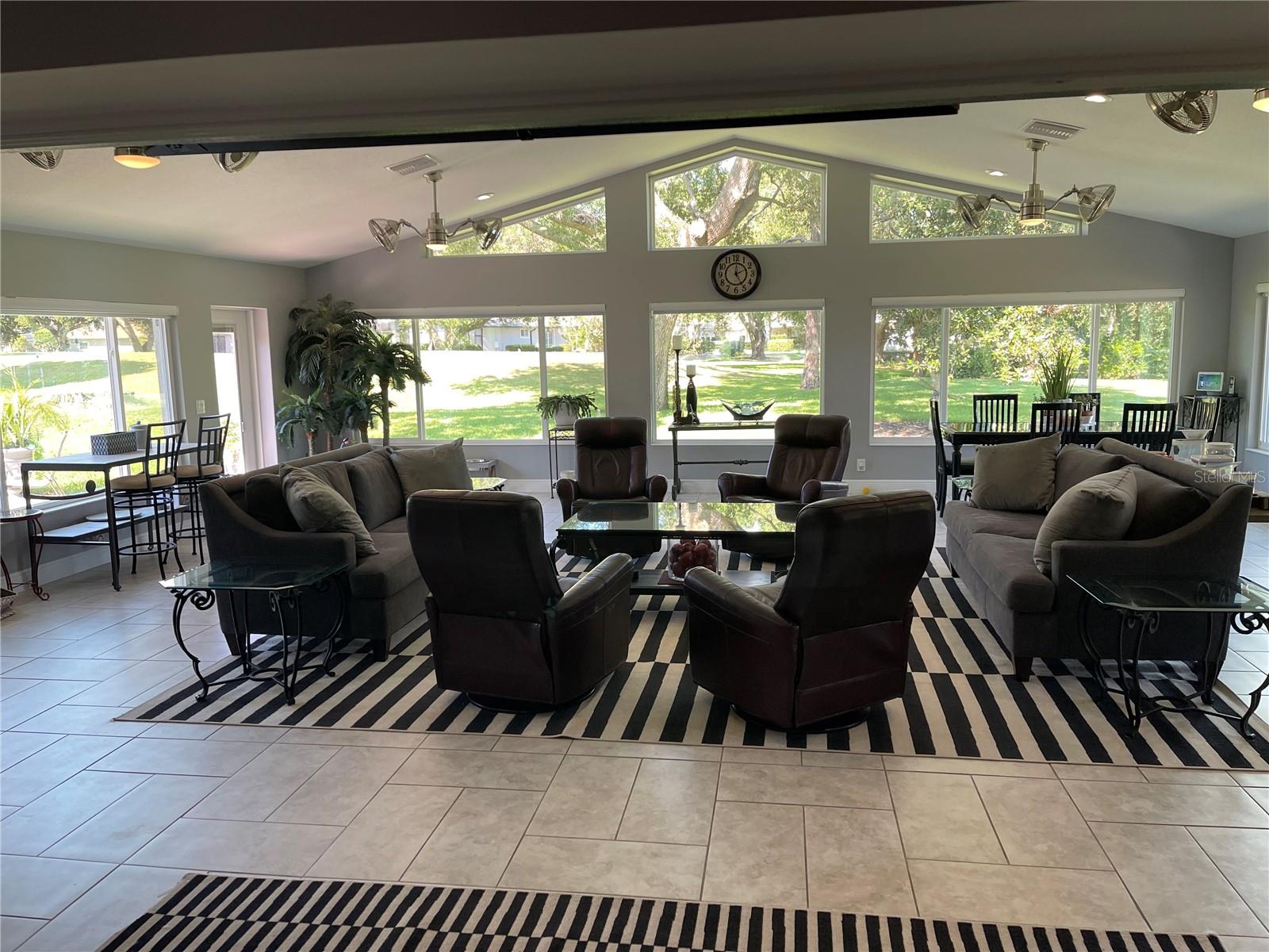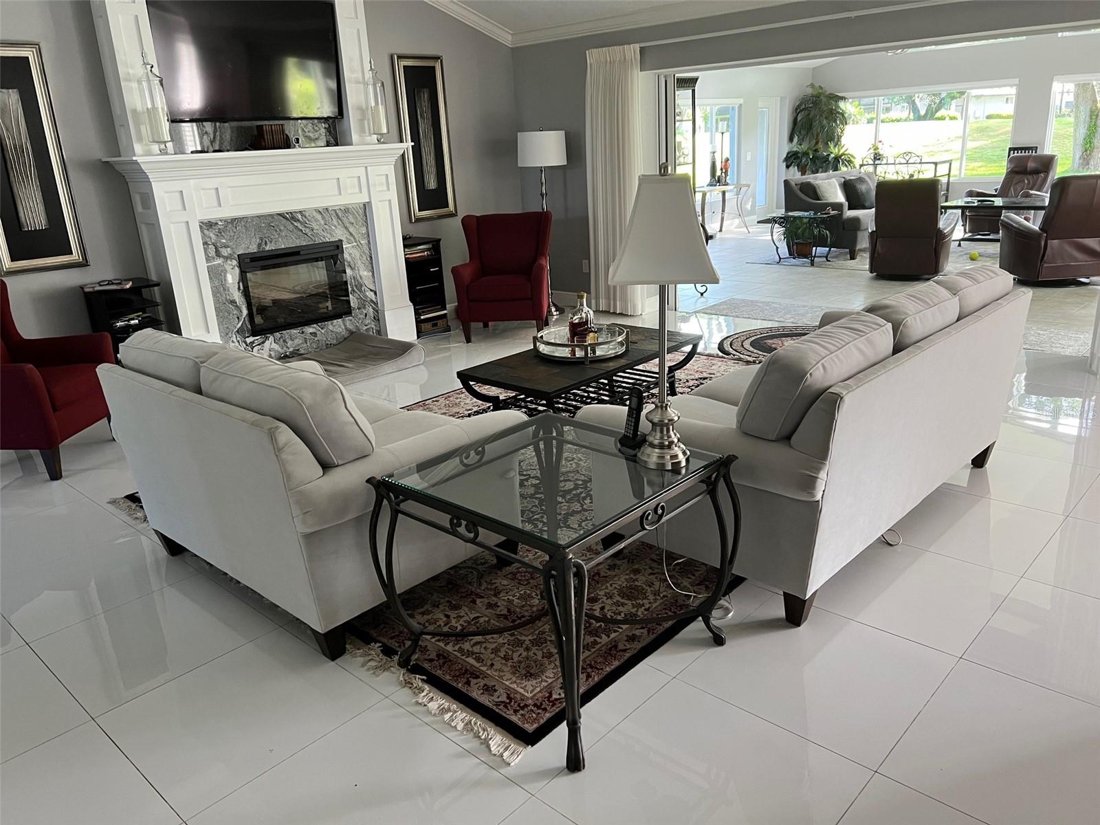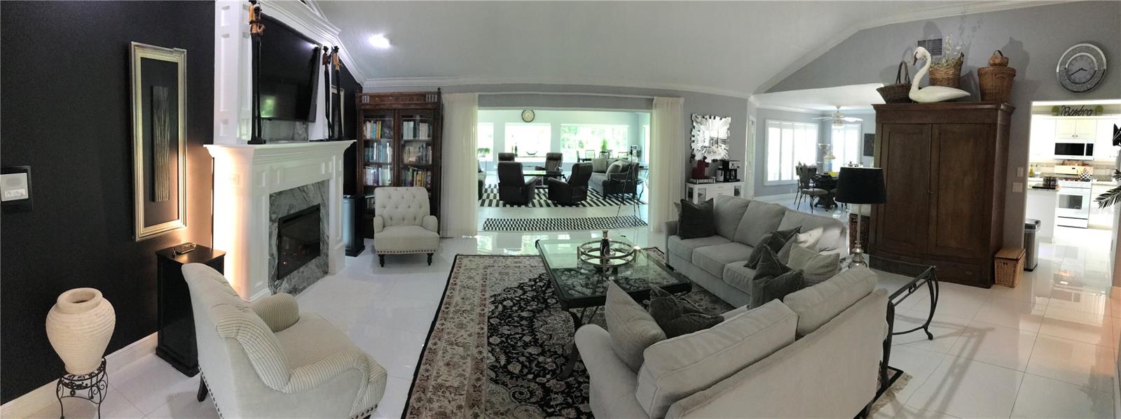 Step inside this exquisite home located on the 15th tee in the exclusive Harbor Hills Community. Built in 1997, to the most exacting standards, this home has been lovingly transformed into an impressive showplace, that your family and friends can enjoy. It was further enhanced by the addition of a 900 square foot great Room with a stunning panoramic view of our world class golf course. This new family room addition was added complete with reinforced and insulated walls completely under roof and with 140 MPH impact windows. There are four Pendersens 42' dual fans in this room and seven electric remote controlled window shades as well as four sliding pocket doors in the wall from the living room. The living room has an electric auto-controlled fireplace, dual Pendersens 42' industrial fans. All the rooms boast crown moldings and large baseboards and 24x24 ceramic tiles except the family room tiles are 12x24. All the windows have upgraded wooden plantation shutters. The kitchen has beautiful cabinetry and quartz countertops, a gas stove, adjustable lighting, a Samsung Refrigerator freezer and a microwave, a wine rack and an electric cooler. The formal Dining room has an exquisite custom built in China cabinet with European type drawers and shelves. One wall boasts an elegant 10’x 6’ mirror. The huge Master Bedroom has French doors with plantation shutters to the family room and the adjacent incredible master bath has a walk-in shower with 4 side jets and a handheld shower as well as a rain shower head. There is a whirlpool master bath tub and a toilet room which includes a bidet. The walk-in closet is spacious. There are marble vanity tops in all the bathrooms, two of which have skylights. Countless special features and upgrades are indicative of the quality and careful attention to detail makes this home unique and one of a kind. These include: A central vacuum system, whole house 20-amp circuitry, a water filtration system, special antennas in the attic eliminating the need and expense of cable service charges. A Generac automatic generator system provides service to the entire house. A gas stove and on demand hot water heater. Remote controlled cell phone features, such as blue tooth garage door openers and a blue tooth thermostat and remote-controlled doorbell. The property sits on a pristine half-acre of land. It is landscaped beautifully with fruit trees including oranges, lemon, lime, fig, and grapefruit trees as well as Papaya and pineapple plants. The exterior has motion detector and flood lights all around. Beautiful 6-foot lighting strips light up the front entrance and garage door entries. All shopping, banking, and eating places galore are available in nearby Lady Lake or The Villages. This home just takes your breath away