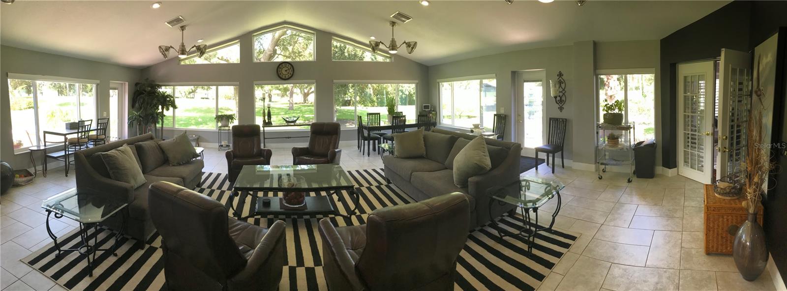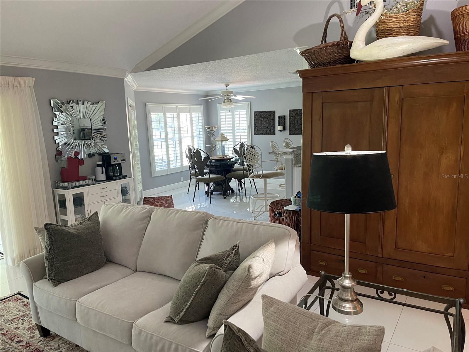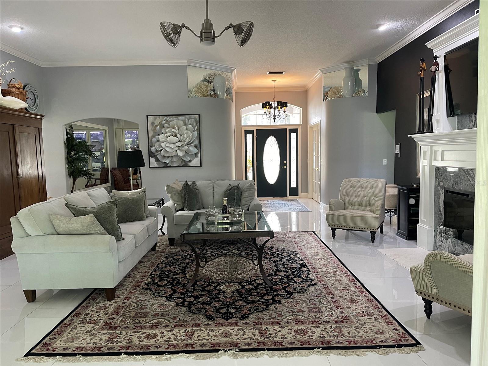 Step inside this exquisite home located on the 15th tee in the exclusive Harbor Hills Community. Built in 1997, to the most exacting standards, this home has been lovingly transformed into an impressive showplace, that your family and friends can enjoy. It was further enhanced by the addition of a 900 square foot great Room with a stunning panoramic view of our world class golf course. This new family room addition was added complete with reinforced and insulated walls completely under roof and with 140 MPH impact windows. There are four Pendersens 42' dual fans in this room and seven electric remote controlled window shades as well as four sliding pocket doors in the wall from the living room. The living room has an electric auto-controlled fireplace, dual Pendersens 42' industrial fans. All the rooms boast crown moldings and large baseboards and 24x24 ceramic tiles except the family room tiles are 12x24. All the windows have upgraded wooden plantation shutters. The kitchen has beautiful cabinetry and quartz countertops, a gas stove, adjustable lighting, a Samsung Refrigerator freezer and a microwave, a wine rack and an electric cooler. The formal Dining room has an exquisite custom built in China cabinet with European type drawers and shelves. One wall boasts an elegant 10’x 6’ mirror. The huge Master Bedroom has French doors with plantation shutters to the family room and the adjacent incredible master bath has a walk-in shower with 4 side jets and a handheld shower as well as a rain shower head. There is a whirlpool master bath tub and a toilet room which includes a bidet. The walk-in closet is spacious. There are marble vanity tops in all the bathrooms, two of which have skylights. Countless special features and upgrades are indicative of the quality and careful attention to detail makes this home unique and one of a kind. These include: A central vacuum system, whole house 20-amp circuitry, a water filtration system, special antennas in the attic eliminating the need and expense of cable service charges. A Generac automatic generator system provides service to the entire house. A gas stove and on demand hot water heater. Remote controlled cell phone features, such as blue tooth garage door openers and a blue tooth thermostat and remote-controlled doorbell. The property sits on a pristine half-acre of land. It is landscaped beautifully with fruit trees including oranges, lemon, lime, fig, and grapefruit trees as well as Papaya and pineapple plants. The exterior has motion detector and flood lights all around. Beautiful 6-foot lighting strips light up the front entrance and garage door entries. All shopping, banking, and eating places galore are available in nearby Lady Lake or The Villages. This home just takes your breath away