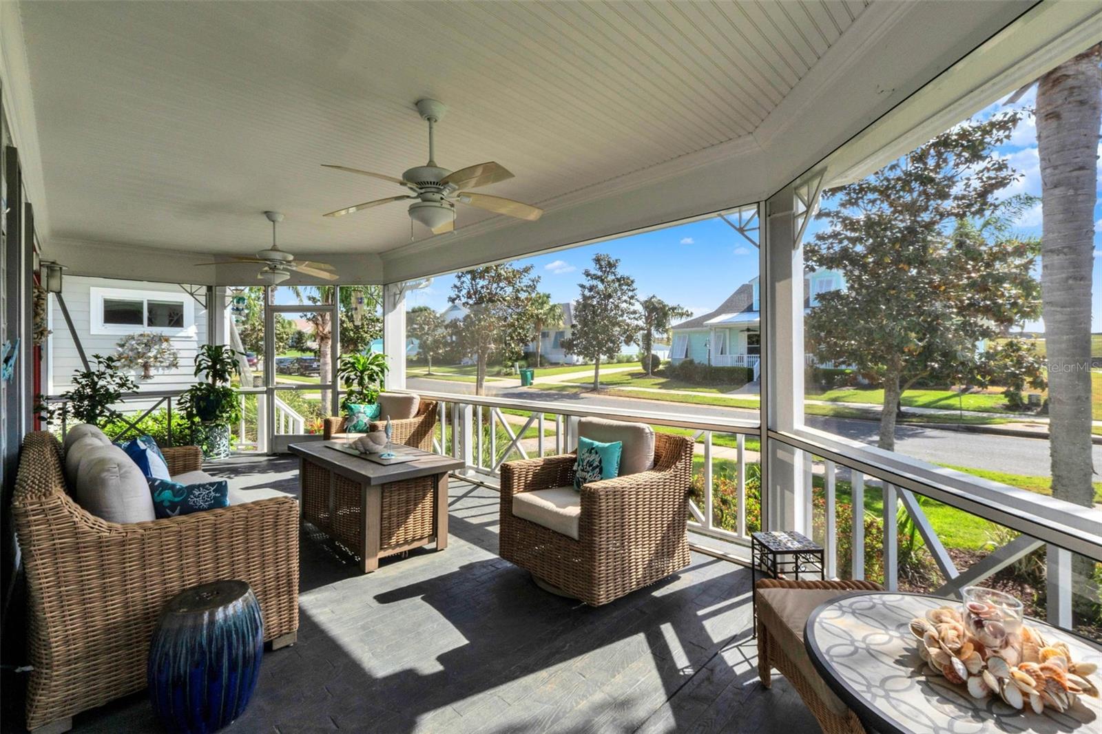 The Home You've Been Searching For – Custom Without the Cost If you've been dreaming of a custom home without the custom price tag, this is it. Nothing compares to this stunning island-inspired oasis—especially not a new build when it comes to quality, craftsmanship, and value. Welcome to Green Key Village, a gated, eco-conscious community inspired by the charm and color of Key West living. This beautifully designed 4-bedroom, 2.5-bath home offers elevated details, a flexible split floor plan, and energy-efficient features that make everyday living both luxurious and practical. From the moment you arrive, you’ll be drawn in by the newly screened front porch, Bahama shutters, and transom leaded glass door—perfectly setting the tone for what’s inside. Soaring 10-foot ceilings, fresh interior paint, new luxury vinyl plank flooring (NO carpet!), crown molding, and updated fixtures flow throughout the home. The spacious primary suite features a dual-head tiled walk-in shower, double vanity, and oversized closet. On the opposite wing, three guest bedrooms share a stylish tiled bath. In the kitchen, you’ll love the leathered Corian countertops, new appliances, center island, and sunny dinette nook. Entertain in the formal dining area or enjoy peaceful evenings in your private, landscaped backyard with a screened porch—ideal for watching wildlife. You’ll also enjoy the perks of a HUGE floored & insulated attic for storage and a 2023 HVAC. Plus, solar panels dramatically cut utility bills while supporting your sustainable lifestyle. Community amenities include a beach-entry pool, tennis and pickleball courts, and a beautiful community garden. Located just 10 minutes from The Villages and an hour from Orlando, Green Key Village is where relaxed Florida living meets modern convenience. Live beautifully. Live sustainably. And don’t settle—this is the one.
