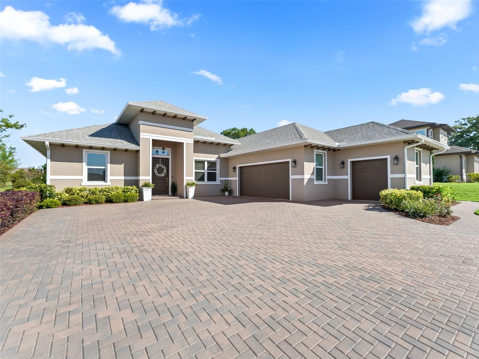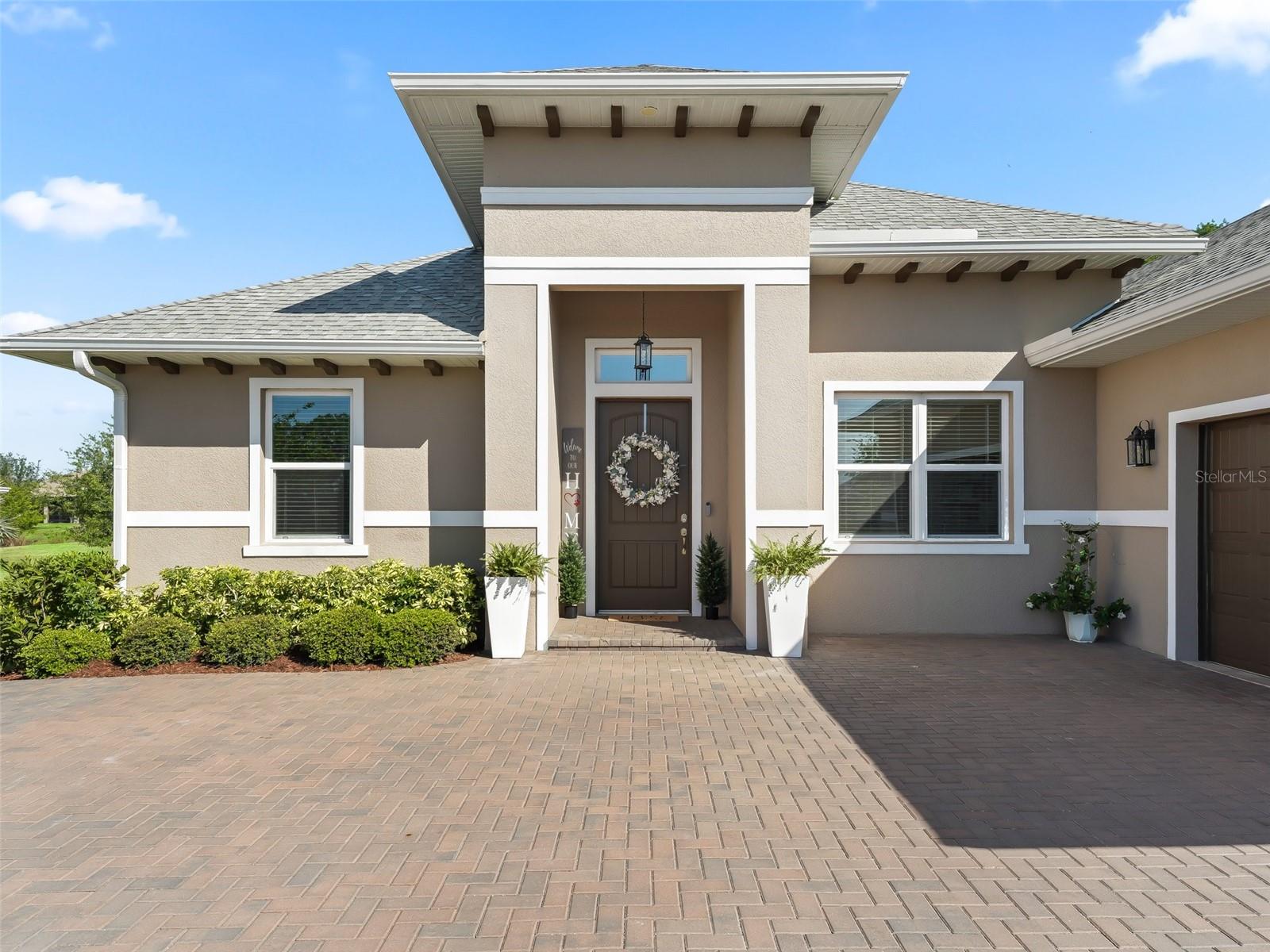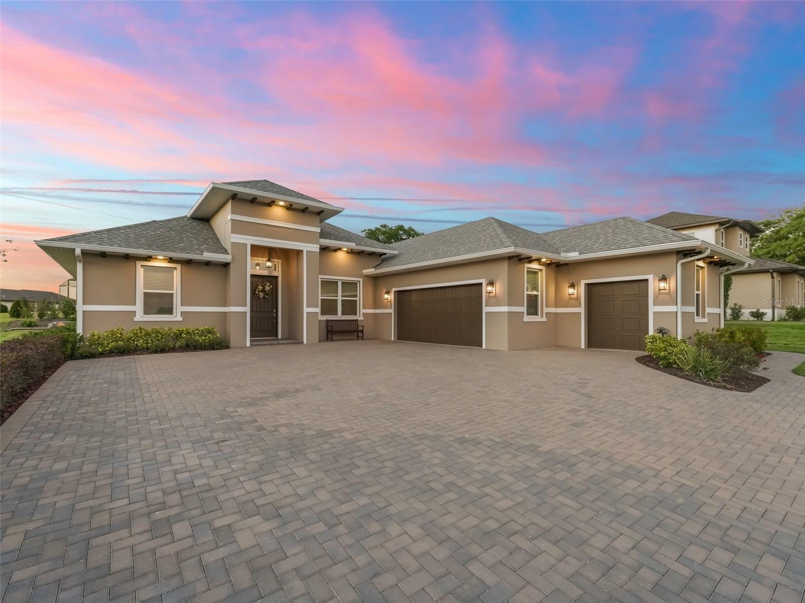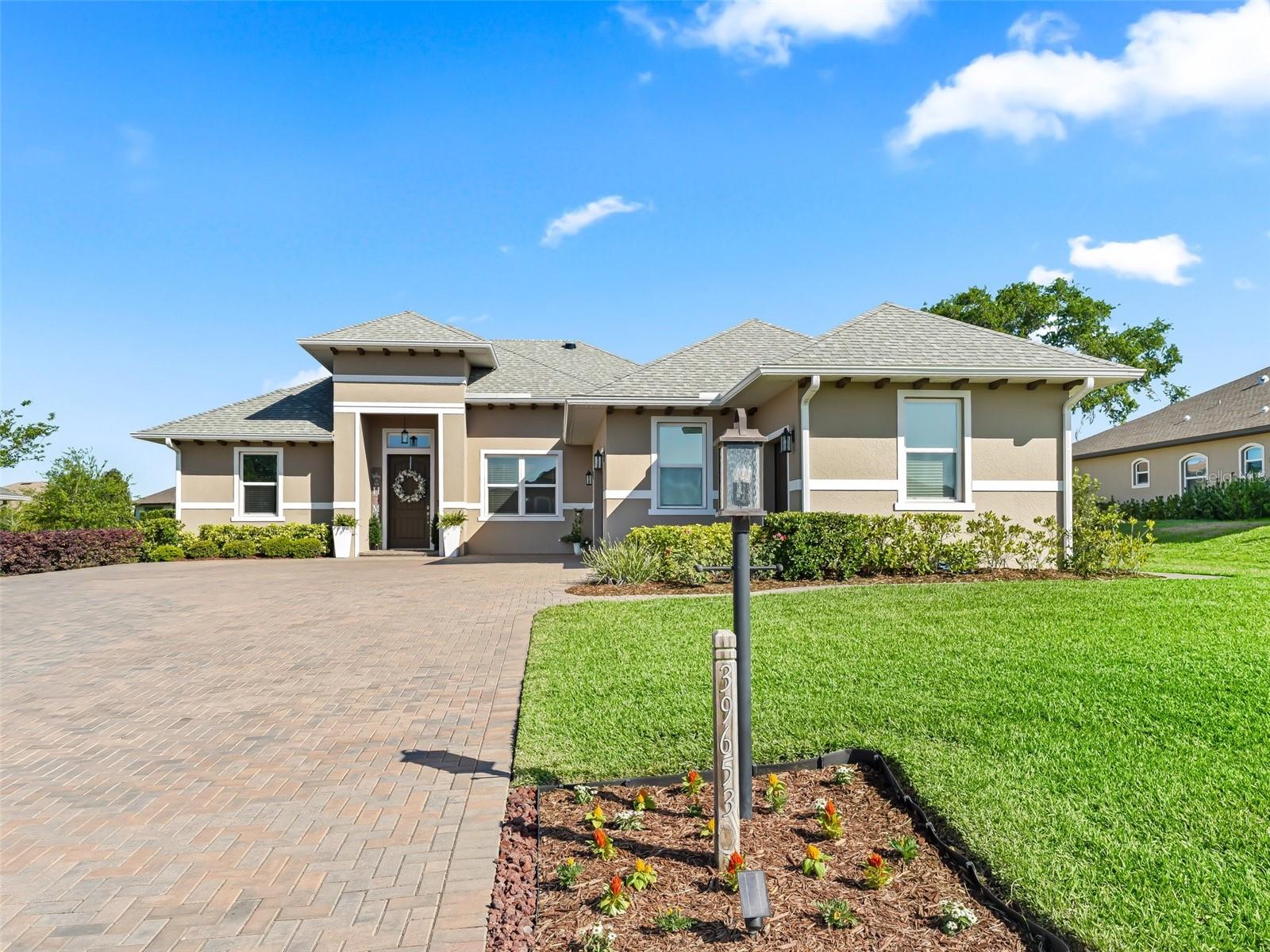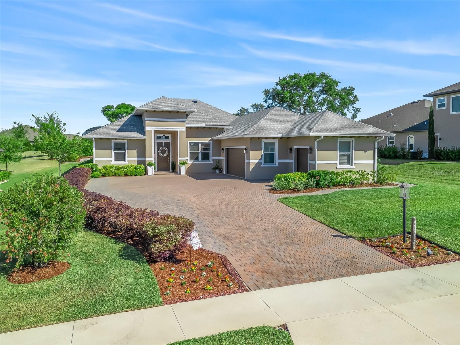 Experience the Florida Lifestyle of Your Dreams in Ultimate Luxury! Welcome to your exquisite custom home, beautifully situated among the rolling hills of the prestigious Bella Vista, within the Harbor Hills Country Club. Revel in breathtaking sunset views while surrounded by an array of luxurious features and modern amenities. This opulent home boasts enduring block and stucco construction with decorative exterior corbels, lush landscaping, ambient low-voltage landscape lighting, and programmable recessed soffit lighting. The extended paver driveway & walkways lead you to an entrance adorned with insulated double-pane low-E windows, 8-foot tall interior doors, refined custom millwork, elegant crown and base moldings, cased window and door openings, rounded corners, designer lighting, and luxurious vinyl plank flooring, complemented by PICO wireless dimmer switches. The great room opens up into the 1,152 square foot entertainer's outdoor paradise, seamlessly merging indoor and outdoor spaces, perfect for enjoying the wonderful Florida climate year-round. The lanai is a true masterpiece, measuring 22' x 39', and features a custom-built entertainment center, a 42-inch gas fireplace, elegant wood-milled ceiling detail, and an abundance of 54-inch ceiling fans with recessed lights. The fully equipped stainless steel summer kitchen, complete with a 36-inch Charbroil 5-burner gas grill, granite countertops, a decorative vented hood, and under-counter refrigerators, invites you to host unforgettable gatherings. Experience unparalleled privacy with automated blinds, beautiful white ceramic tile, and a 120-gallon owned buried gas tank for the summer kitchen and fireplace. The generous two-car and golf cart garage is equipped with insulated garage doors, insulated ceiling, ample elevated storage platforms, pegboard, heavy-duty aluminum pull-down attic stairs, and epoxy-coated floor, complete with a service door with touch keypad and automatic sensor lighting, plus a mini split air conditioner. The home office exudes sophistication with full glass French doors, a 54-inch ceiling fan, and crown molding. Indulge your culinary skills in the meticulously designed gourmet kitchen that includes Quartz countertops, stone backsplash, an extensive island with additional storage, under and above cabinet lighting, built-in refrigerator, crown molding, double trash pull-out, large pots and pans drawers, built-in microwave, and a vented hood. Gather around the three barstools at the island or effortlessly serve from the buffet counter with cabinetry and a pass-through serving window to the lanai. Relax in the spacious owner's suite, enhanced with ambient lighting, individual nightstand lamps with switches conveniently placed near the bed, crown molding, and dual walk-in closets with custom built-ins and motion-activated lighting. The opulent owner's bathroom features double vanities with a linen closet, a dedicated dressing area, Quartz countertops, and an indulgently spacious walk-in shower with dual shower heads, benches, a private commode, and a pocket door leading to the well-appointed laundry room equipped with Quartz countertops and custom cabinetry. The pride of ownership is evident the moment you enter this exquisite custom home, enhanced by the addition of owned solar panels for a sustainable lifestyle. Call today to schedule your appointment and embrace the luxurious lifestyle you deserve!