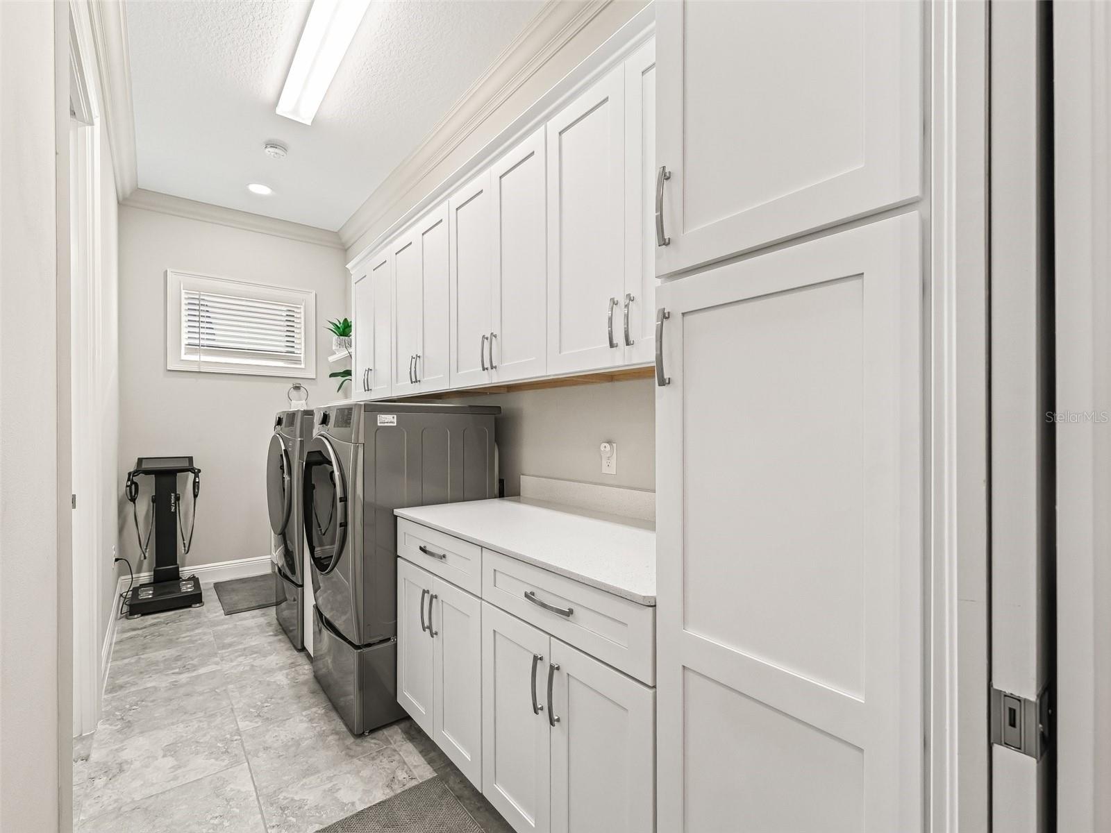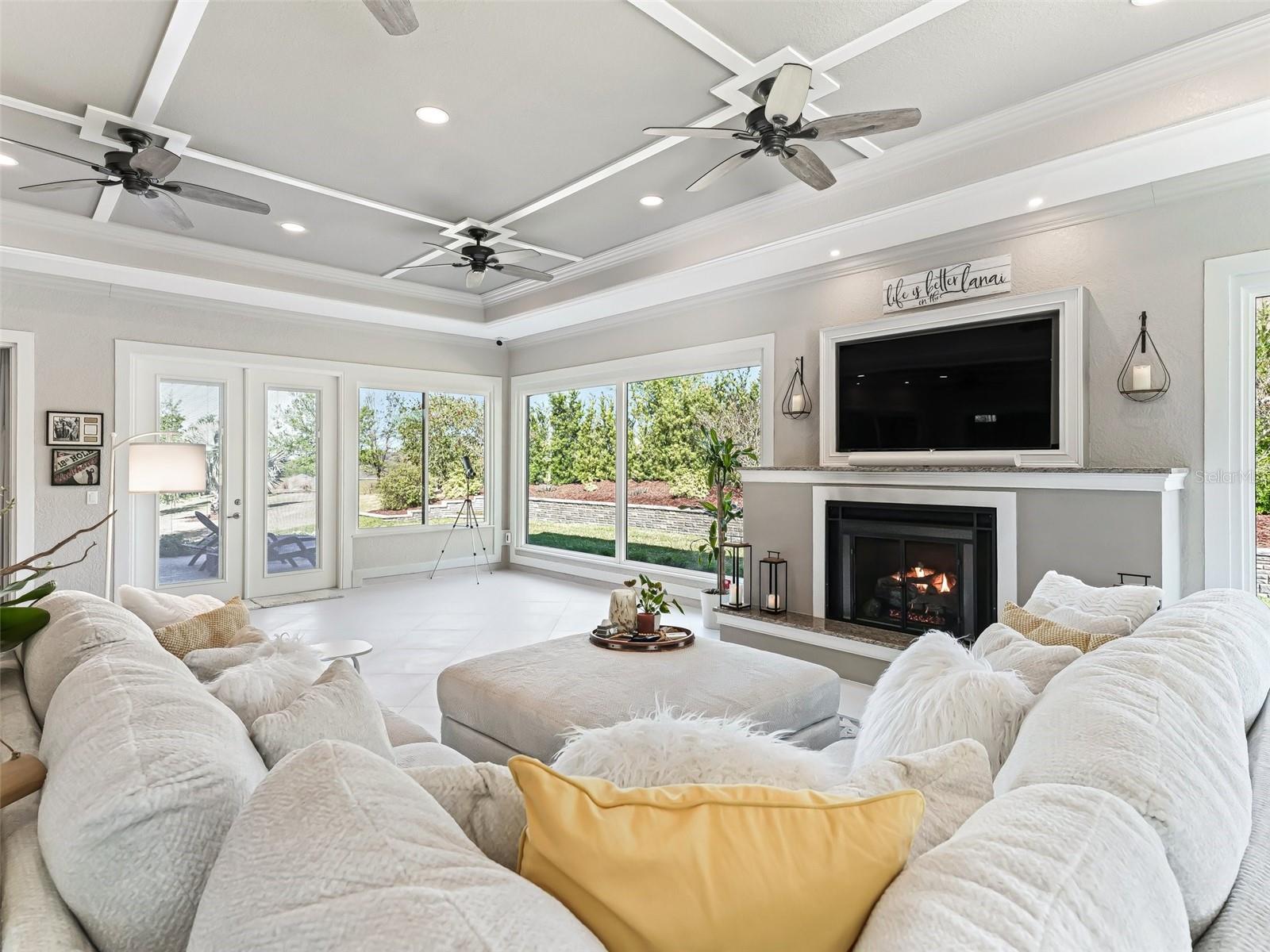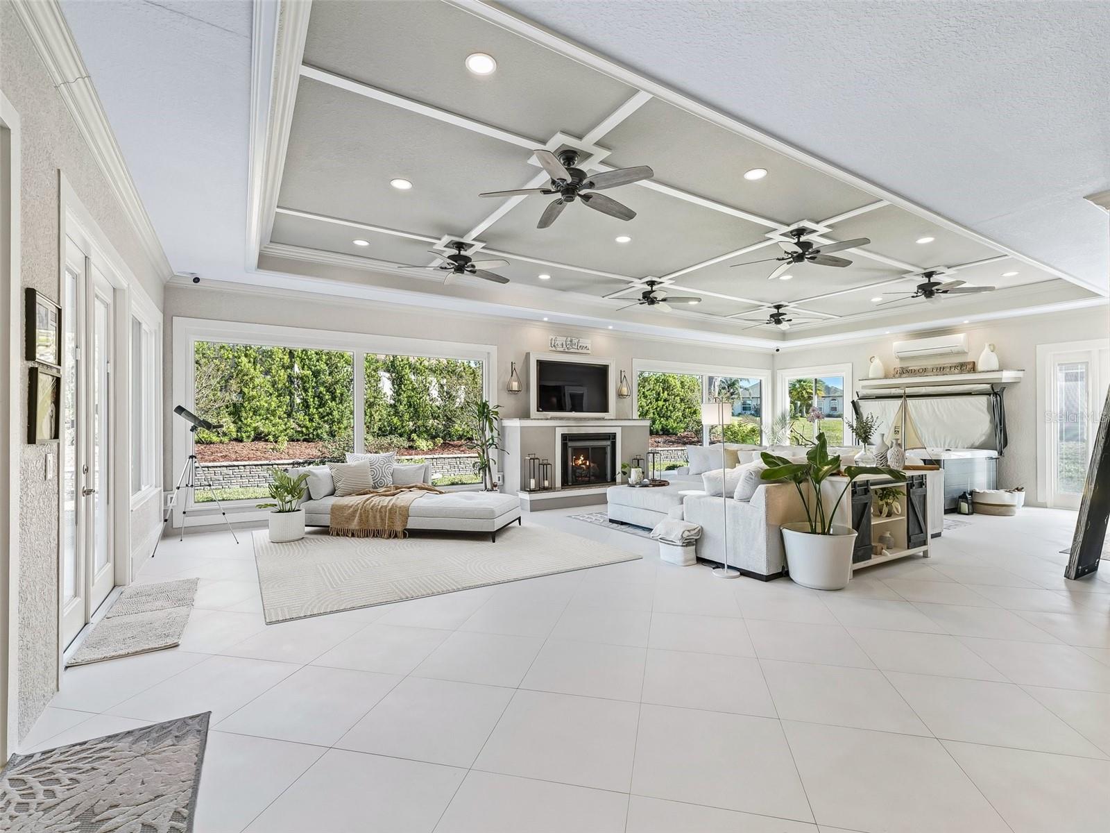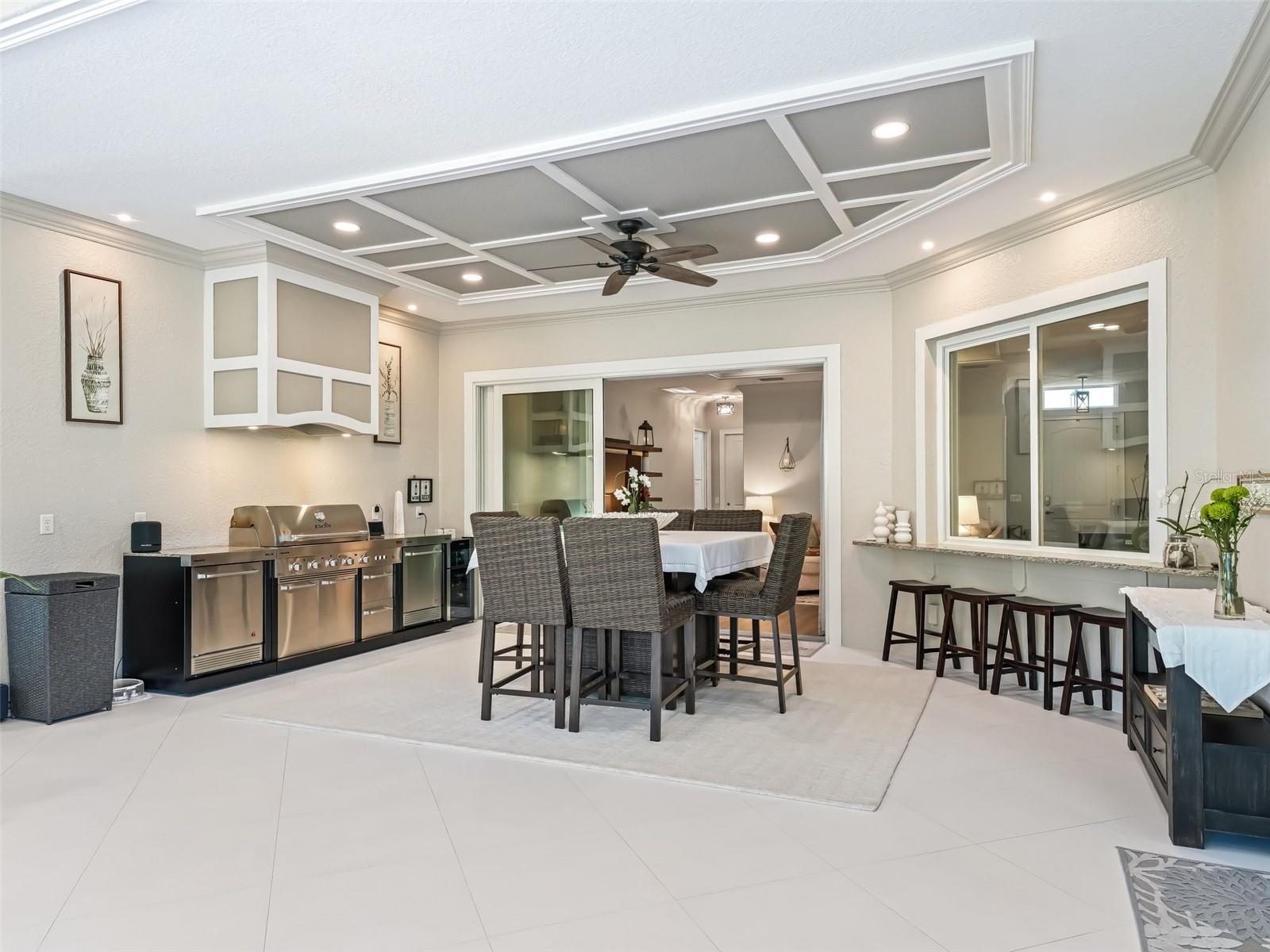 Experience the Florida Lifestyle of Your Dreams in Ultimate Luxury! Welcome to your exquisite custom home, beautifully situated among the rolling hills of the prestigious Bella Vista, within the Harbor Hills Country Club. Revel in breathtaking sunset views while surrounded by an array of luxurious features and modern amenities. This opulent home boasts enduring block and stucco construction with decorative exterior corbels, lush landscaping, ambient low-voltage landscape lighting, and programmable recessed soffit lighting. The extended paver driveway & walkways lead you to an entrance adorned with insulated double-pane low-E windows, 8-foot tall interior doors, refined custom millwork, elegant crown and base moldings, cased window and door openings, rounded corners, designer lighting, and luxurious vinyl plank flooring, complemented by PICO wireless dimmer switches. The great room opens up into the 1,152 square foot entertainer's outdoor paradise, seamlessly merging indoor and outdoor spaces, perfect for enjoying the wonderful Florida climate year-round. The lanai is a true masterpiece, measuring 22' x 39', and features a custom-built entertainment center, a 42-inch gas fireplace, elegant wood-milled ceiling detail, and an abundance of 54-inch ceiling fans with recessed lights. The fully equipped stainless steel summer kitchen, complete with a 36-inch Charbroil 5-burner gas grill, granite countertops, a decorative vented hood, and under-counter refrigerators, invites you to host unforgettable gatherings. Experience unparalleled privacy with automated blinds, beautiful white ceramic tile, and a 120-gallon owned buried gas tank for the summer kitchen and fireplace. The generous two-car and golf cart garage is equipped with insulated garage doors, insulated ceiling, ample elevated storage platforms, pegboard, heavy-duty aluminum pull-down attic stairs, and epoxy-coated floor, complete with a service door with touch keypad and automatic sensor lighting, plus a mini split air conditioner. The home office exudes sophistication with full glass French doors, a 54-inch ceiling fan, and crown molding. Indulge your culinary skills in the meticulously designed gourmet kitchen that includes Quartz countertops, stone backsplash, an extensive island with additional storage, under and above cabinet lighting, built-in refrigerator, crown molding, double trash pull-out, large pots and pans drawers, built-in microwave, and a vented hood. Gather around the three barstools at the island or effortlessly serve from the buffet counter with cabinetry and a pass-through serving window to the lanai. Relax in the spacious owner's suite, enhanced with ambient lighting, individual nightstand lamps with switches conveniently placed near the bed, crown molding, and dual walk-in closets with custom built-ins and motion-activated lighting. The opulent owner's bathroom features double vanities with a linen closet, a dedicated dressing area, Quartz countertops, and an indulgently spacious walk-in shower with dual shower heads, benches, a private commode, and a pocket door leading to the well-appointed laundry room equipped with Quartz countertops and custom cabinetry. The pride of ownership is evident the moment you enter this exquisite custom home, enhanced by the addition of owned solar panels for a sustainable lifestyle. Call today to schedule your appointment and embrace the luxurious lifestyle you deserve!