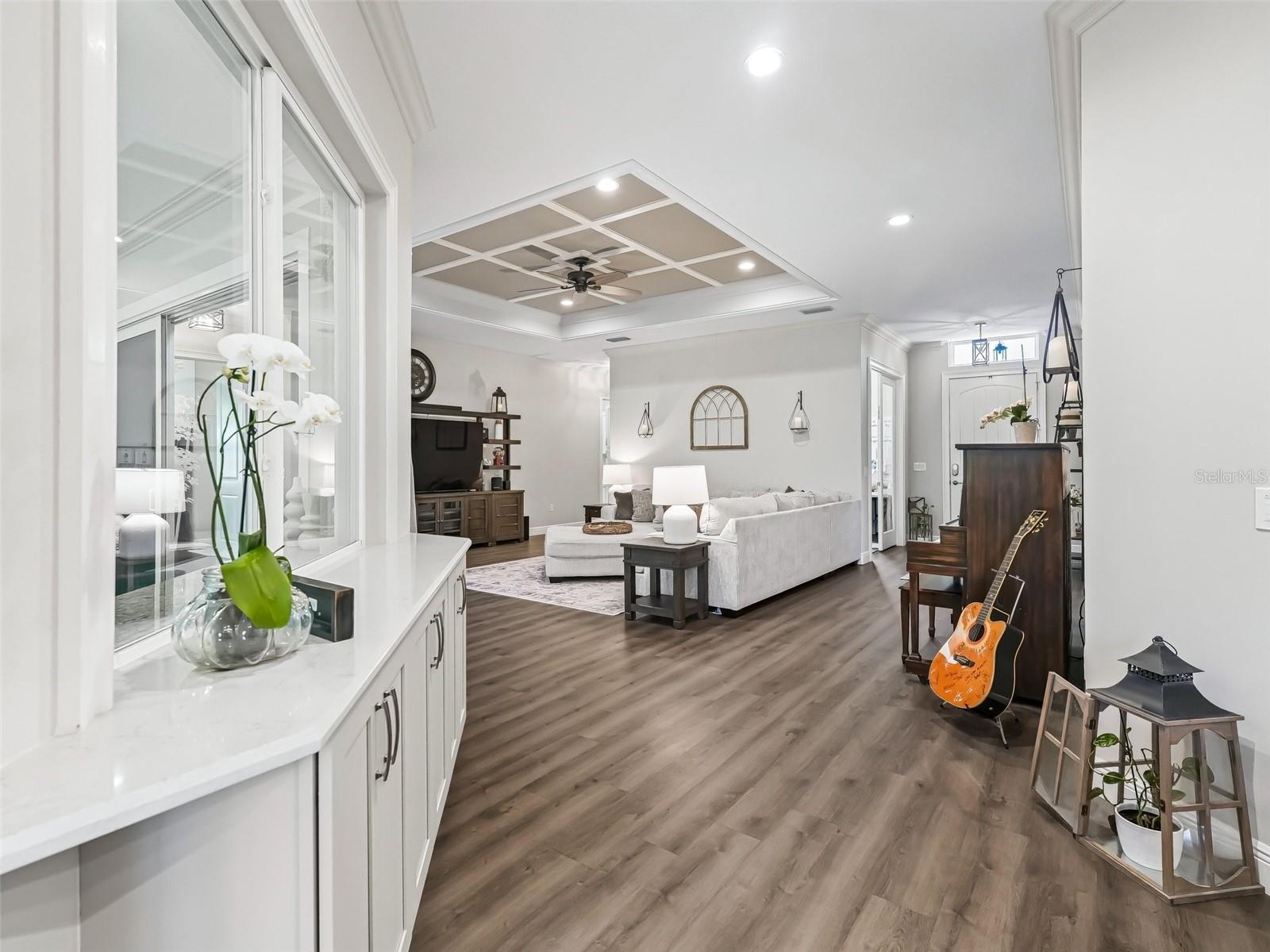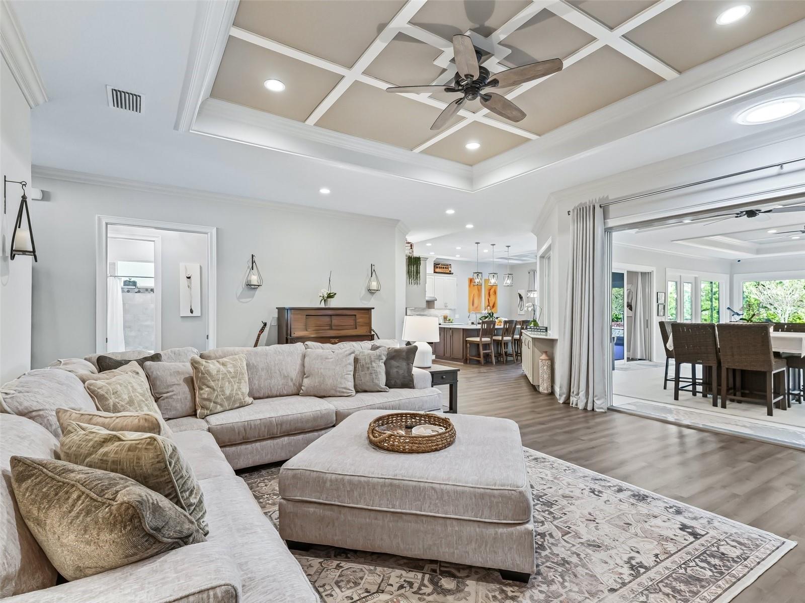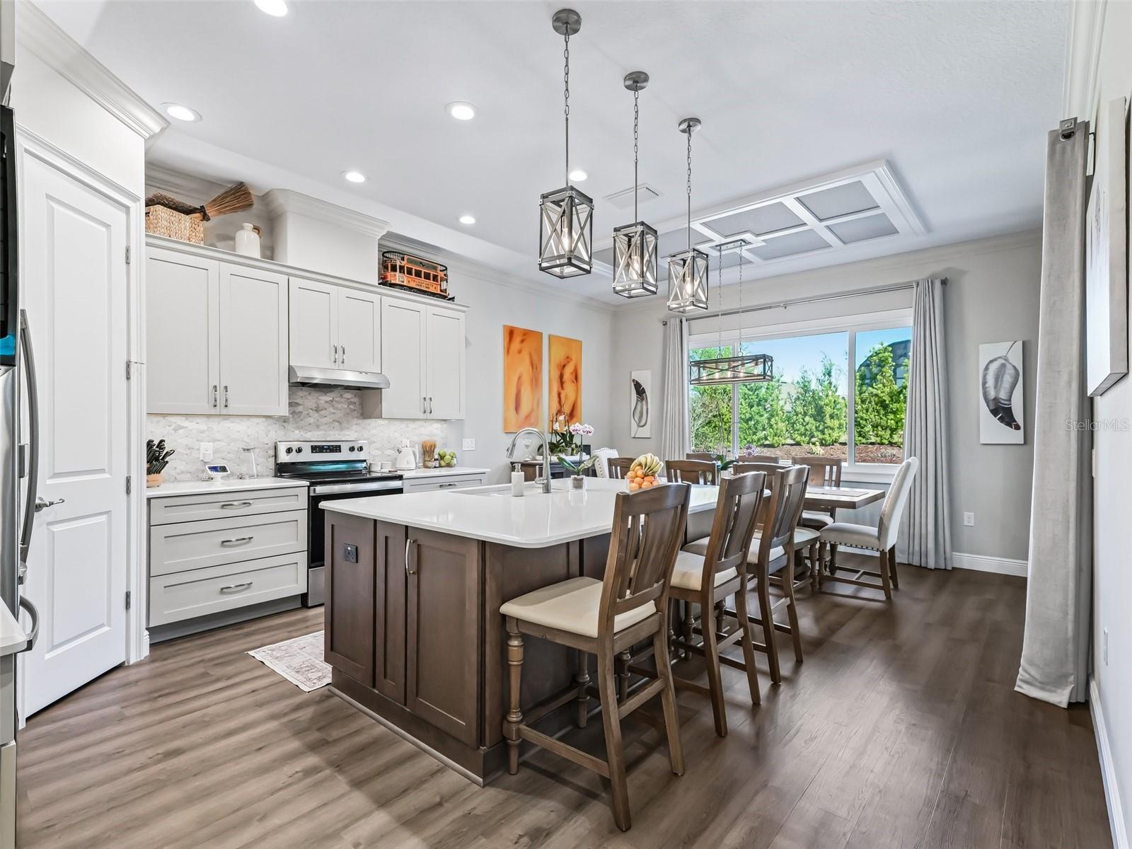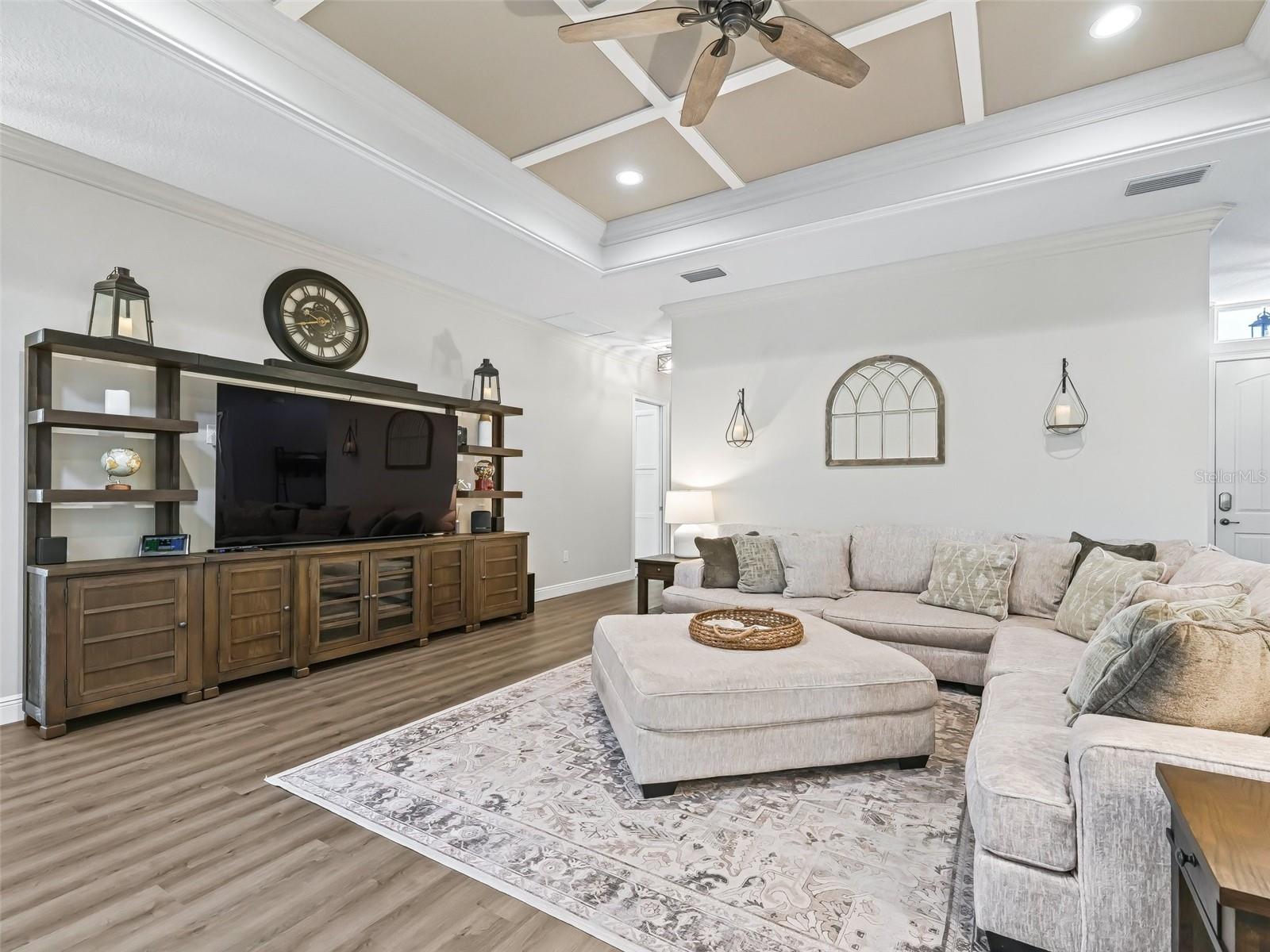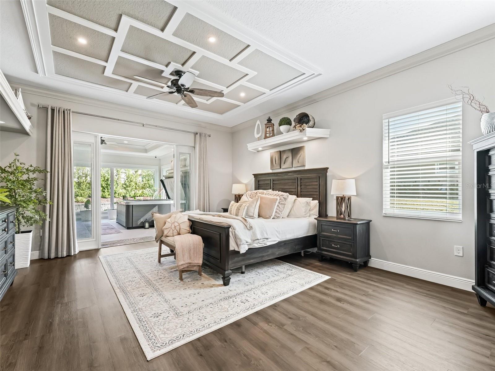 Experience the Florida Lifestyle of Your Dreams in Ultimate Luxury! Welcome to your exquisite custom home, beautifully situated among the rolling hills of the prestigious Bella Vista, within the Harbor Hills Country Club. Revel in breathtaking sunset views while surrounded by an array of luxurious features and modern amenities. This opulent home boasts enduring block and stucco construction with decorative exterior corbels, lush landscaping, ambient low-voltage landscape lighting, and programmable recessed soffit lighting. The extended paver driveway & walkways lead you to an entrance adorned with insulated double-pane low-E windows, 8-foot tall interior doors, refined custom millwork, elegant crown and base moldings, cased window and door openings, rounded corners, designer lighting, and luxurious vinyl plank flooring, complemented by PICO wireless dimmer switches. The great room opens up into the 1,152 square foot entertainer's outdoor paradise, seamlessly merging indoor and outdoor spaces, perfect for enjoying the wonderful Florida climate year-round. The lanai is a true masterpiece, measuring 22' x 39', and features a custom-built entertainment center, a 42-inch gas fireplace, elegant wood-milled ceiling detail, and an abundance of 54-inch ceiling fans with recessed lights. The fully equipped stainless steel summer kitchen, complete with a 36-inch Charbroil 5-burner gas grill, granite countertops, a decorative vented hood, and under-counter refrigerators, invites you to host unforgettable gatherings. Experience unparalleled privacy with automated blinds, beautiful white ceramic tile, and a 120-gallon owned buried gas tank for the summer kitchen and fireplace. The generous two-car and golf cart garage is equipped with insulated garage doors, insulated ceiling, ample elevated storage platforms, pegboard, heavy-duty aluminum pull-down attic stairs, and epoxy-coated floor, complete with a service door with touch keypad and automatic sensor lighting, plus a mini split air conditioner. The home office exudes sophistication with full glass French doors, a 54-inch ceiling fan, and crown molding. Indulge your culinary skills in the meticulously designed gourmet kitchen that includes Quartz countertops, stone backsplash, an extensive island with additional storage, under and above cabinet lighting, built-in refrigerator, crown molding, double trash pull-out, large pots and pans drawers, built-in microwave, and a vented hood. Gather around the three barstools at the island or effortlessly serve from the buffet counter with cabinetry and a pass-through serving window to the lanai. Relax in the spacious owner's suite, enhanced with ambient lighting, individual nightstand lamps with switches conveniently placed near the bed, crown molding, and dual walk-in closets with custom built-ins and motion-activated lighting. The opulent owner's bathroom features double vanities with a linen closet, a dedicated dressing area, Quartz countertops, and an indulgently spacious walk-in shower with dual shower heads, benches, a private commode, and a pocket door leading to the well-appointed laundry room equipped with Quartz countertops and custom cabinetry. The pride of ownership is evident the moment you enter this exquisite custom home, enhanced by the addition of owned solar panels for a sustainable lifestyle. Call today to schedule your appointment and embrace the luxurious lifestyle you deserve!