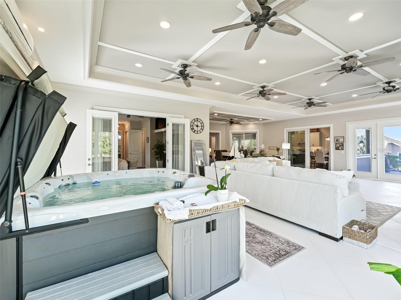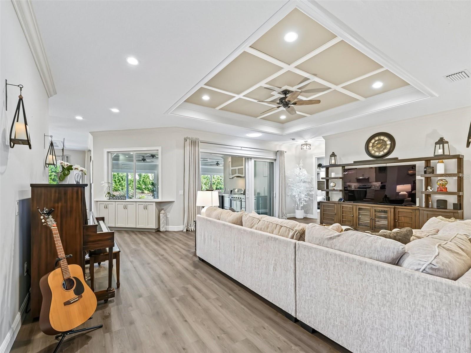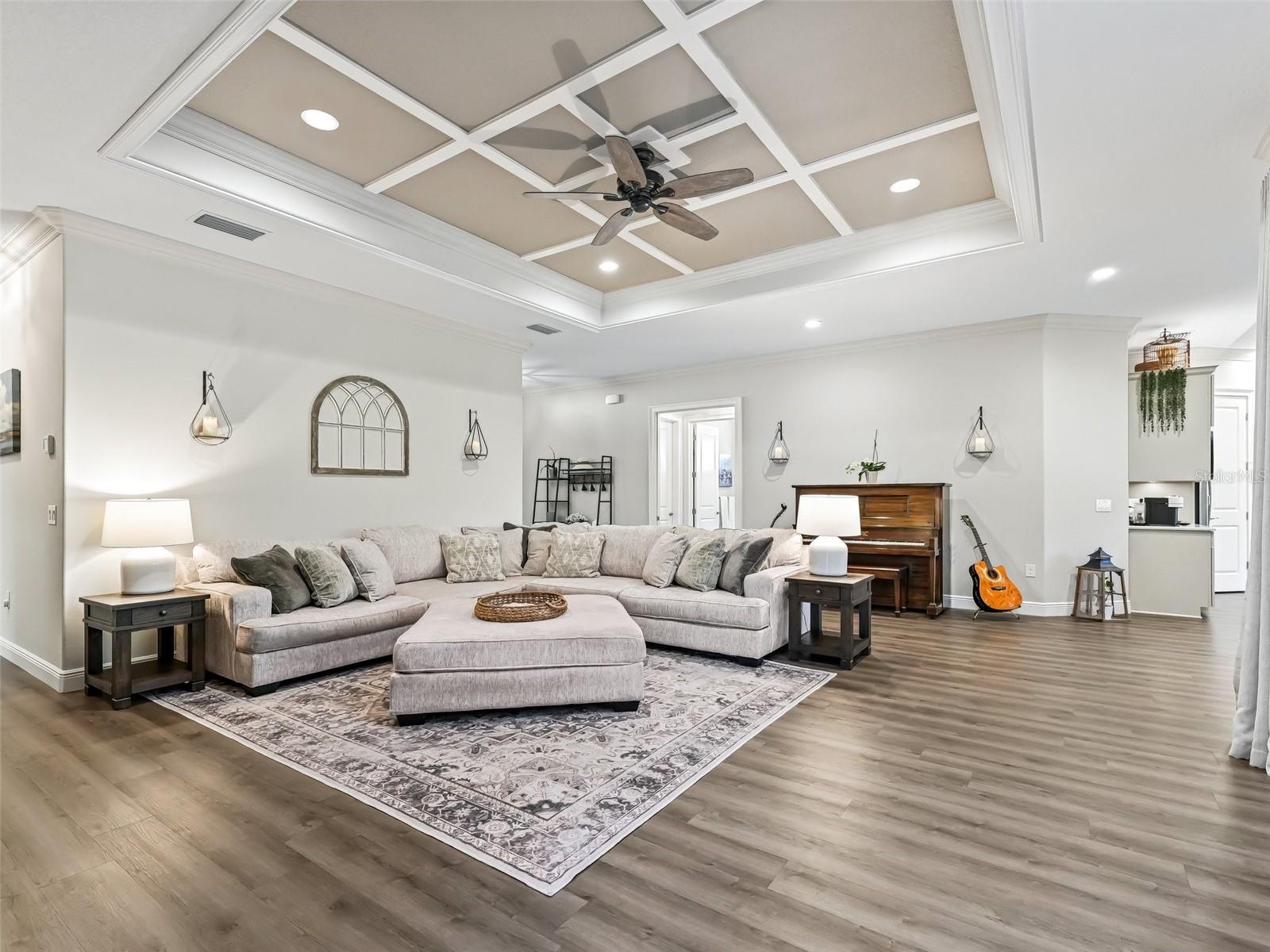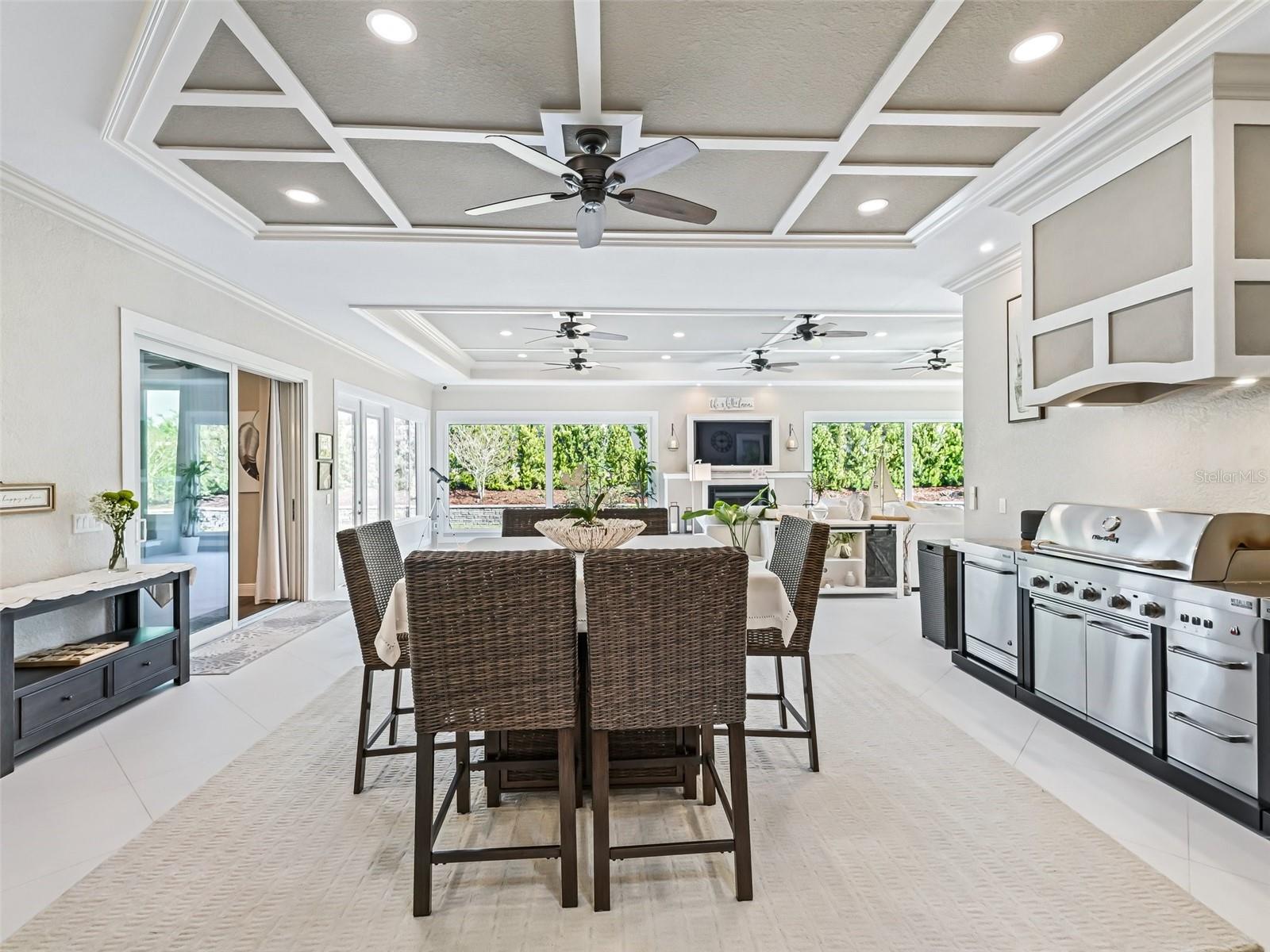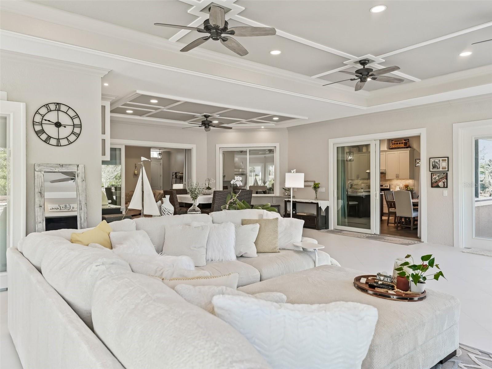 Experience the Florida Lifestyle of Your Dreams in Ultimate Luxury! Welcome to your exquisite custom home, beautifully situated among the rolling hills of the prestigious Bella Vista, within the Harbor Hills Country Club. Revel in breathtaking sunset views while surrounded by an array of luxurious features and modern amenities. This opulent home boasts enduring block and stucco construction with decorative exterior corbels, lush landscaping, ambient low-voltage landscape lighting, and programmable recessed soffit lighting. The extended paver driveway & walkways lead you to an entrance adorned with insulated double-pane low-E windows, 8-foot tall interior doors, refined custom millwork, elegant crown and base moldings, cased window and door openings, rounded corners, designer lighting, and luxurious vinyl plank flooring, complemented by PICO wireless dimmer switches. The great room opens up into the 1,152 square foot entertainer's outdoor paradise, seamlessly merging indoor and outdoor spaces, perfect for enjoying the wonderful Florida climate year-round. The lanai is a true masterpiece, measuring 22' x 39', and features a custom-built entertainment center, a 42-inch gas fireplace, elegant wood-milled ceiling detail, and an abundance of 54-inch ceiling fans with recessed lights. The fully equipped stainless steel summer kitchen, complete with a 36-inch Charbroil 5-burner gas grill, granite countertops, a decorative vented hood, and under-counter refrigerators, invites you to host unforgettable gatherings. Experience unparalleled privacy with automated blinds, beautiful white ceramic tile, and a 120-gallon owned buried gas tank for the summer kitchen and fireplace. The generous two-car and golf cart garage is equipped with insulated garage doors, insulated ceiling, ample elevated storage platforms, pegboard, heavy-duty aluminum pull-down attic stairs, and epoxy-coated floor, complete with a service door with touch keypad and automatic sensor lighting, plus a mini split air conditioner. The home office exudes sophistication with full glass French doors, a 54-inch ceiling fan, and crown molding. Indulge your culinary skills in the meticulously designed gourmet kitchen that includes Quartz countertops, stone backsplash, an extensive island with additional storage, under and above cabinet lighting, built-in refrigerator, crown molding, double trash pull-out, large pots and pans drawers, built-in microwave, and a vented hood. Gather around the three barstools at the island or effortlessly serve from the buffet counter with cabinetry and a pass-through serving window to the lanai. Relax in the spacious owner's suite, enhanced with ambient lighting, individual nightstand lamps with switches conveniently placed near the bed, crown molding, and dual walk-in closets with custom built-ins and motion-activated lighting. The opulent owner's bathroom features double vanities with a linen closet, a dedicated dressing area, Quartz countertops, and an indulgently spacious walk-in shower with dual shower heads, benches, a private commode, and a pocket door leading to the well-appointed laundry room equipped with Quartz countertops and custom cabinetry. The pride of ownership is evident the moment you enter this exquisite custom home, enhanced by the addition of owned solar panels for a sustainable lifestyle. Call today to schedule your appointment and embrace the luxurious lifestyle you deserve!
