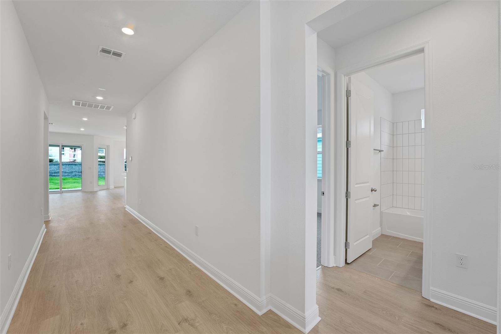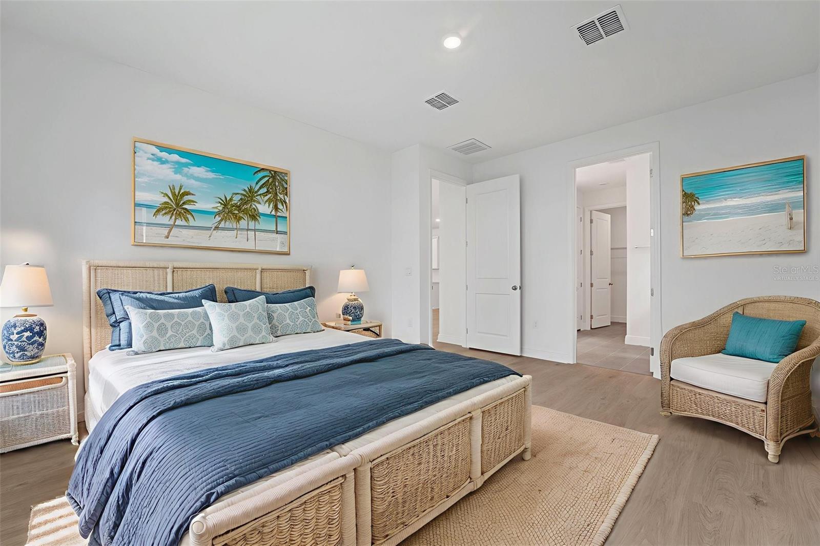 One or more photo(s) has been virtually staged. Charming Key West-Style Home in Gated Green Key Village! This spacious Fairfield floor plan features 3 bedrooms, 2 baths, and a 2-car garage. Enjoy an open-concept layout with upgraded laminate flooring, 8' doors, 5.25" baseboards, and a 9' sliding glass door leading to a covered lanai—perfect for indoor-outdoor living. The kitchen offers a central island with quartz countertops, walk-in pantry, and upgraded 42" stained Quill cabinets. The primary suite includes a generous walk-in closet and private bath. Additional highlights include a large laundry room and brick pavers on the driveway and walkway. Community Amenities: Gated entry, resort-style pool, pickleball, tennis, basketball, dog park, firepit with seating, picnic areas, and a community garden. Live the Florida lifestyle in this energy-efficient home located in sought-after Green Key Village!