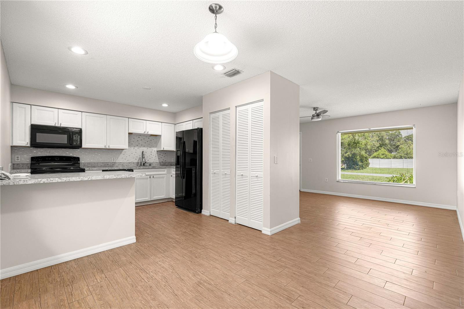 Welcome to 998 Hibiscus Street, Lady Lake, a beautifully remodeled home that is move-in ready. A brand new roof was installed in 8/2025 A new Goodman Air conditioning system was installed 7/2025. All the windows were replaced in 2024. All Kitchen appliances were replaced in 2025. When you walk thru the freshly painted home you will notice that all four fans have been replaced with light kits. The driveway has been widened to accommodate two cars for off street parking. The rear yard is a quarter of an acre and all fenced in for your pets to run around and enjoy the shade of the mature trees. As you are enjoying the patio and the backyard you will notice the quiet peacefulness of not having any rear neighbors under the large shade trees. A Klimaire mini split A/C unit has been added to the garage so could be an extra room if needed or a fourth bedroom. This home is conveniently located close to The Villages and all the shopping and entertainment for you to enjoy. This is a great home in a great location ready for a new owner. Call for a private showing before its gone.