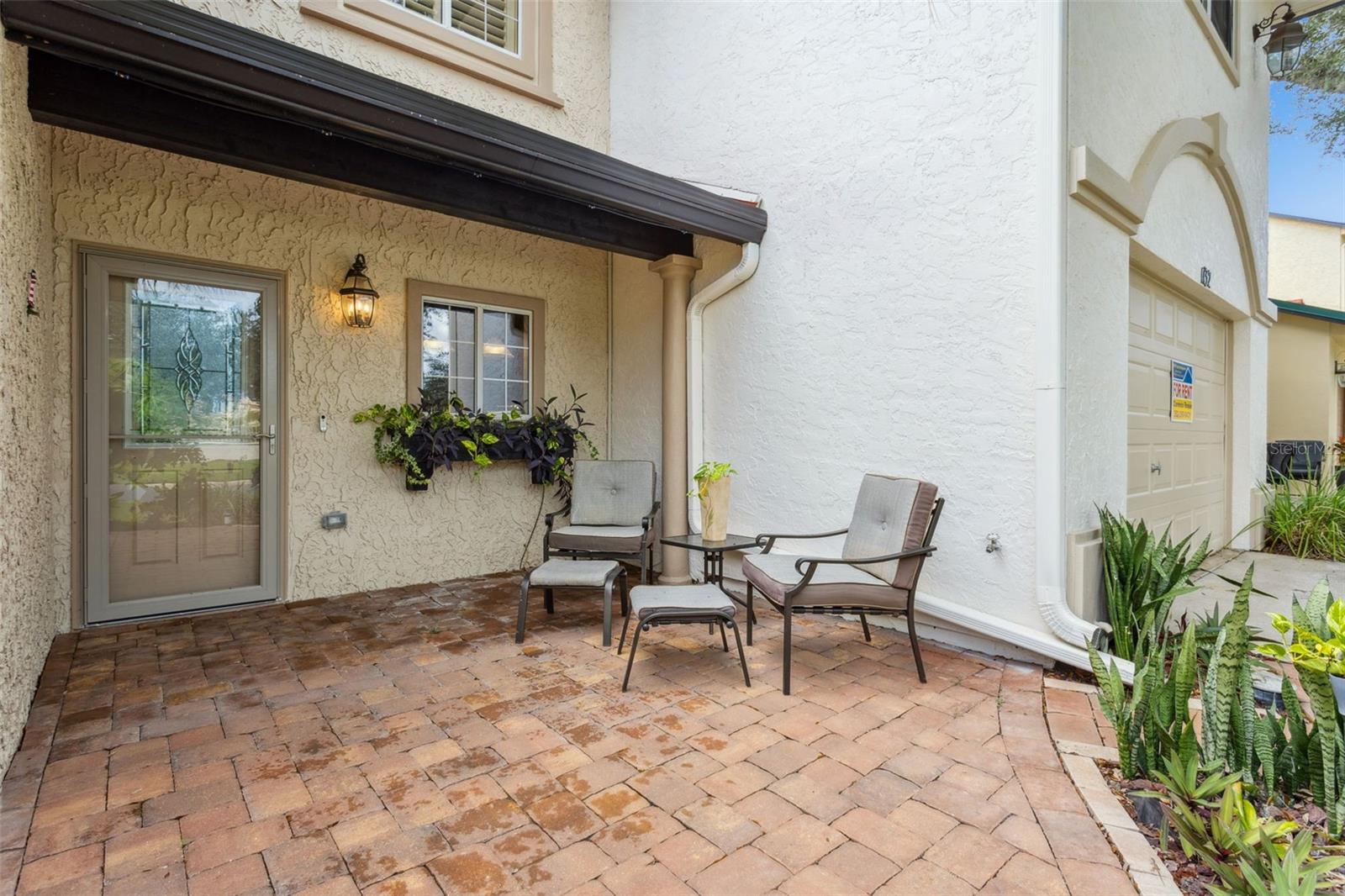 LOCATION LOCATION LOCATION!! NO BOND! WELL-MAINTAINED CONDO STEPS FROM SPANISH SPRINGS TOWN SQUARE AND THE LA HACIENDA RECREATION CENTER! Enjoy the ultimate in low-maintenance living in this beautifully maintained condo located just steps away from Spanish Springs Town Square and minutes from all the shopping and dining The Villages has to offer. The condo association takes care of the lawns and exterior maintenance, allowing you to relax and enjoy your surroundings. As you approach the front door, you're greeted by a charming pavered front patio, perfect for sipping your morning coffee or relaxing outdoors. Inside, the spacious kitchen features granite countertops, stainless steel appliances, and plenty of cabinet space. The primary bedroom suite, conveniently located on the first floor, easily accommodates a king-sized bed and a full furniture set. The primary bath offers a dual vanity and a large walk-in shower for added comfort and style. A half bathroom on the main level adds convenience for guests. Upstairs, you'll find a spacious guest bedroom, a full guest bath, and a versatile loft area ideal for a home office, entertainment room, or hobby space. The private back patio provides a second outdoor living area surrounded by a full privacy wall, perfect for a spa, grill area, or fire pit setup. New Roof 2025/ Exterior Paint 2025