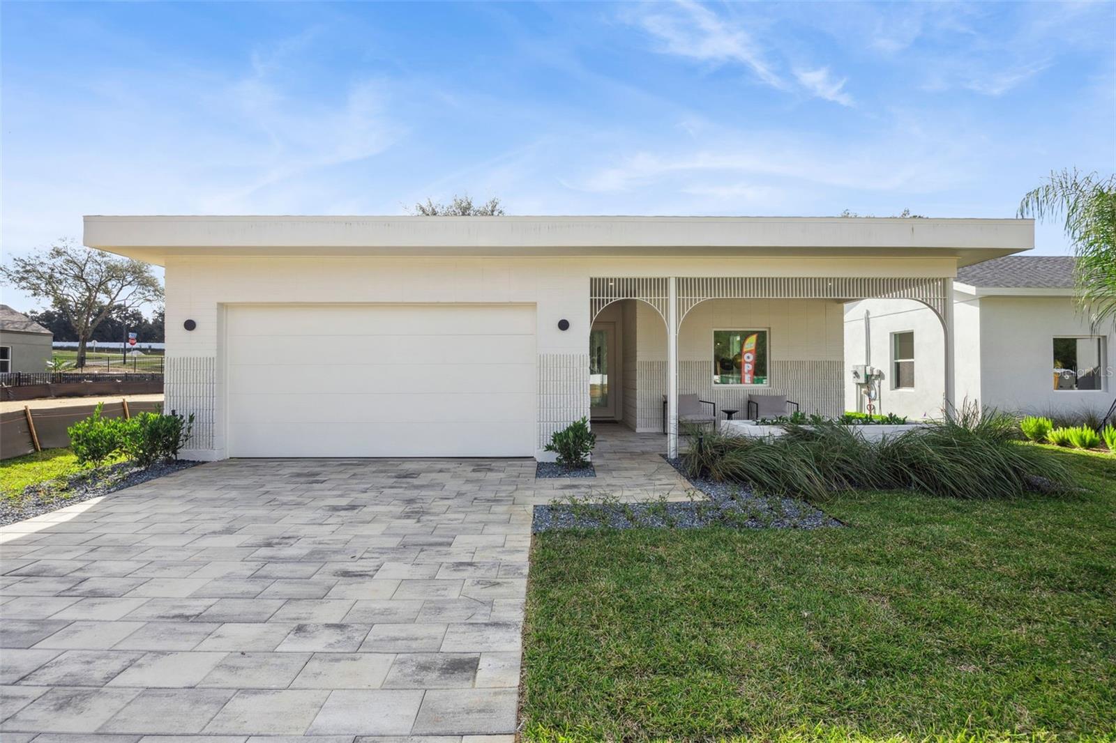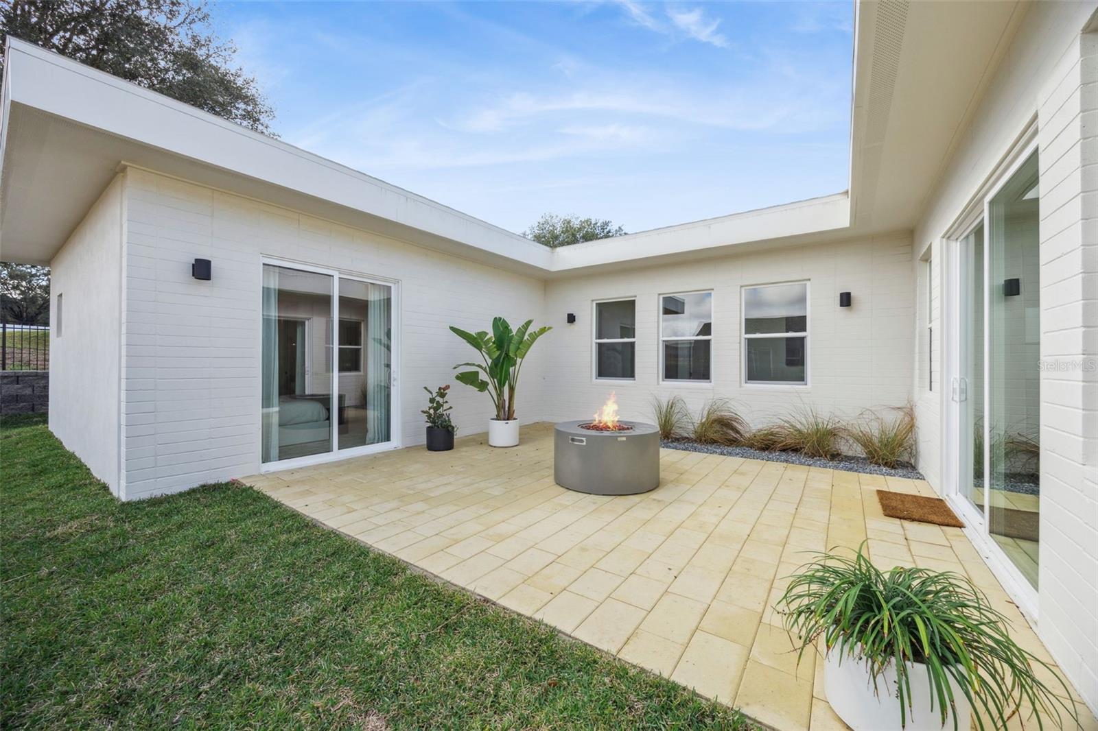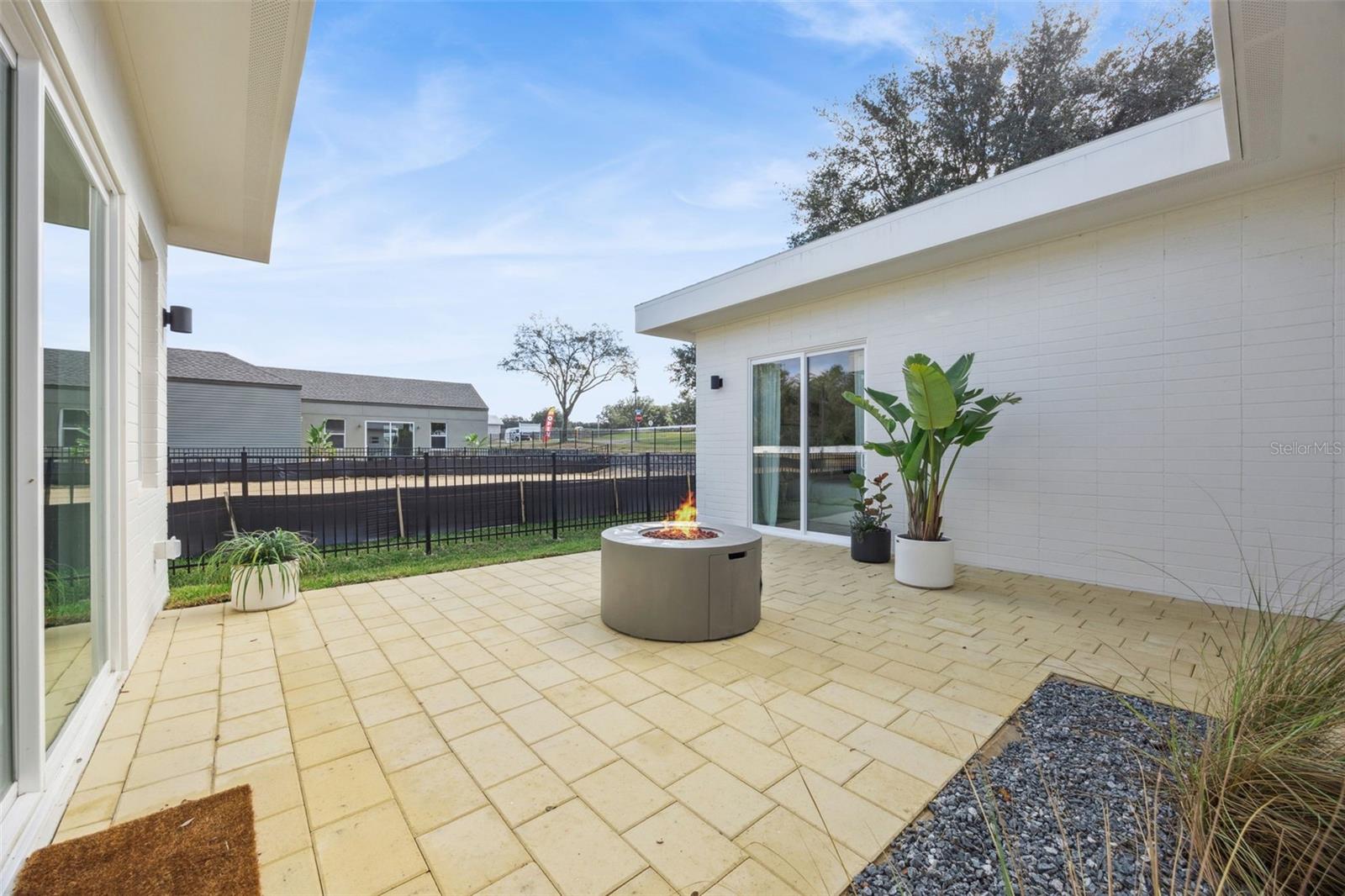 Completed Model home, move in ready, loaded with upgrades! This captivating single-story Cypress home presents a fresh, modern aesthetic and an effortlessly livable open layout. Its clean architectural lines and welcoming presence are immediately evident from the curb, featuring a striking contemporary facade with a two-car garage and a beautifully detailed covered entryway. Step inside to an interior bathed in natural light, where the smart, flowing layout connects the open-concept living, dining, and kitchen areas. The living room is an inviting space with sleek, light-colored flooring, a modern linear fireplace flanked by built-in shelving, and a massive sliding glass door that seamlessly extends the living space to the outdoors. The gourmet kitchen boasts light, flat-panel cabinetry, a generous island with seating, stainless steel appliances, and is perfectly positioned to serve the adjacent dining area. Just beyond the main living spaces, a private central courtyard offers a beautiful outdoor retreat, tiled and enclosed by the home's structure. The luxurious primary bathroom features a double vanity with ample storage, contemporary black fixtures, and a spacious glass-enclosed shower with stylish tiling. The secondary bathroom maintains the home's modern, sophisticated design with a double vanity and sleek black fixtures. Outside, the home is part of a dynamic new community. Boulevard Oaks is designed for connection and activity, centered around The Oasis clubhouse with inviting lounge areas and a resort-style swimming pool. Expansive greenspaces, walking trails, and pickleball courts offer residents numerous options for an active outdoor lifestyle, all nestled behind a welcoming, oak tree-lined boulevard.