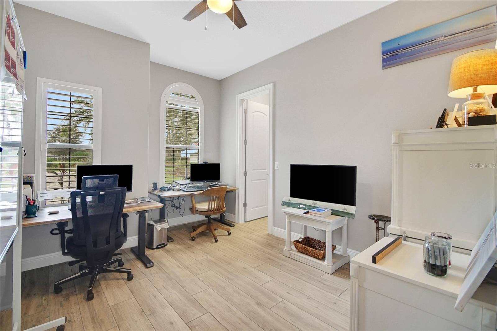 Experience life to the fullest in this 4 bedroom / 3 full bath home in Harbor Hills, a gated golf community nestled on the shores of Lake Griffin on the sought after Harris Chain of Lakes. Your new home has stunning views of the golf course, along with two rustic ponds, seen through sliding glass pocket doors across the back of the great room. Looking out, you see a salt chlorinated pool w/waterfall, a rustic stone horizontal gas fireplace and over 1,000 sq. ft. of covered/screened lanai. The house was built in 2018, however underwent an executive remodel in 2022 including: A true cook’s kitchen featuring Cambria Quartz countertops, an oversized island for bread and pasta making, double KitchenAid convection ovens, GE Profile gas cooktop with high flow vent hood, fully custom pantry and storage closet, and upgraded lighting to set any mood desired. The floors have been upgraded to Wood Plank Porcelain Tile throughout, the lighting elevated from builder grade, all closets are now custom, and the windows are covered with plantation shutters. The Owner's Bedroom features an En Suite w/walk through Roman shower including an added rain head, two vanities and a large soaking tub, as well as two custom built closets. Another added bonus is the whole-house purifier. The remaining three bedrooms are well sized with large upgraded custom closets and two of the bedrooms have en suites.The exterior of the home has been enhanced as well. As you pull into the expanded custom paver driveway with 18-foot sylvestris palms on either side, you will notice that the yard and landscaping accentuate the home's beauty. Podocarpus & Viburnum shrubs surround the home, giving a warm sense of privacy adding to the décor. A lanai garden enclosed by a wrought iron fence has been built on the left side of the home and fruit trees line the back. This one of a kind home is located in Harbor Hills, which is one of the most sought after Exclusive, Gated Golf & Waterfront Communities that is just minutes to The Villages, shopping, restaurants, doctors, medical facilities, grocery stores and more! Call today for your private showing and also be sure to watch the video!
