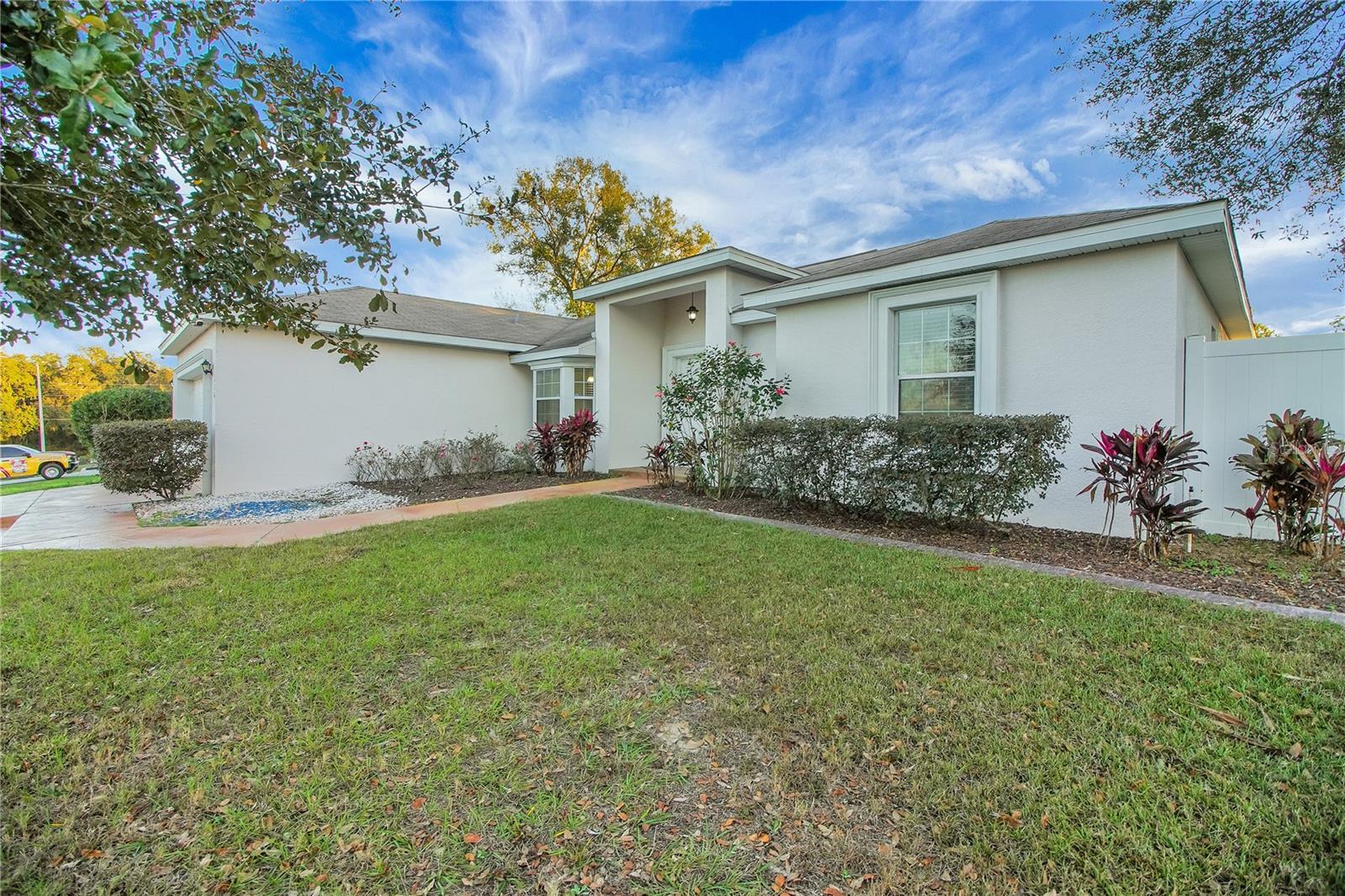 Welcome to this beautiful 2015 Built 3 bedroom 2 bathroom fenced home in Lady Lake on .33 acre lot. As you enter you will notice the double door entry, vaulted ceiling, beautiful tile floors, and open floor plan. The eat-in kitchen has elegant dark wood cabinets, sleek black appliances, breakfast bar, and plenty of counter space. The primary is spacious with a walk-in closet and has an en suite bathroom with double sinks, a walk-in shower, and soaking tub. The fully fenced backyard is perfect for pets, cookouts and entertaining. The HVAC, roof, and water heater were installed in 2015. The stove and microwave are new as of 2026. Conveniently located just minutes from The Villages, shopping, restaurants, grocery stores and medical offices, this place has it all!