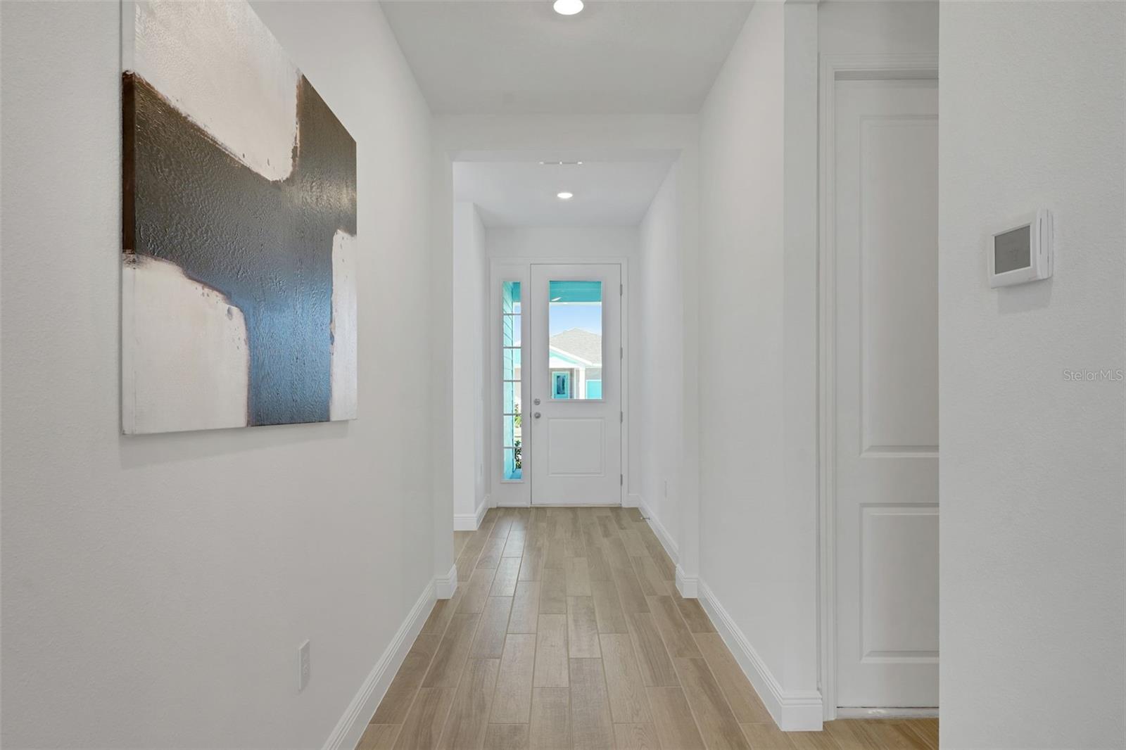 One or more photo(s) has been virtually staged. This Key West Style Lexington Plan is a roomy 3 Bedroom 2 Bath with a Tandem Garage to allow extra space for lawn equipment, a golf cart, or a 3rd car! Open Concept Kitchen/Living/Dining area with 5.25 inch baseboards, 8ft doors, and a beautiful 8' Slider leading to the Covered Lanai. The kitchen has a Center Island with Quartz countertops and upgraded 42" Linen Cabinets. All living areas have upgraded Plank Tile Flooring. Master Suite complete with an oversized Walk-in Closet. Spacious Laundry Room. Brick Pavers on the Drive and Walkway, and the Key West styled exterior give it the special touch!