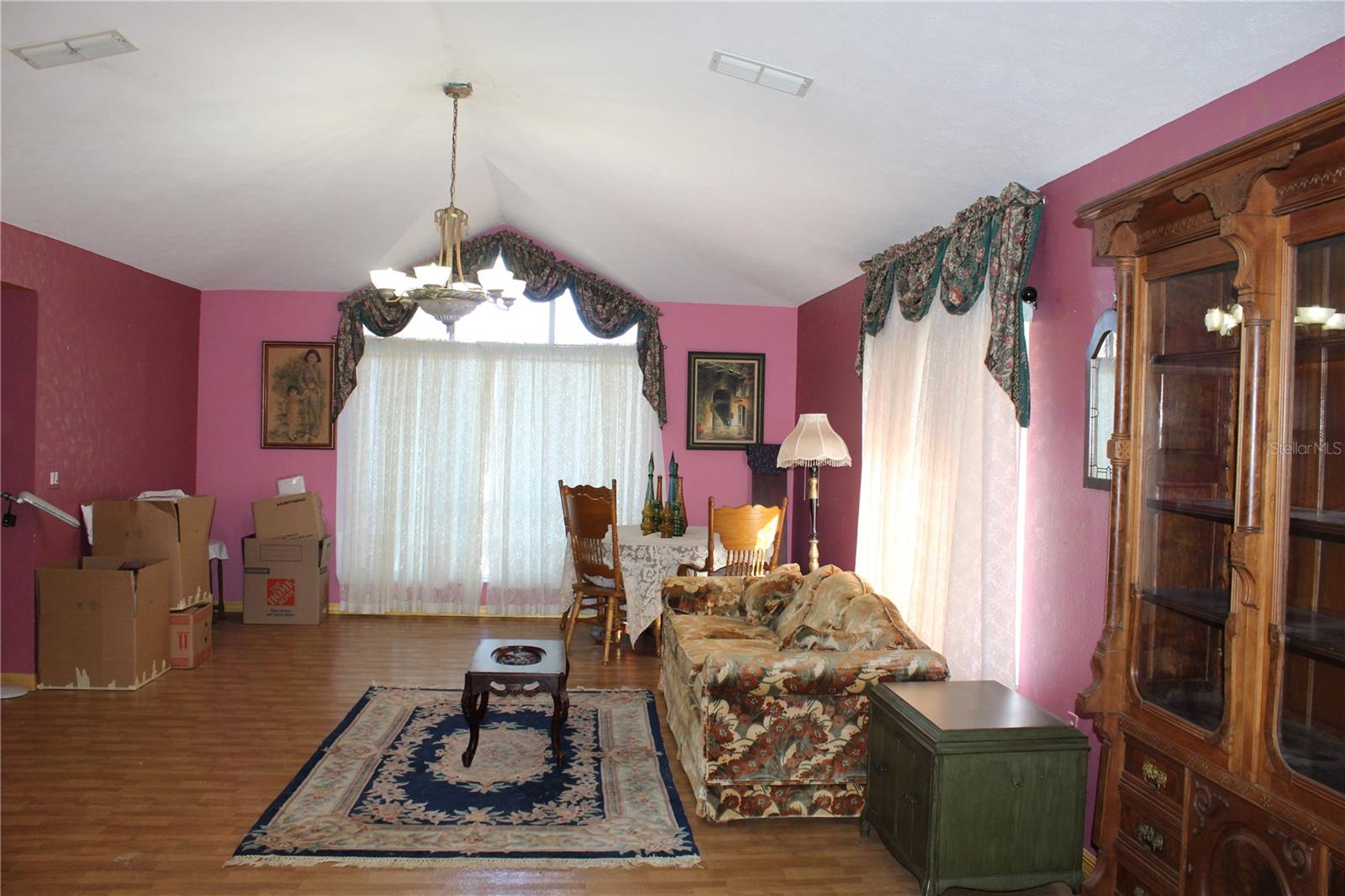 This unique home location in Lady Lake sits on a double lot with total privacy and access to a canal leading to Lake Griffin via the shared ownership boat slip. Located in a small community adjacent to Lake Griffin, you can enjoy the beauty of nature and fishing all year. This home is well maintained and updated by its current owner, this home has 3 bedrooms, 2 baths, a 2-car garage and a playhouse. The kitchen features wood cabinets with lots of storage space. The living room features a beautiful privacy wall with fireplace that is conveniently positioned to access the entire living area. The dining room gives access to the rear patio that hosts a built pergola. Septic recently pumped and serviced, well pump recently serviced and roof installed 2025. Schedule your appointment today this will not last. "PLEASE NOTE THE BROWN AND THE WHITE STORAGE UNITS DO NOT CONVEY"