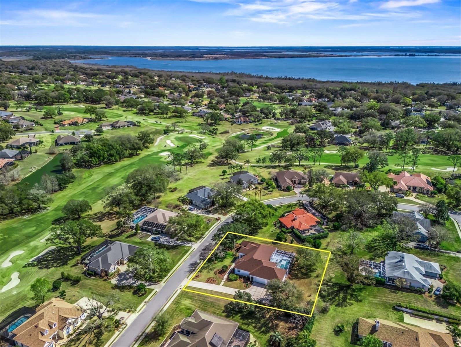 Welcome to Harbor Hills — an exclusively gated golf, tennis, and boating community nestled on the shores of Lake Griffin, offering some of the finest views in all of Central Florida. This thoughtfully designed concrete block and stucco home features 3 bedrooms, a large office/den, and 3 full baths, all set on an elevated lot with a side-entry 3-car garage. Step through the double entry doors into a bright, open layout with 10' ceilings and tile flooring throughout. The great room, dining room, kitchen, and primary bedroom all enjoy beautiful views and direct access to the screened lanai and private pool/spa, surrounded by lush trees and landscaping. The living room centers around a propane gas fireplace, perfect for cozy evenings. The spacious primary suite includes a walk-in closet with direct bath access and a generous ensuite. Secondary bedrooms are large with designer closet makeovers, and the baths are equally well-appointed. Topped with a brand new roof and offered with no bonds to pay, this home checks every box in one of Central Florida's most sought-after multi-generational communities.