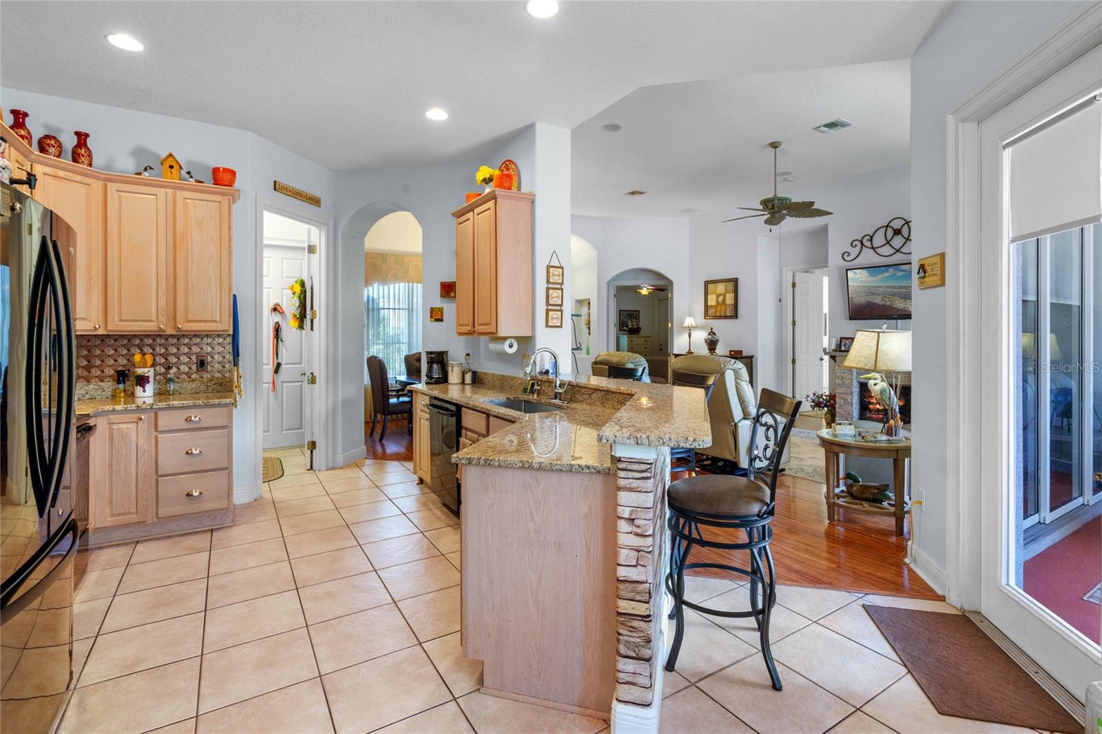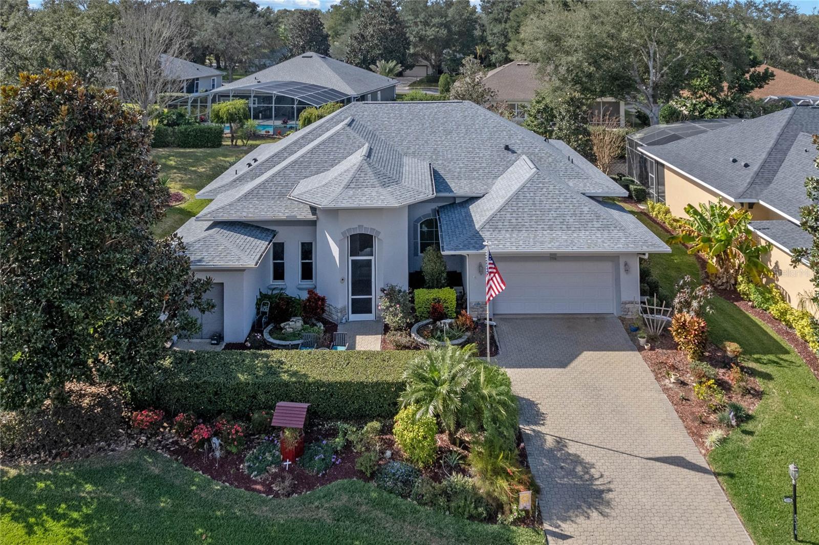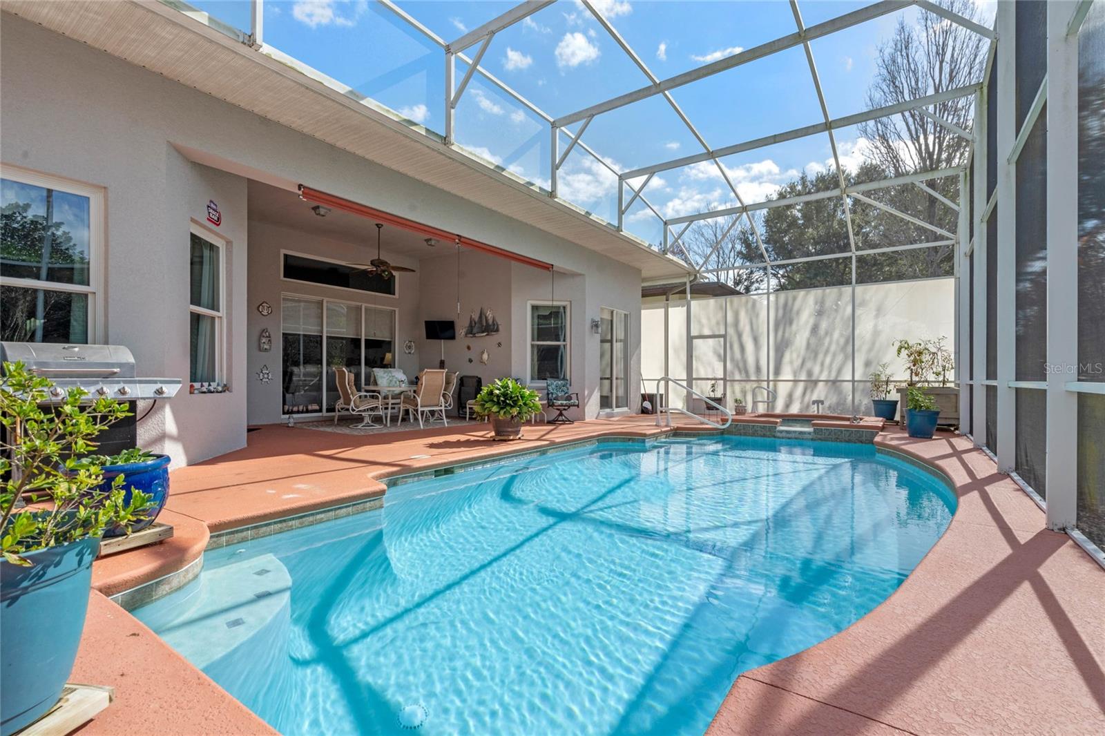 PRICE CORRECTION What an Amazing 3 bedroom 2 bathroom plus den POOL HOME located in the beautiful gated community at the Groves of Harbor Hills. This home will not disappoint. As you drive up to the home you will be greeted by the mature landscaping, brick pavers & walkway leading to the 2 CAR + GOLF CART Garage & SCREENED & COVERED Front Porch! Upon entering the home you will see 14 inch ceilings , open floor plan, exquisite wood laminate floors, triple door sliders that lead directly into a private backyard oasis that has a heated pool, hot tub, sit in area with tv, screen enclosure and a Built-In BAR w/ Fridge, GAS Cooktop, Grill Space.The spacious kitchen boasts new GRANITE countertops, new sink & newer appliances , Breakfast bar, Eat-In Space & Adjacent Dining Room. The split floor plan features two guest bedrooms w/ adjacent bathroom featuring newer tiled shower/tub combo & comfort height vanity. Additionally there is a DEN/OFFICE/LIBRARY w/ Wood Laminate Flooring . The Owner's Suite which is on the opposite side of home next to den will not disappoint it has a private entrance via sliding glass doors to the pool /backyard area, 2 separate closets, and its own private bathroom that features a walk in shower, deep tub,& 2 vanities POOL FURNITURE , Fireplace & all TV's convey except for the one in the living room. Additional Features: SURROUND SOUND Inside & Out, Buried 500 Gal Propane Tank for Pool Heater, Indoor Laundry Room, 14 inch Tall Ceilings & 8ft Doors Throughout, Water Softener, pull down attic door with ladder, small workshop in golf cart garage, Irrigation System & Extra Fridge/Freezer in Garage! NEW ROOF 2023, ANDERSON COMPOSITE IMPACT RESISTANT WINDOWS THROUGHOUT INSTALLED 2019 . Buyer can join Harbor Hills country club,, 3 levels Elite Social $190.00 Elite Social with Tennis $210.00 and Elite social with Golf $565.00 ..These are by the month. Please note it is buyer's responsibility to verify all information provided .