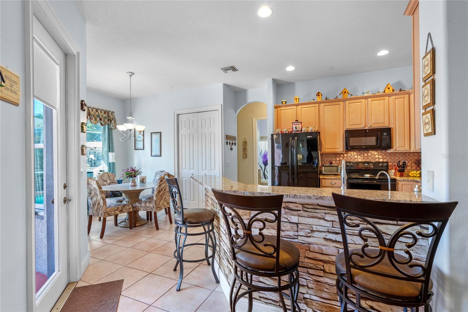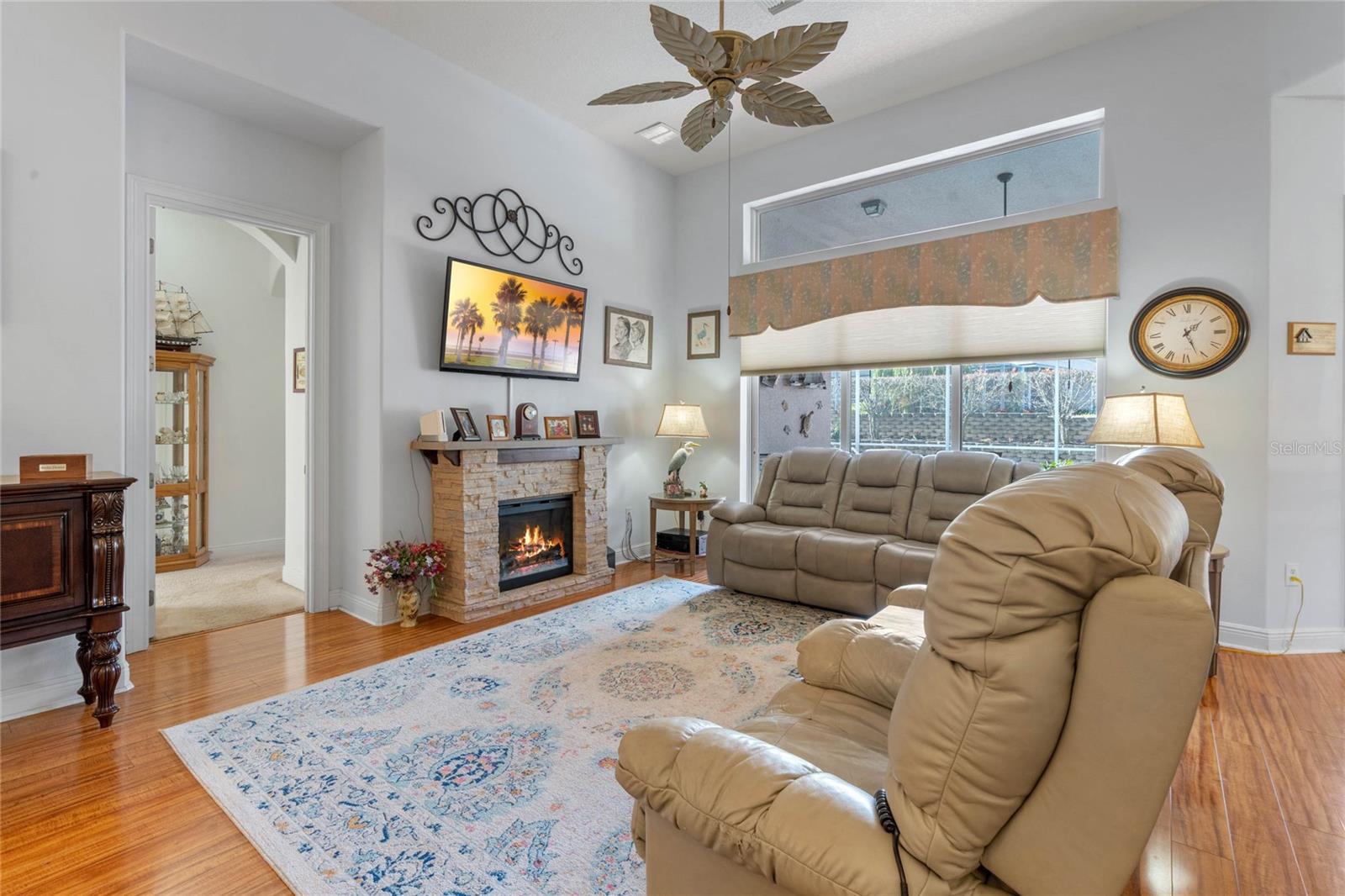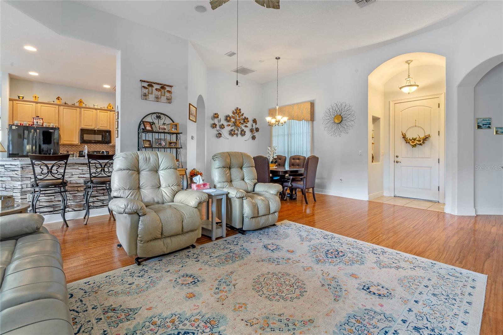 PRICE CORRECTION What an Amazing 3 bedroom 2 bathroom plus den POOL HOME located in the beautiful gated community at the Groves of Harbor Hills. This home will not disappoint. As you drive up to the home you will be greeted by the mature landscaping, brick pavers & walkway leading to the 2 CAR + GOLF CART Garage & SCREENED & COVERED Front Porch! Upon entering the home you will see 14 inch ceilings , open floor plan, exquisite wood laminate floors, triple door sliders that lead directly into a private backyard oasis that has a heated pool, hot tub, sit in area with tv, screen enclosure and a Built-In BAR w/ Fridge, GAS Cooktop, Grill Space.The spacious kitchen boasts new GRANITE countertops, new sink & newer appliances , Breakfast bar, Eat-In Space & Adjacent Dining Room. The split floor plan features two guest bedrooms w/ adjacent bathroom featuring newer tiled shower/tub combo & comfort height vanity. Additionally there is a DEN/OFFICE/LIBRARY w/ Wood Laminate Flooring . The Owner's Suite which is on the opposite side of home next to den will not disappoint it has a private entrance via sliding glass doors to the pool /backyard area, 2 separate closets, and its own private bathroom that features a walk in shower, deep tub,& 2 vanities POOL FURNITURE , Fireplace & all TV's convey except for the one in the living room. Additional Features: SURROUND SOUND Inside & Out, Buried 500 Gal Propane Tank for Pool Heater, Indoor Laundry Room, 14 inch Tall Ceilings & 8ft Doors Throughout, Water Softener, pull down attic door with ladder, small workshop in golf cart garage, Irrigation System & Extra Fridge/Freezer in Garage! NEW ROOF 2023, ANDERSON COMPOSITE IMPACT RESISTANT WINDOWS THROUGHOUT INSTALLED 2019 . Buyer can join Harbor Hills country club,, 3 levels Elite Social $190.00 Elite Social with Tennis $210.00 and Elite social with Golf $565.00 ..These are by the month. Please note it is buyer's responsibility to verify all information provided .