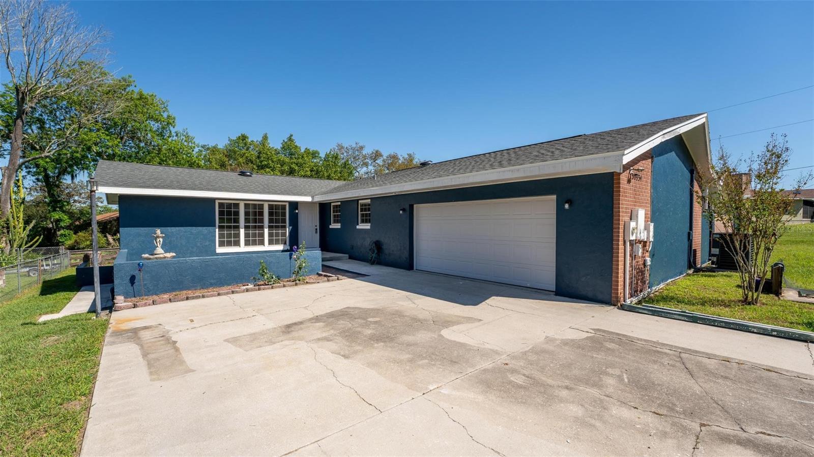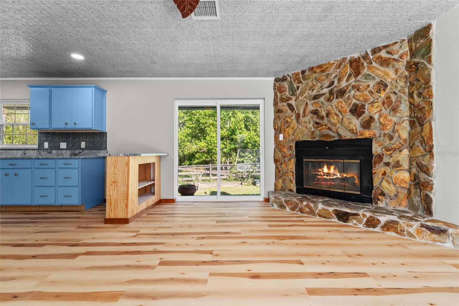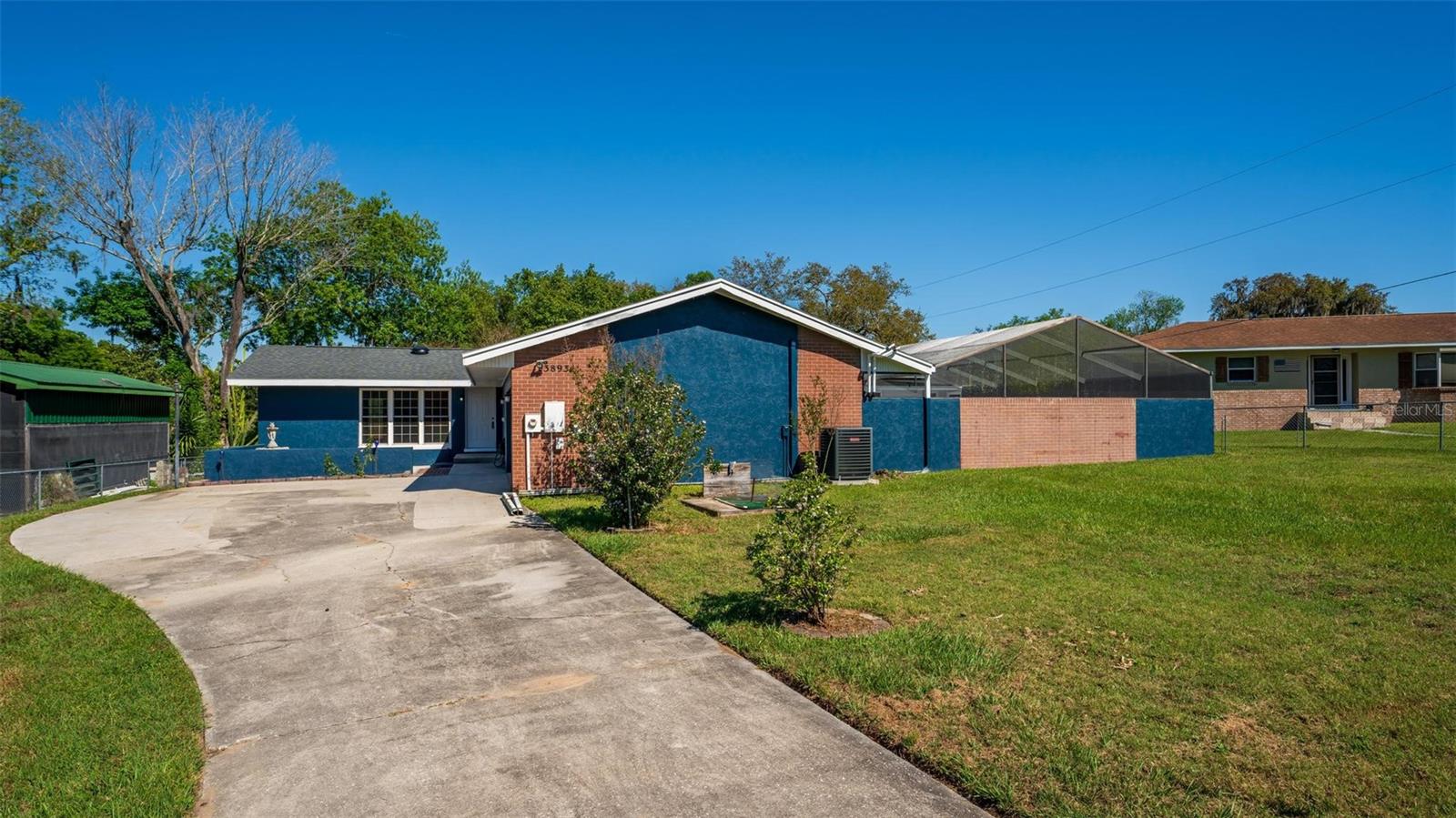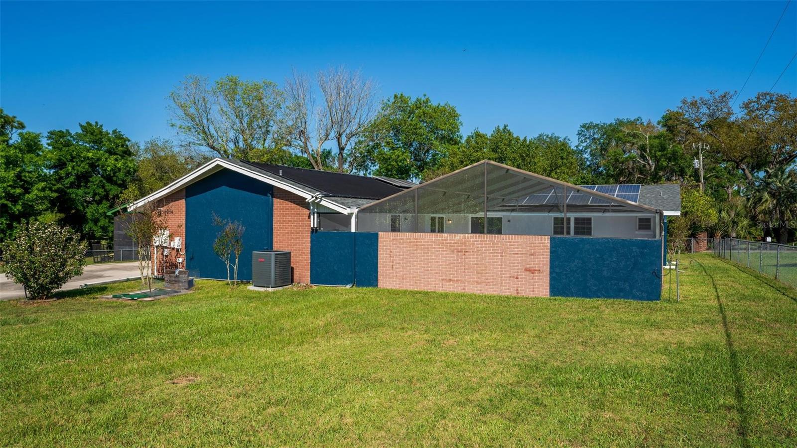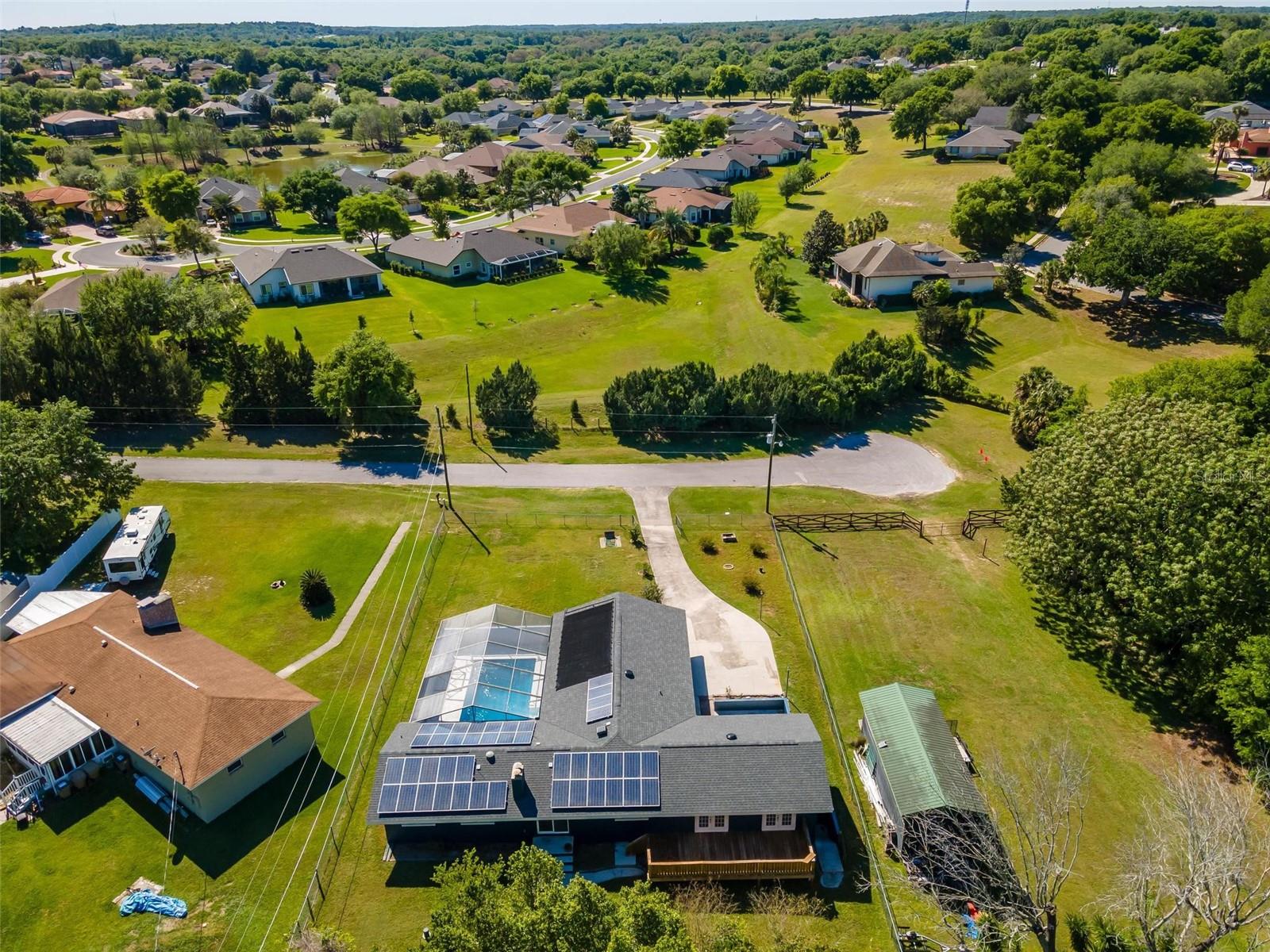 Charming 3 Bedroom 2 Bath Pool Home in Lady Lake. This property features a NEW ROOF in 2024 with 42 solar panels, New LVP flooring, PRICE REDUCTION! Updated sliding doors and windows, Huge Pool with New liner 2024, fresh paint inside and outside, plus a private community boat ramp just down the road. The property is a completely fenced in on the ~1/3 acre lot. The main area of the house spans ~2000 sf with a nice primary bedroom wing complete with direct access to the pool deck, it's own 2 sink bathroom, and a full size laundry room with sink and cabinets. The other 2 bedrooms share a hallway bathroom with the hall bathroom. The kitchen features granite, a built in oven in addition to your range for plenty of cooking options, opens to the family room which holds your stone face fireplace, and has access to the pool in the front and the deck in the back. Behind the kitchen is the dining area and then your large bonus living area. Downstairs you will find the unfinished basement complete with sump pump. Behind the house there is a lovely deck area for lounging running almost 2/3 of the length of the house.