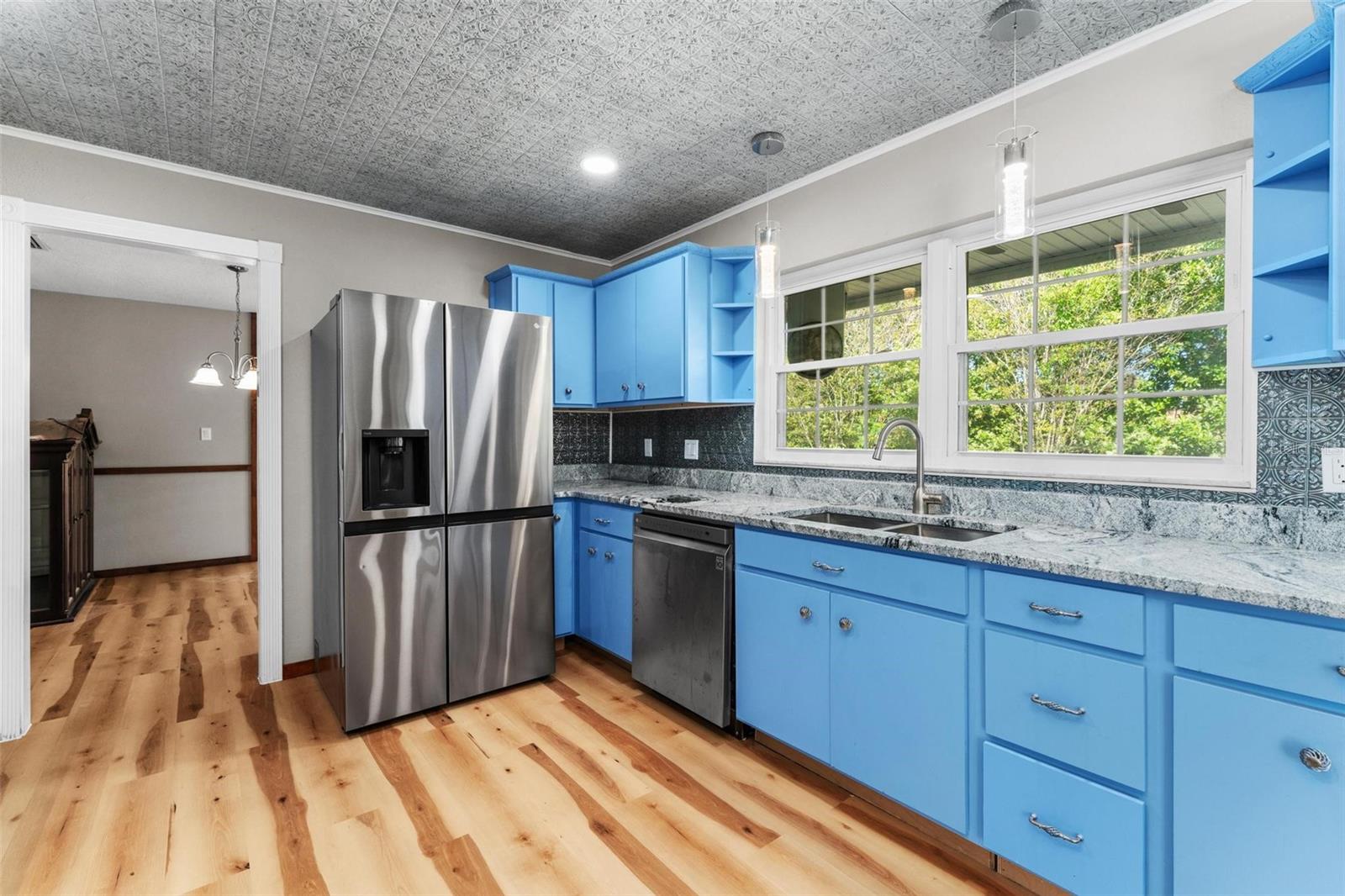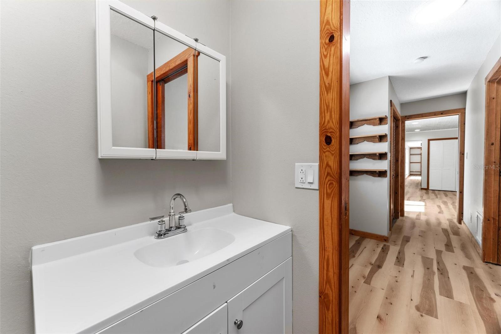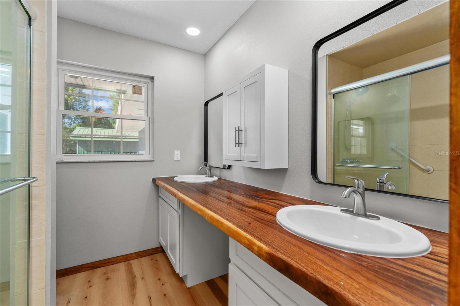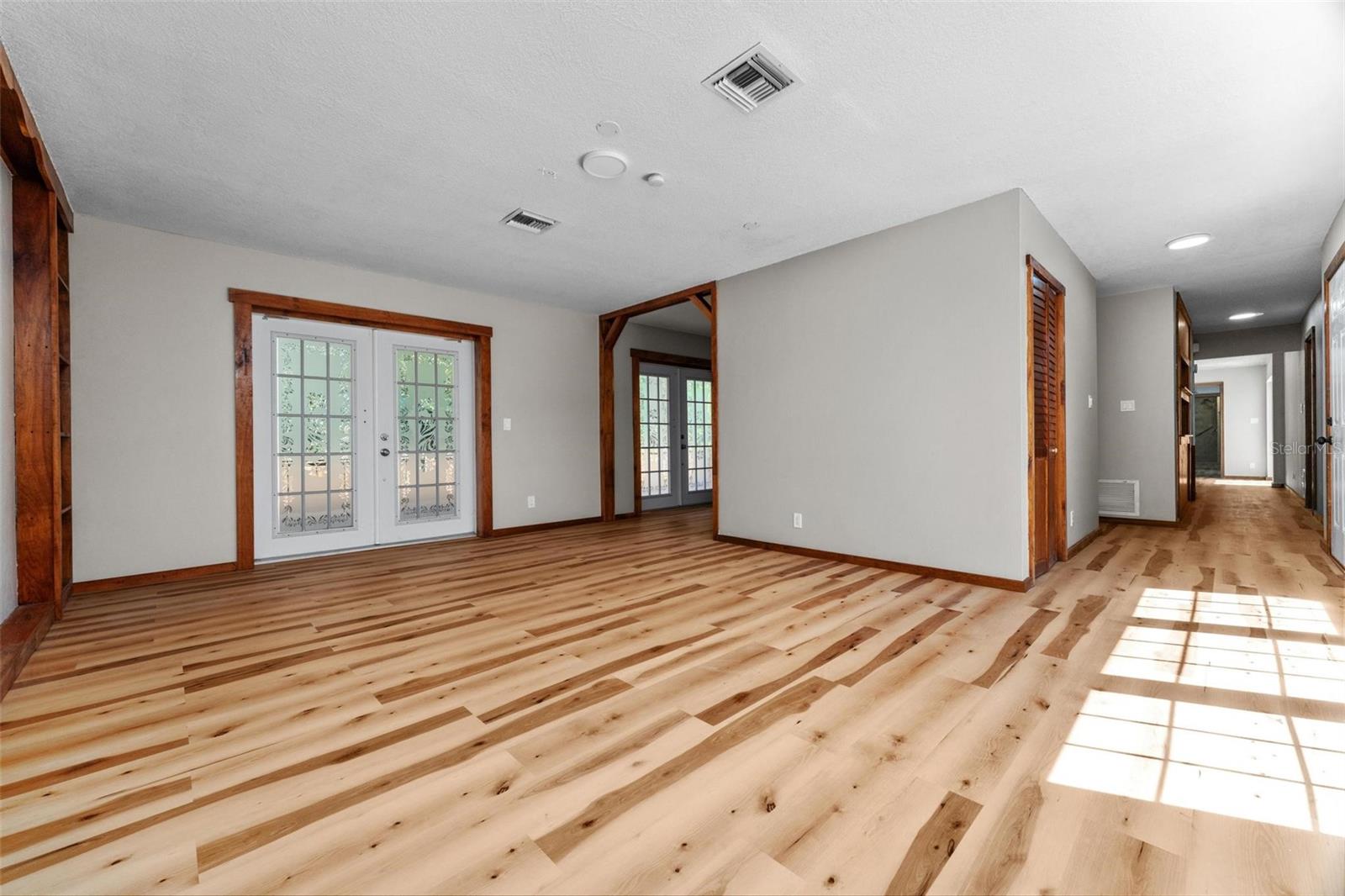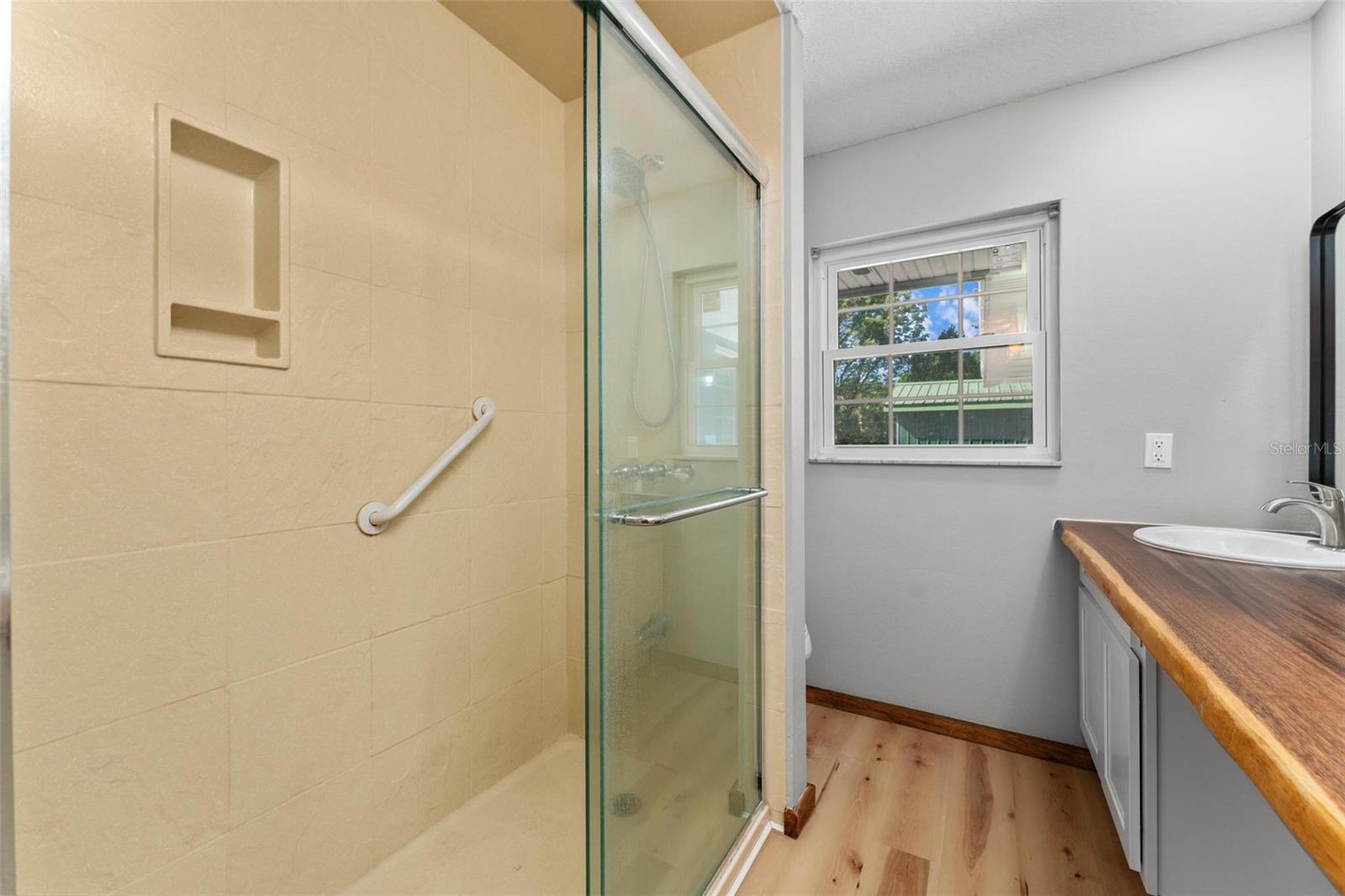 Charming 3 Bedroom 2 Bath Pool Home in Lady Lake. This property features a NEW ROOF in 2024 with 42 solar panels, New LVP flooring, PRICE REDUCTION! Updated sliding doors and windows, Huge Pool with New liner 2024, fresh paint inside and outside, plus a private community boat ramp just down the road. The property is a completely fenced in on the ~1/3 acre lot. The main area of the house spans ~2000 sf with a nice primary bedroom wing complete with direct access to the pool deck, it's own 2 sink bathroom, and a full size laundry room with sink and cabinets. The other 2 bedrooms share a hallway bathroom with the hall bathroom. The kitchen features granite, a built in oven in addition to your range for plenty of cooking options, opens to the family room which holds your stone face fireplace, and has access to the pool in the front and the deck in the back. Behind the kitchen is the dining area and then your large bonus living area. Downstairs you will find the unfinished basement complete with sump pump. Behind the house there is a lovely deck area for lounging running almost 2/3 of the length of the house.