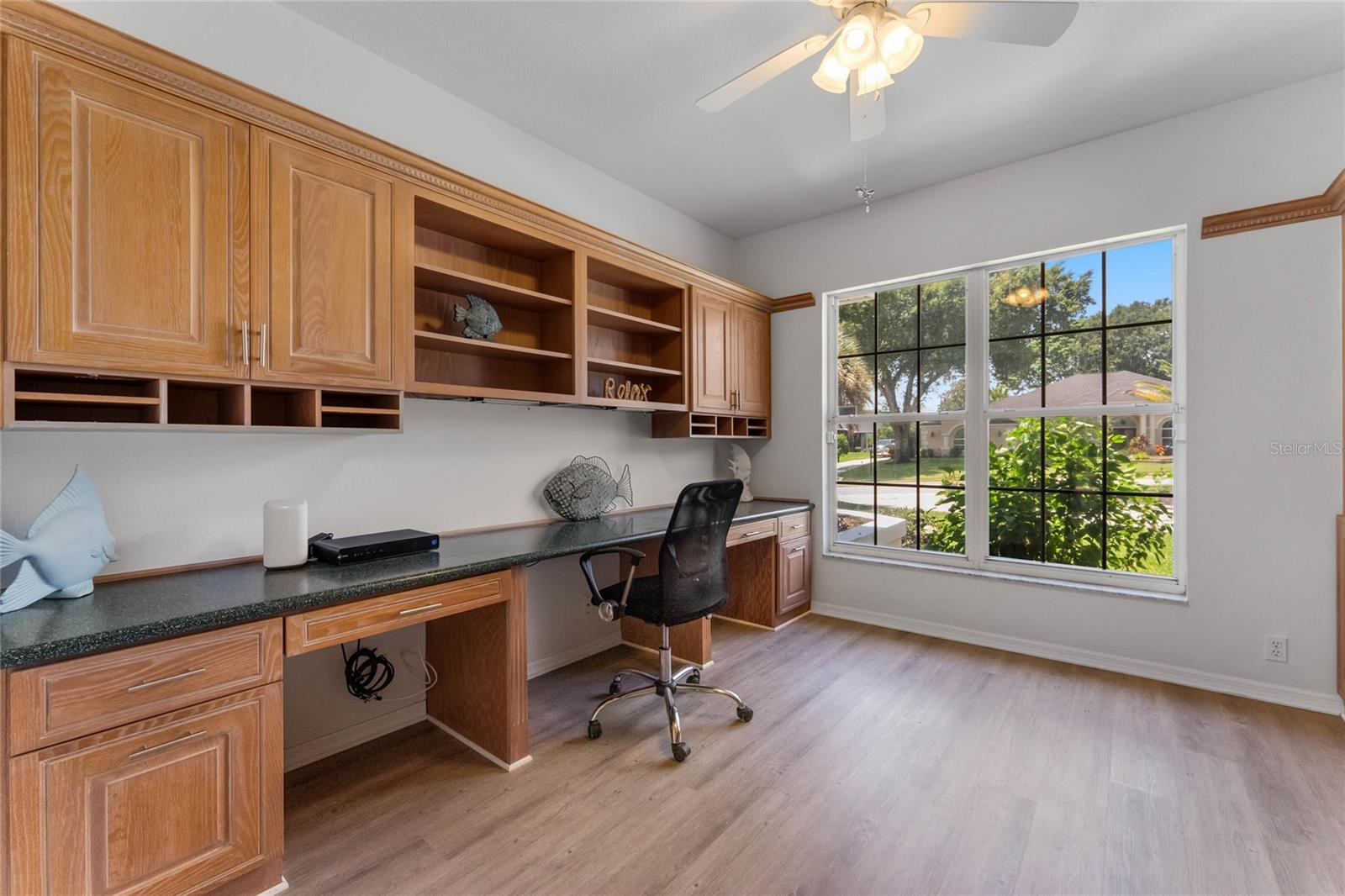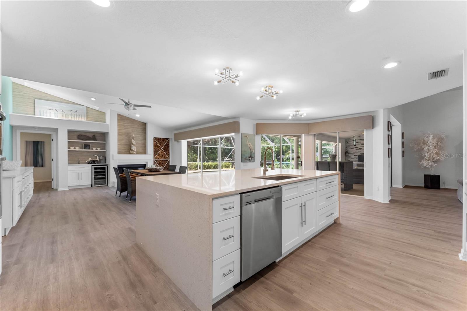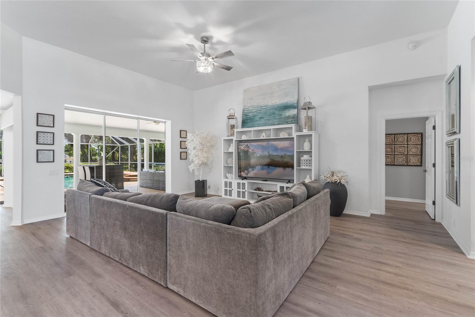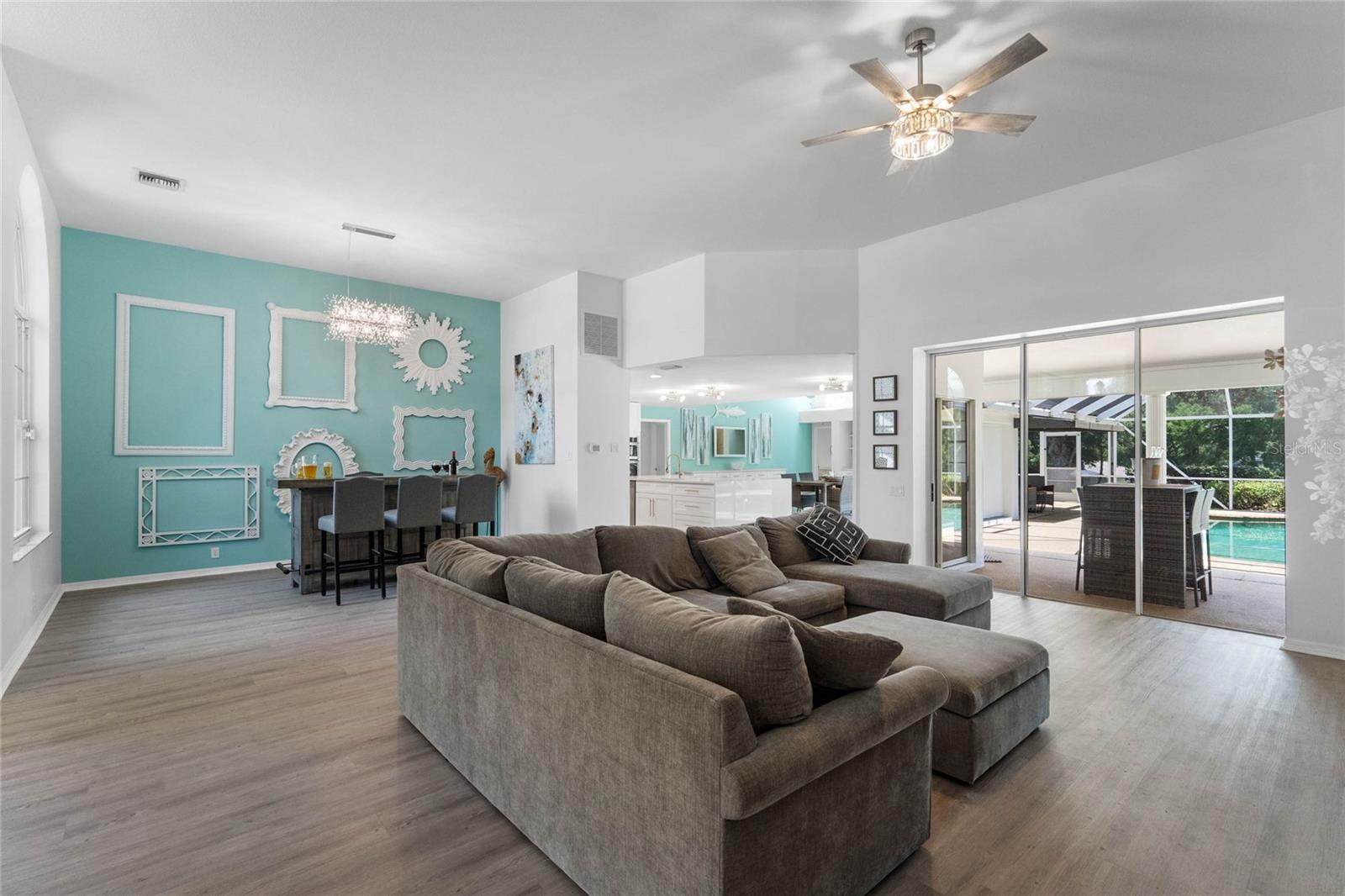 Experience luxury and serenity in Harbor Hills. Discover the privacy, security and tranquility of Harbor Hills, a community that offers the perfect blend of social interaction and a peaceful lifestyle. Situated in the rolling hills of Lady Lake with stunning views of Lake Griffin, this established, all-ages community caters to the discerning luxury buyer with a host of premium amenities, including a manned guard gate, a community boat dock and launch, and traditional country club facilities. Located just east of The Villages, you’ll enjoy convenient access to endless shopping, dining, and entertainment options. This custom home, crafted with attention to detail, welcomes you with its newly painted, inviting and warm exterior. Perfect for entertaining, the property boasts ample parking with a side-entry three-car garage, an extended driveway and an elegant circular drive. Inside, the spacious and well-designed layout strikes a balance between form and function, combining mature elegance with a playful Florida lifestyle. The entrance features tall, volume ceilings and opens to a formal living room with large three-pane glass sliding doors overlooking the resort-like pool area. A formal dining room provides ample space for family gatherings and holiday celebrations. Adjacent to the formal living area, the home office is equipped with built-ins and desk space, offering a quiet retreat for productivity. Emphasizing the seamless integration of indoor and outdoor living, this home wraps around the screened pool area in an “L” pattern, ensuring abundant natural light and easy pool access from nearly every room through four sets of sliding glass doors. Overlooking the 15th tee of the Harbor Hills golf course, this property sits on a generous half-acre lot, elevated for maximum privacy. The fully renovated kitchen features stainless steel appliances, quartz countertops, and ample cabinet space. For relaxed evenings, the large family room, open to the kitchen, includes a fireplace and wet bar. Ideal for multi-generational living, a second primary bedroom with an en-suite bath (which also serves as a pool bath) is located just off the family room. The split floor plan provides exceptional privacy for this suite, separate from the primary bedroom and two additional guest rooms. The two guest rooms, accessed via a wide hallway and a pocket door, offer privacy and comfort along with a full bath. Recent upgrades include a new architectural shingle roof installed in 2021 and a full kitchen remodel. Custom homes of this caliber, on a half-acre lot, are a rare find. Call today to schedule a private tour!