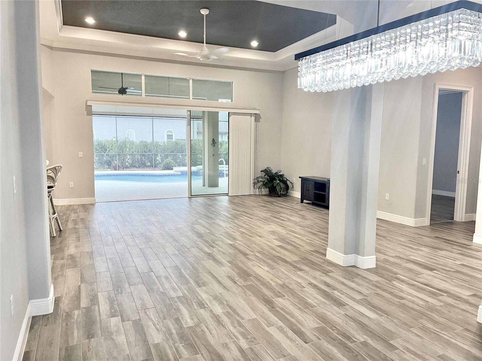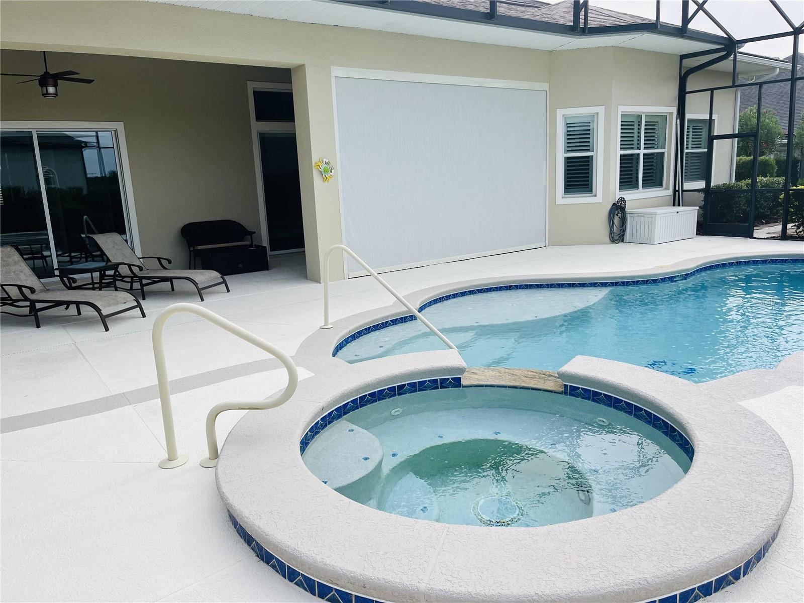 5509 Meadow Hill Loop, Lady Lake, FL 32159. Welcome to this beautiful 4 BR home located in the Bella Vista area of Harbor Hills Country Club. From the curb appeal to the spacious open floor plan, this home can be used for entertaining or for just relaxing by your recently resurfaced (2022) heated outdoor pool and hot tub. Located on a nice elevated lot, the finished driveway with brick pavers and the house with brick facade invite you to see what’s inside. Luxury vinyl plank floor bedrooms and tile throughout the rest of the house makes this an attractive no-carpet home. The rooms are spacious, lined with crown molding and finished with plantation shutters. This home offers 4 bedrooms and 3 baths, the 4th bedroom with French doors that could also be used as an office/study, sewing room, or whatever you desire it to be. The laundry room is spacious with room for a desk. The extra large lanai with birdcage offers privacy from neighbors and features a covered area for furniture, complete with ceiling fans, a mounted TV, and a motorized outdoor shade that can be brought down in inclement weather. There is a gas line connection for a grill and room for an outdoor kitchen. The solar and/or gas heated pool and jetted hot tub are quite an attraction, with a sun shelf big enough for two chairs and an umbrella. The large garage has a separate golf cart door and room for 2 cars, plus a wide workbench area and a 220 outlet. Invisible fence surrounds the property. Other features include soft close cabinets, trey ceilings, high ceilings, and an under-counter water filtration system in the kitchen. Transferrable home warranty! Harbor Hills Country Club is a gated community with an 18-hole championship golf course, tennis courts and pickleball courts located 15 minutes from The Villages.