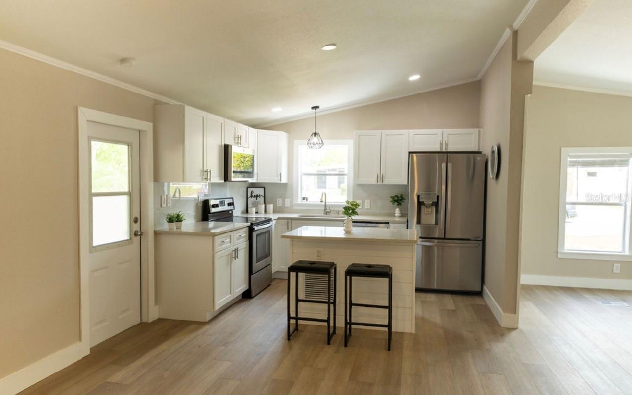 Welcome to 1220 Dustin Drive, a move-in-ready retreat in the peaceful community of Lady Lake. This beautifully upgraded 2-bedroom, 2-bath home offers an open layout with luxury vinyl flooring, a bright kitchen with ample cabinetry, and spacious living and dining areas. The sunlit Florida room provides extra space to relax or entertain. Enjoy peace of mind with a new roof, new siding, updated electrical and plumbing. Step outside to a private patio and deck—perfect for morning coffee or weekend gatherings. A golf cart garage adds extra convenience. Set on a quiet street with mature landscaping, this home is just minutes from The Villages, top golf courses, shopping, and dining. Ideal as a full-time residence or seasonal escape, this home blends comfort, style, and location.
