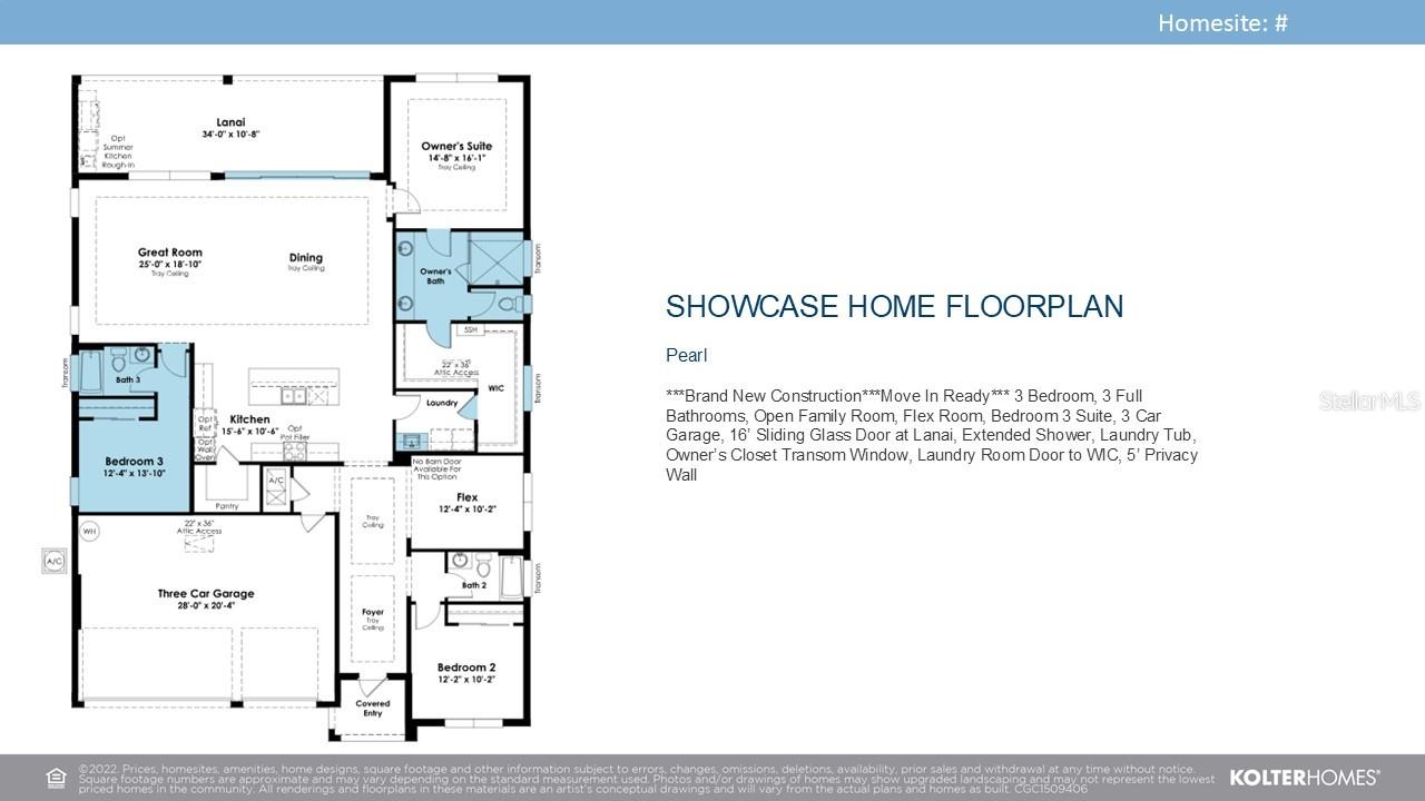 Under Construction. **NEW CONSTRUCTION** Home will be available in May. Model photos used for reference. This Pearl floorplan home is nestled in a truly gated community, offering privacy, security, and modern luxury. With 3 spacious Bedrooms, 3 full Bathrooms, an open family room, and a versatile flex space, this home is designed for comfort and convenience. The Bedroom 3 Suite adds extra functionality, while the expansive 3-car garage provides ample storage. The LUXE kitchen stands out with Level 2 cabinets, a cooktop cabinet with drawers, a tall oven cabinet, and premium GE appliances, including a 30" cooktop, under-cabinet hood, built-in microwave with trim kit, wall oven, and dishwasher. Elegant upgrades enhance the owner's suite, featuring a deluxe extended shower and a recessed tiled shower in the secondary bath. The laundry room is thoughtfully designed with a tub and a direct door to the walk-in closet for easy access. A striking 16' wide, 8' tall sliding glass door opens to the covered lanai, complemented by a 5' privacy wall for enhanced seclusion.