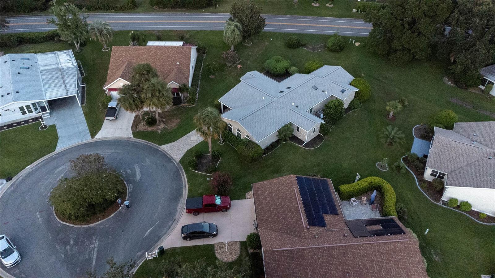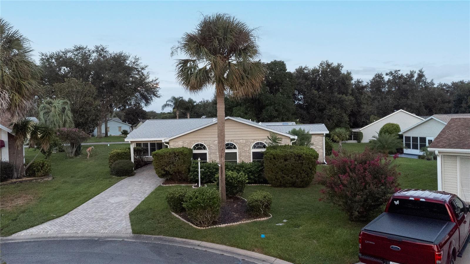 Welcome home to this site-built brick / concrete home nestled in the Village of Del Mar, close proximity to Spanish Springs and Lake-Sumter Landing. AMAZING NEW LOWER PRICE !! This uniquely designed cul-de-sac home has space for all your entertaining and activities with almost 2200 square feet of living space and an additional enclosed lanai and several outdoor areas to enjoy. This home has plenty of storage including several storage closets and pantry in the kitchen. A central cooking station highlights the kitchen. Enjoy music and radio on the surround sound stereo system. A wet bar adjacent to the dining room allows for great entertaining spot - right next to the enclosed lanai to enjoy the outdoor space. This lot is oversized ( over 1/4 acre) and has plenty of room to add on or enhance with a pool/birdcage. The huge primary bedroom has a retreat-style entry so you have your own private TV/sitting/crafting space along with 3 closets - one being equipped with a built-in desk system. Skylights adorn the home providing lots of natural light. The second bedroom has a large walk-in closet and its bathroom is ensuite, yet accessible to your guests as well. Laundry room is separate and has Maytag washer & dryer with tons of storage and workshop space and also an outdoor-style utility sink. You'll love the newer tankless water heater for efficiency. Wood-look laminate flooring and tile in the kitchen and baths along with a neutral color palette provide lots of opportunities to make this special home your own. NO BOND. Roof replaced in 2021. HVAC 2020. This location is 5-10 minutes close to Spanish Springs and Lake-Sumter Landing town centers - and minutes from numerous shopping, dining and health care opportunities.