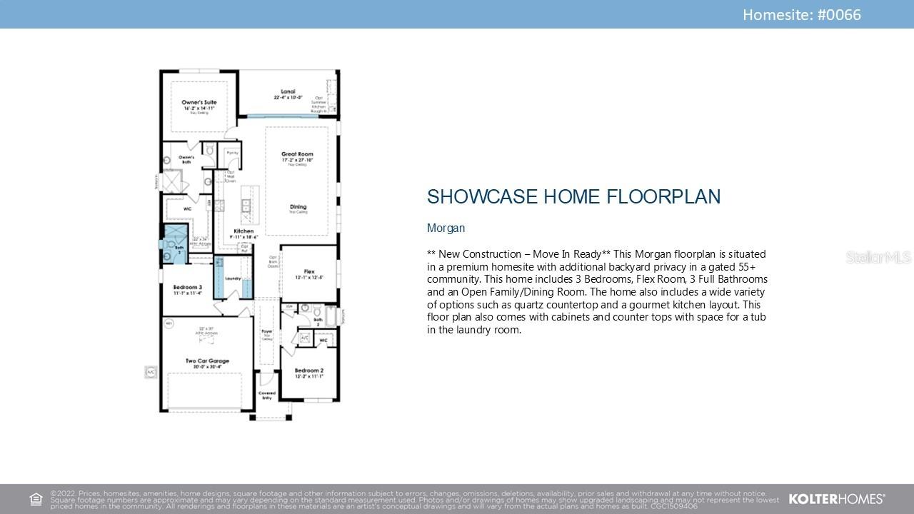 Under Construction. ***NEW CONSTRUCTION***Model Photos used for reference*This thoughtfully designed Morgan floorplan combines style and functionality with stunning architectural details. The gourmet kitchen is equipped with GE Profile appliances, a 30” stainless steel gas cooktop, a 30” curved chimney hood, and luxury 3cm quartz countertops paired with an Emser designer marble backsplash. Frameless European-style cabinets and a double trash roll-out enhance both convenience and elegance. The expansive Great Room flows seamlessly into the outdoors through a 16' x 8' tall sliding glass door, leading to a spacious lanai with a 5’ privacy wall, creating the perfect setting for entertaining or relaxing in privacy. Inside, the home boasts laminate wood plank flooring in the main living areas and flex space, while the Owner’s Suite features upgraded laminate wood flooring for added warmth and sophistication. In the bathrooms, enjoy luxurious tile-to-the-ceiling showers with semi-frameless enclosures in both the Owner’s Bath and Bath 3, plus a recessed tiled shower in place of the tub in the secondary bath. Additional features include a designer glass front door, washable flat interior paint throughout, and a laundry tub rough-in for added convenience. This home offers both contemporary design and modern conveniences, perfect for those seeking style, comfort, and functionality in every space.