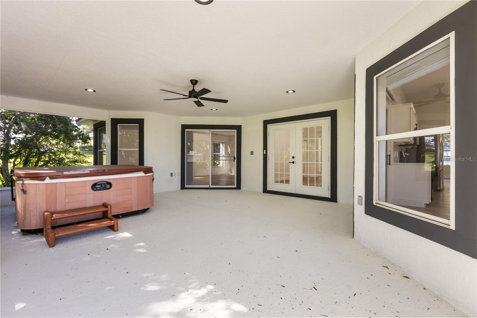 One or more photo(s) has been virtually staged. Welcome to this beautifully updated 3-bedroom, 2-bath home in Harbor Hills gated golf community of Lady Lake. Featuring a spacious 2,500+ sq ft layout, this home offers new vinyl flooring, a brand-new roof, fresh paint inside and out, and modern light fixtures throughout. The open kitchen shines with quartz countertops, a large island, and newer appliances, flowing seamlessly into the family room and out to a screened lanai with a relaxing private spa. The split floor plan provides a large primary suite with lanai access, dual vanities, and a luxurious walk-in shower, plus two additional bedrooms for guests or an office. Enjoy the oversized garage with golf cart space, manicured landscaping, and the peace of a secure, guard-gated community with golf, tennis, and clubhouse amenities. Move-in ready and beautifully maintained—this home perfectly combines comfort, style, and Florida living at its best.