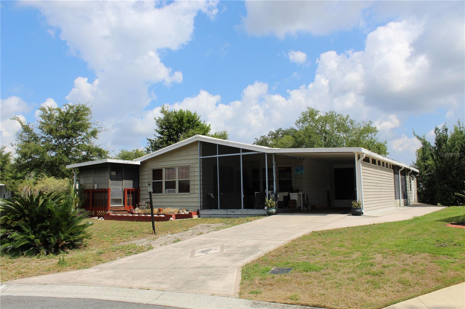 This charming 2-bedroom, 2-bathroom home, built in 1984, offers a host of appealing features and a prime location within the vibrant Orange Blossom Gardens community. Situated at the end of a cul-de-sac, this home provides both privacy and tranquility, while being close to a wide range of amenities and recreational opportunities. Key Features: Bedrooms and Bathrooms: The home includes two spacious bedrooms and two bathrooms, with the master bedroom featuring an en suite and a separate water room. Living Spaces: The large living area seamlessly integrates with the dining and kitchen spaces, creating an open and welcoming atmosphere. Kitchen: The kitchen is equipped with new appliances and boasts a large eat-at counter/island, making it a great space for cooking and entertaining. Additional Spaces: The home has several extra spaces, including: Front Lanai: A lanai attached to the front of the house, offering an outdoor feel. Covered Carport: Drive up to a covered carport, which includes a built-on open porch with seating. Versatile Storage Area: Adjacent to the carport is a flexible space that can be used for storage or transformed into another lanai. Small Garage: Perfect for storage or a workshop, with room to park a golf cart. Private Outdoor Space: Located beside the carport, ideal for additional parking or leisure activities. Utility Room: Inside the home, there is a convenient washer/dryer room. Roof is rubber membrane lifetime warranty. A/C 2yrs old. Community Amenities: Residents can enjoy the numerous amenities of the Orange Blossom Gardens community, including a dog park, community center, pools, golf course, archery range, and more. Location: The home is across from Spanish Springs, offering numerous shopping and dining options. Community Highlights: Active 55+ Community: The neighborhood is designed for active adults, providing a welcoming and engaging environment. Low HOA Fees: Enjoy the benefits of community living with low homeowners association fees. Recreational Opportunities: The expansive neighborhood is perfect for walking, and it boasts a variety of outdoor activities to suit different interests. This home combines comfortable living with abundant amenities and a prime location, making it an excellent choice for those seeking an active and enjoyable lifestyle.