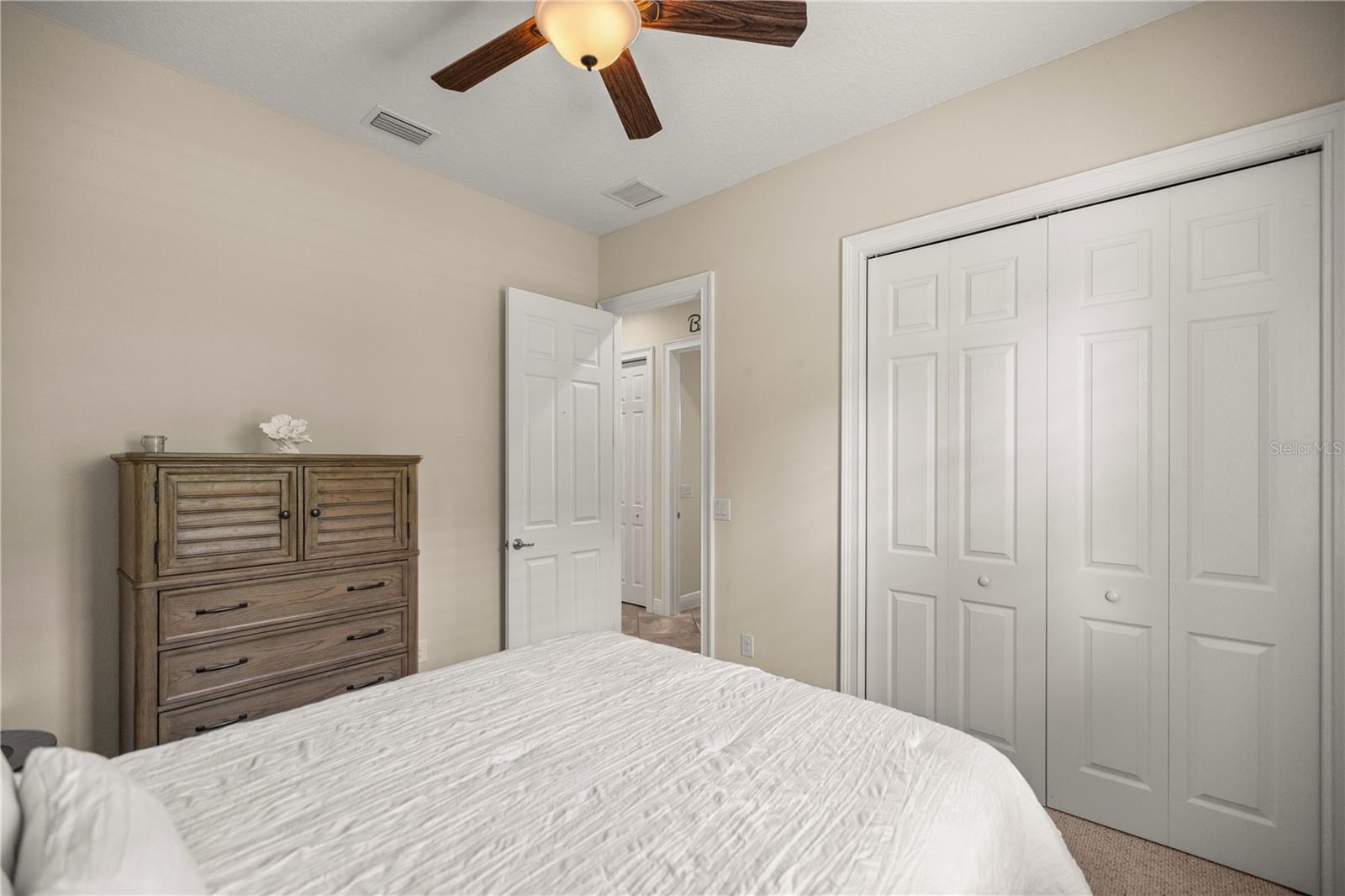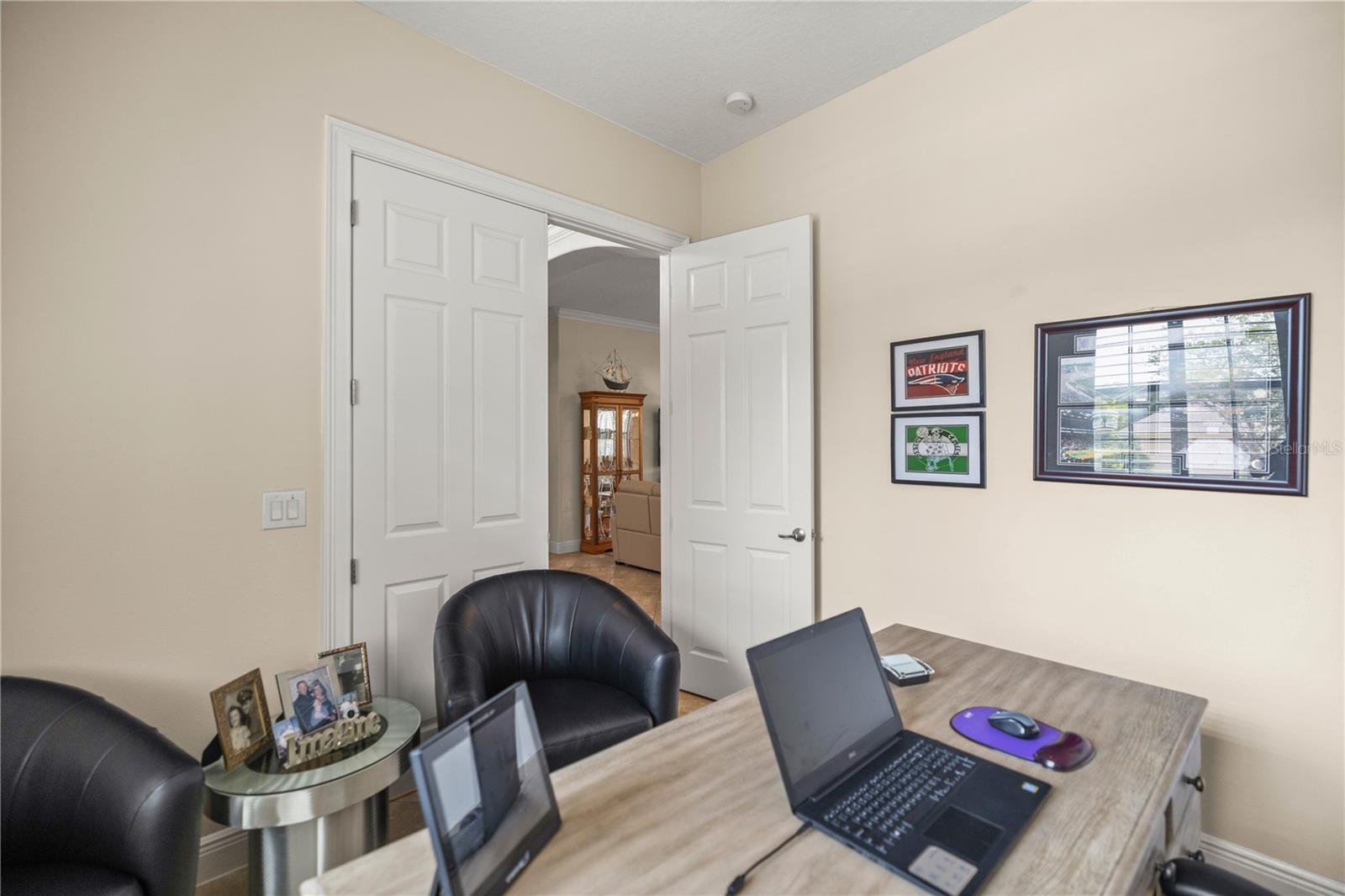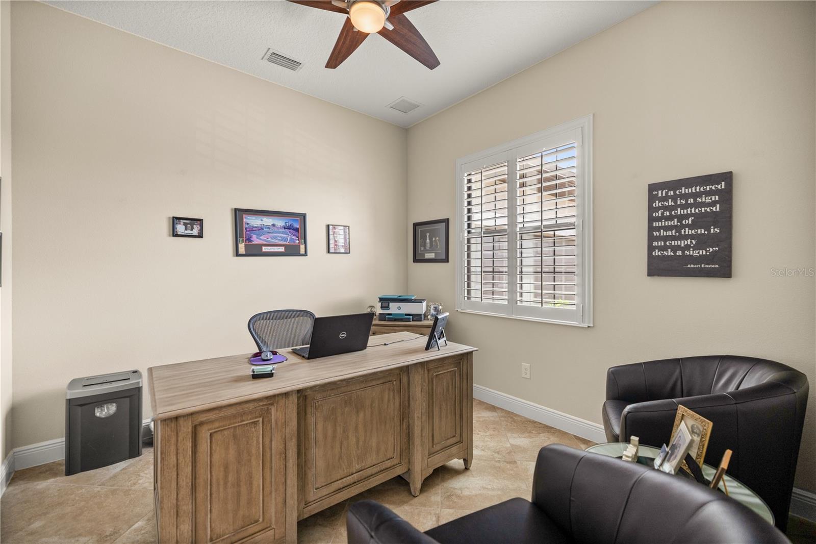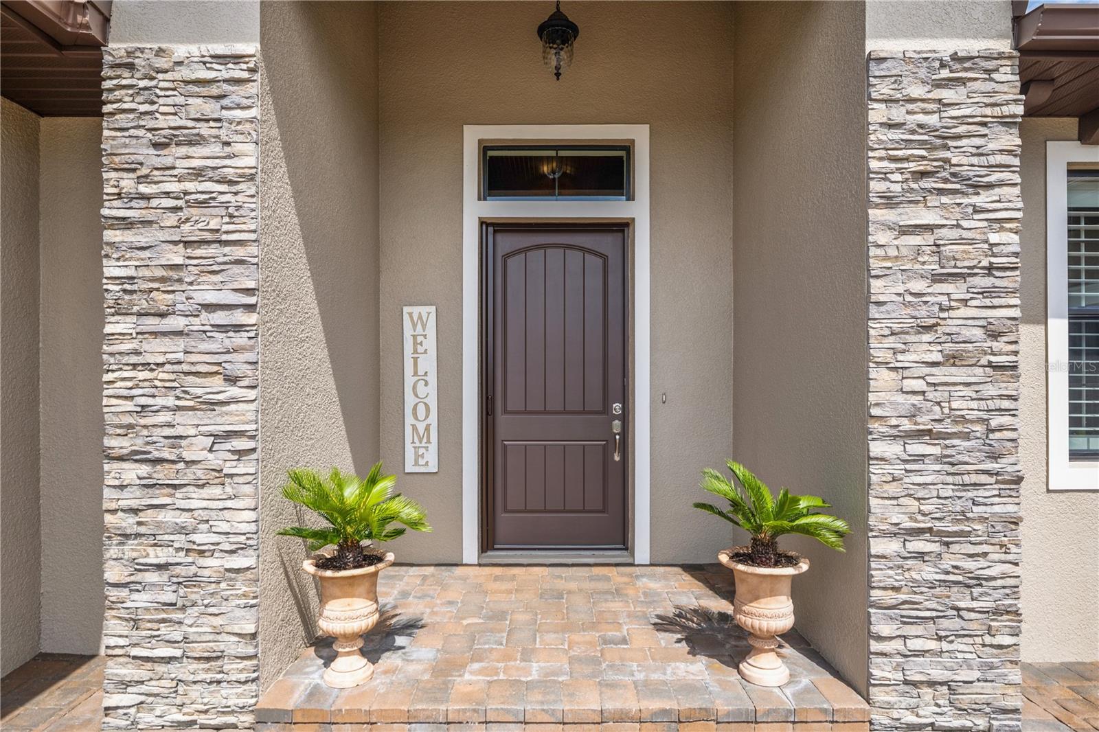 WELCOME HOME! this stunning custom SAGO model home is nestled on an expansive elevated lot offering glimpses of Lake Griffin. This pristine home welcomes you with a paver driveway that leads to a side-entry garage featuring a golf cart bay and a grand front entrance. Step into the foyer and be greeted by views of the stunning pool with a waterfall and a charming outdoor living area, accessible through triple glass sliders. Adjacent to the foyer is a versatile space ideal for a home office or den. The kitchen is a culinary delight, showcasing stainless steel appliances, a spacious island with seating for four, elegant pendant lighting, 42-inch wood cabinets, granite countertops, and a walk-in pantry, all flowing seamlessly into the open living area. The master suite, located away from the guest bedrooms, offers a spa-like retreat with double vanities, a glass-enclosed walk-in shower, a relaxing soaking tub, and two walk-in closets, one of which provides attic access. This thoughtfully designed split floor plan ensures privacy for both you and your guests and includes a convenient indoor laundry room. Additional features of this meticulously maintained home include 30-year architectural shingles, extra insulation, recessed lighting, a mix of 18x18 ceramic tile and carpeting, rocker switches, solid surface window sills, and plantation shutters. The garage is equipped with pull-down stairs leading to a stand-up storage area. The expansive lot is beautifully landscaped and features a 7 zone irrigation system. The community is just 10 minutes from The Villages and is close to medical facilities, shopping, and dining. Located in the highly sought after HARBOR HILLS, this gated community offers a range of amenities including a country club, restaurant, golf, tennis, fitness center, clubs, swimming, and boating. The spectacular views of Lake Griffin from the community are a must-see! Schedule a private showing today!