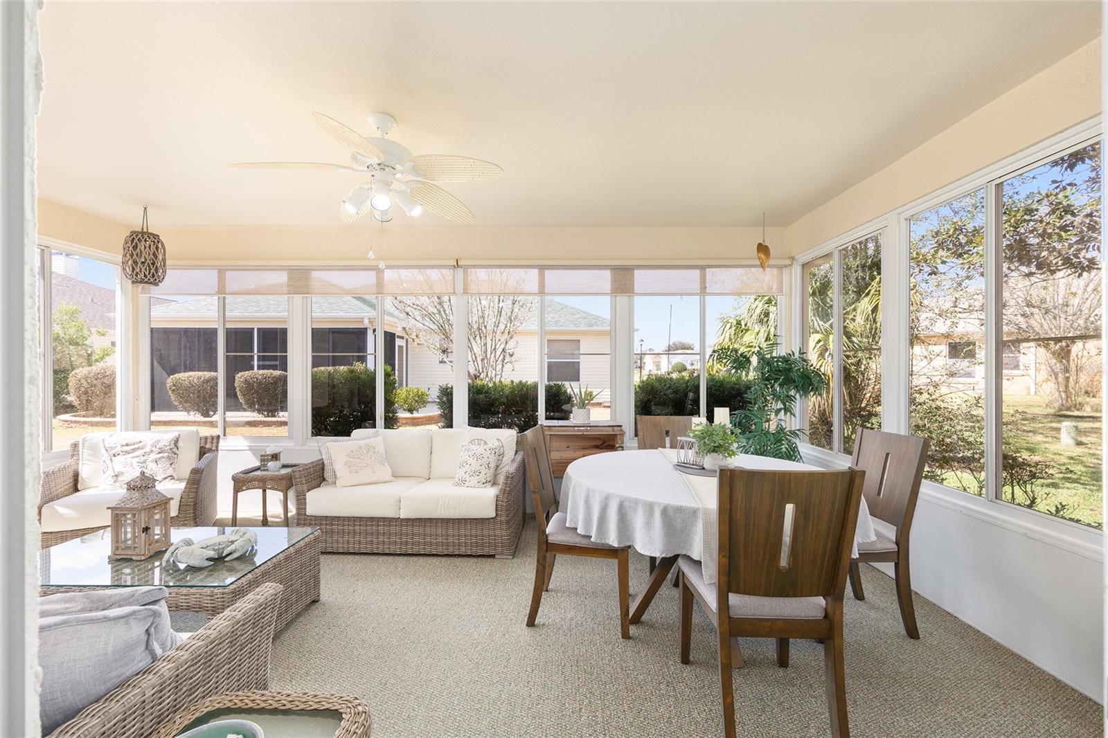 In the highly sought-after Village of Santo Domingo, this beautifully maintained Jasmine home delivers the perfect blend of charm, comfort, and convenience—with **BOND PAID**, offering exceptional value from the start. From the moment you arrive, the PAVER DRIVEWAY, WALKWAY, and FRONT PATIO with EXTERIOR LIGHTING create an inviting first impression that sets the tone for the quality found throughout. Step inside and discover an UPDATED KITCHEN designed to impress, featuring QUARTZ COUNTERTOPS, WHITE CABINETRY, STAINLESS STEEL APPLIANCES, and a bright BAY-WINDOW NOOK that makes every morning feel special. The SPLIT FLOOR PLAN enhances privacy, while the spacious primary suite—with its generous WALK-IN CLOSET—provides the ideal retreat after a full day of enjoying The Villages lifestyle. The convenience of interior laundry adds to the effortless living this home provides. The ENCLOSED LANAI extends your living space and invites you to relax, entertain, or simply unwind. Thoughtful upgrades like a GARAGE SCREEN, EXTERIOR LIGHTING, plus a 2020 ROOF add peace of mind and everyday convenience. Location is everything, and this home delivers. You’ll be just minutes from the vibrant energy of Spanish Springs Square, where live music fills the air every night, along with endless shopping and dining options. The Savannah Center, The Sharon, and Glenview Golf & Country Club are all close by, giving you quick access to entertainment, golf, and world-class amenities. This is more than a home—it’s an opportunity to step into the lifestyle you’ve been dreaming of, in one of the most desirable areas of The Villages.