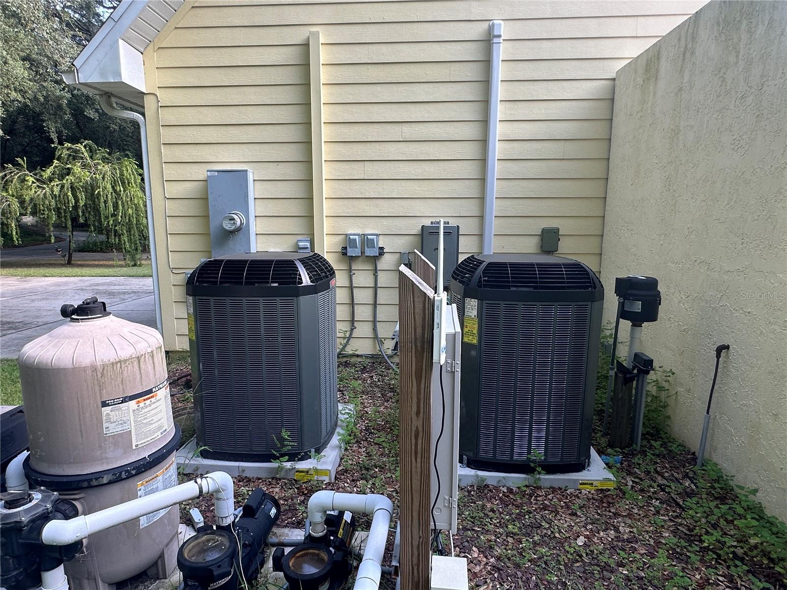 Stunning! This custom-built home, set on just under 5 acres, features a resort-style pool with a spa in a private and quiet setting. Exterior highlights include a long L-shaped wrap-around porch, a detached 2-car RV-height garage with high ceilings that can accommodate additional cars with lifters or even a deck, a circular driveway with extra parking, and a privacy fence with an electronic gate surrounded by mature oak trees for added seclusion. You even have the option to build an additional large ADU on the property, make it a family compound! The spacious home itself features two primary suites with one upstairs with a large walk-in closet and ensuite bathroom with a separate soaking tub and shower, his-and-her sinks and a private balcony overlooking the pool while the second suite (mother-in-law suite) is downstairs tucked away behind the kitchen. There are plantation shutters on all front windows, crown molding throughout the downstairs, and a large laundry room with access off the side of the home. The home boasts granite countertops, hardwood flooring throughout, and tile floors in the bathrooms. Bedroom 5 located on the first floor in the front of the home includes a walk-in closet reinforced to function as a storm shelter or panic room. The foyer opens up to a spacious kitchen with an island, a breakfast nook overlooking the pool, a large pantry between the kitchen and dining room, tons of counter space, new LG refrigerator and GE café double oven with transferable warranties along with a GE 5 burner stovetop. The outdoor living space is the true gem of this property. Through the double French doors from the living room, you’ll find the back porch overlooking a fully screened-in, retreat-style pool area. This area includes a timer-controlled water fountain flowing into the pool, two sitting ledges in the pool, alarms on all windows and doors facing the pool area, and a summer kitchen with a gas line hookup and bar perfect for hosting ultimate parties or enjoying serene relaxation. On the second floor, in addition to the primary suite, you'll find bedrooms 3 and 4 with a Jack & Jill walk-in closet, an oversized bedroom 2 has built-in window features and a large walk-in closet as well. The third level of this home (attic space above 2nd floor hallway) is a climate-controlled attic space with carpet flooring, currently used for storage but spacious enough to serve as another living area over 6 ft tall. There is also additional attic storage over the entire 3-car garage. This home and almost 5 acre lot is high and dry, no flood zone! This versatile 5 acres also includes a chicken coop, large kids Lifetime playground, firepit, massive garden boxes behind the detached shed and tons of fruit trees. Here are some additional notable highlights of this home: 2 new Trane a/c units with wi-fi connections and transferable warranties, water softener system, propane gas heated pool hot tub, termite bait stations, inhouse pest tubes, drip irrigation in the front and back yard sections and much more. If you're looking for a home with plenty of space inside and exceptional outdoor living features, this is your perfect match. For a 3D tour of the property use this link: https://www.tourdrop.com/dtour/384980/360-Floorplan We also have a list of upgrades and features along with a walkthrough video, lot survey and floor plan. Be sure to reach out to the listing agent or your agent for the links and documents for this property.
