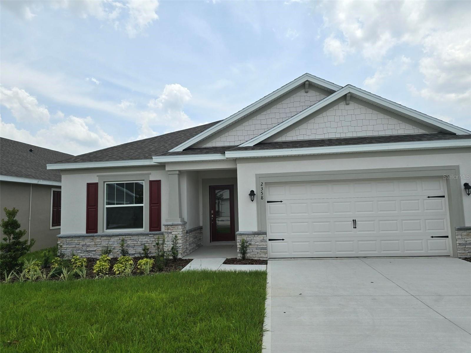 MOVE IN READY! BISCAYNE Model boasts a brick stone exterior along the bottom of the home. Home boasts an open floor plan with large covered lanai, great room room, big secondary bedrooms and an impressive owners suite which has a huge walk-in closet. Well appointed kitchen includes all stainless appliances, granite counter-tops in kitchen and bathrooms, kitchen island overlooking the dining and great room. Indoor laundry room. 10 Year Structural Warranty, Builders Warranty & Manufacturers warranties are all included.