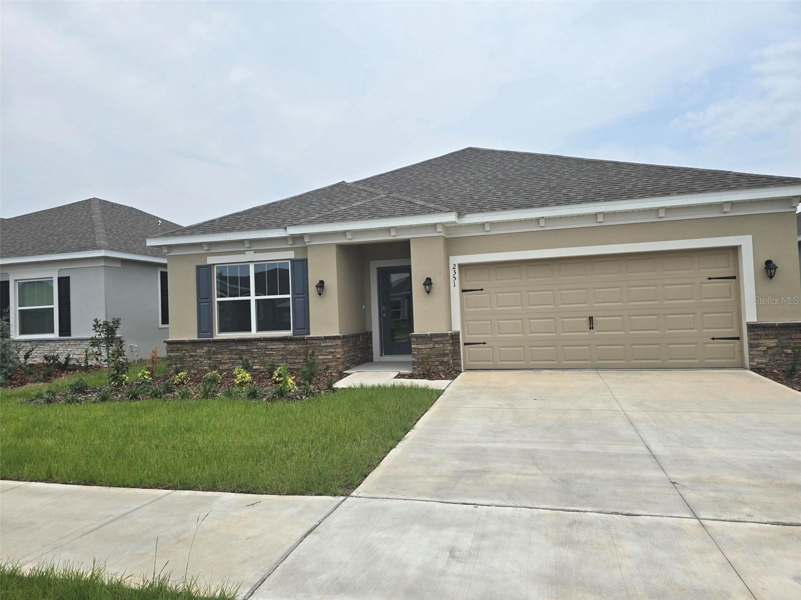 MOVE IN READY! NEW HOME! Jensen Model! The exterior features brick stones along the bottom of the home. Lanai 9'4" ceiling height, granite in kitchen and bathrooms, walk-in tile shower, 42" kitchen cabinets with crown molding.The Jensen is an open floor plan with great room room and a large covered lanai for outdoor sitting, big secondary bedrooms and an impressive owners suite which has a huge walk-in closet. Well appointed kitchen includes all stainless appliances, kitchen island overlooking the great room. Indoor laundry room. 10 Year Structural Warranty, Builders Warranty & Manufacturers warranties are all included.