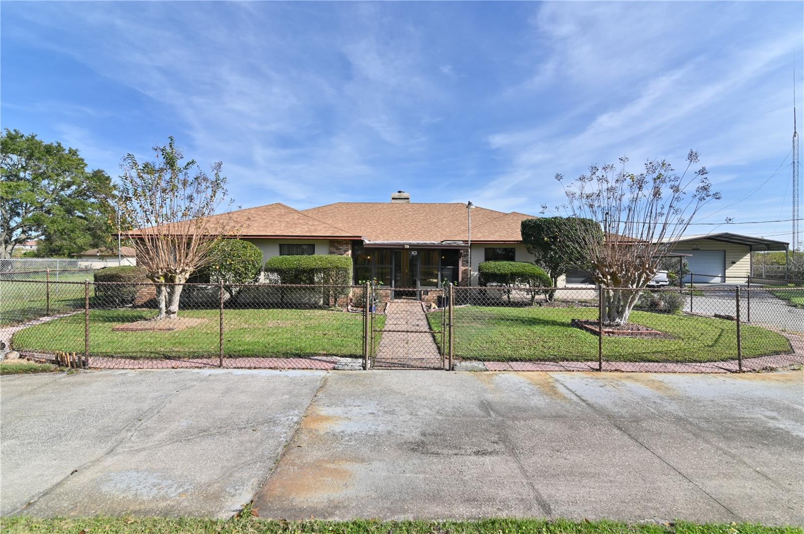 Looking for NO HOA Lakefront! ***NEW PRICE ADJUSTMENT*** Need to park your RV’s, Boats, Work Trucks, Work from home workshop, whatever you want, here’s the property you’ve been looking for! * Property Size: 11.88 acres of true lakefront property * No Homeowners Association (HOA) or Community Development District (CDD) restrictions * Home Living Area: 2771 square feet, with a total of 4878 square feet under roof with all the buildings * Additional Building: 24’ x 24’ separate block-constructed building shell for potential in-law suite or small rental apartment (needs completion) * Ample space for parking large vehicles, including RVs, boats, work trucks, or equipment * Garage/Workshop is 30’ x 30’ custom detached fully insulated garage/workshop with A/C ductwork in place (no A/C unit) with a 9’ roll-up door and 10’ extended metal awning in front for protection from the weather while the door is open * Garages and Carports: Oversized 2-car attached garage to the home, an additional single car 24’ x 20’ carport to the driveway * Additional Storage: Two metal sheds, one with its own 30’ x 19’ metal carport in front of the stand-alone shed * Privacy includes: 2-year-old electric gate and cross-fenced property * Home Features: 4-bedrooms, 2-bathrooms, lakefront with a fireplace, granite counters in the kitchen and hall bath, new luxury vinyl plank flooring in bedrooms and tile throughout the remaining home * Upgrades: New roof in 2021, new deep well in 2023, and some new appliances and Granite tops in 2023 * Outdoor Appeal with Lake Frontage to one of the best Bass fishing lakes around, providing a great opportunity for outdoor enthusiasts * Location: Close to downtown, offering the convenience of urban amenities * If you are looking for a spacious, well-equipped, and versatile property with various amenities, this is it for you! Call today to view this estate!
